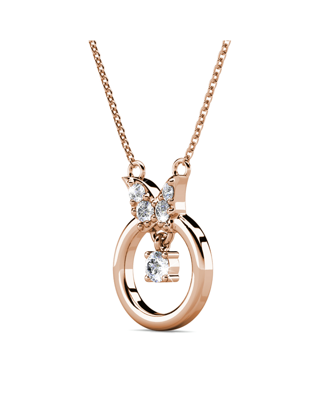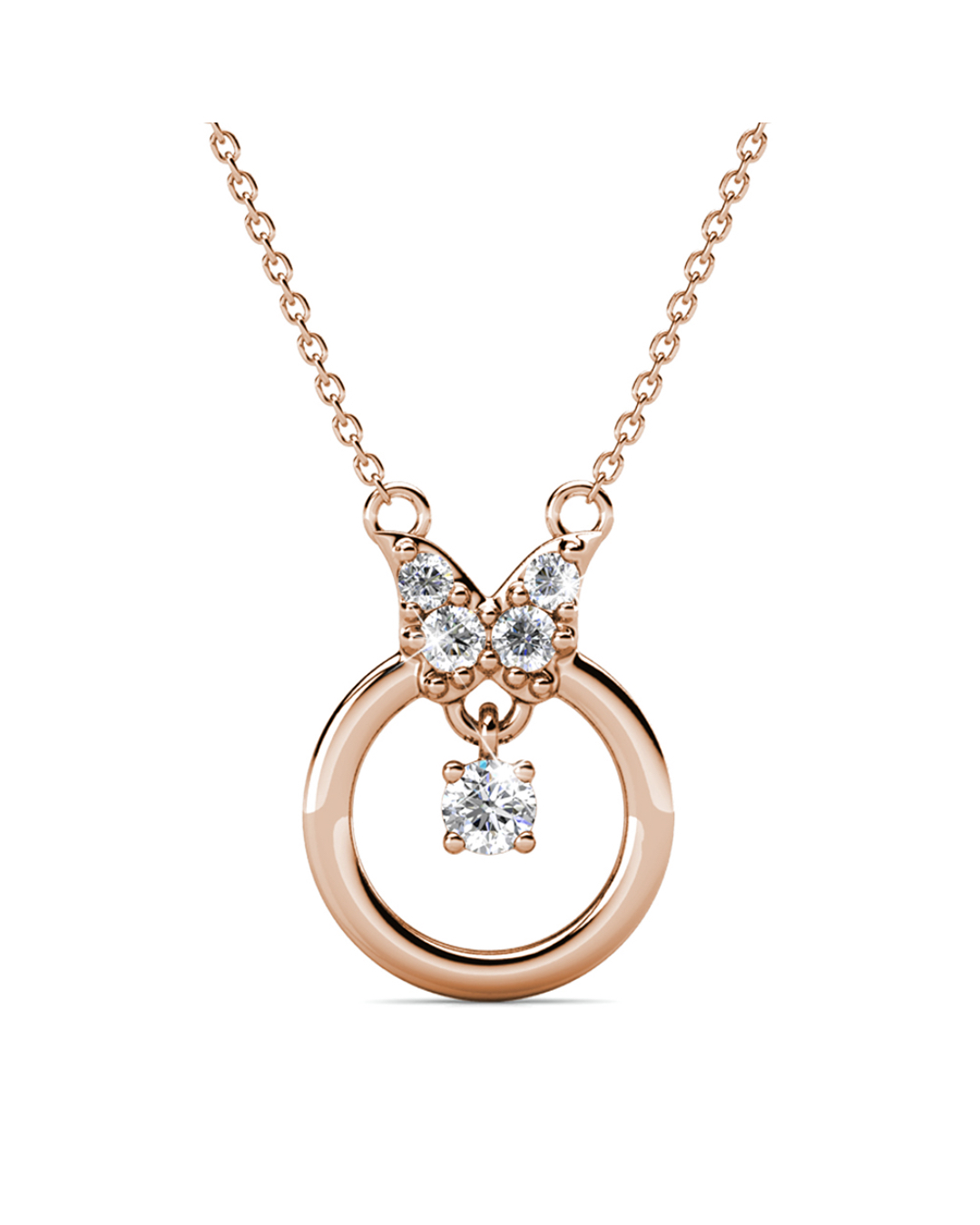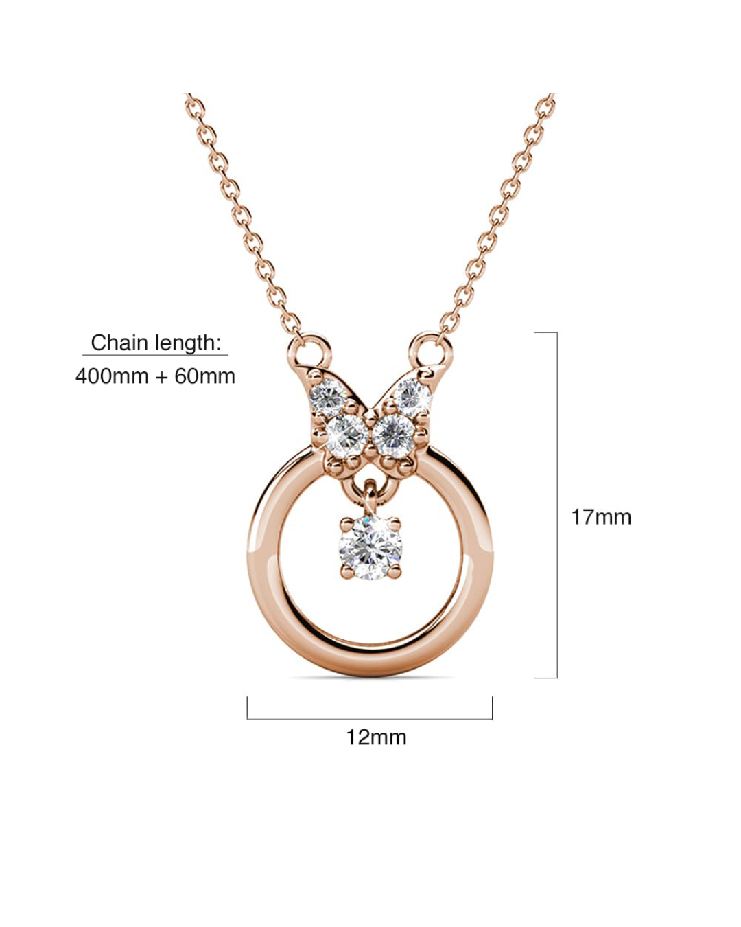 Presenting, our exquisite 18K Rose Gold plated butterfly necklace Embellished with Crystals from SWAROVSKI®. Handcrafted to near perfection, this necklace features a simple butterfly pattern to add flair to any outfit. This necklace is a must have for anyone whom adores unique, simple yet elegant pieces of jewellery.