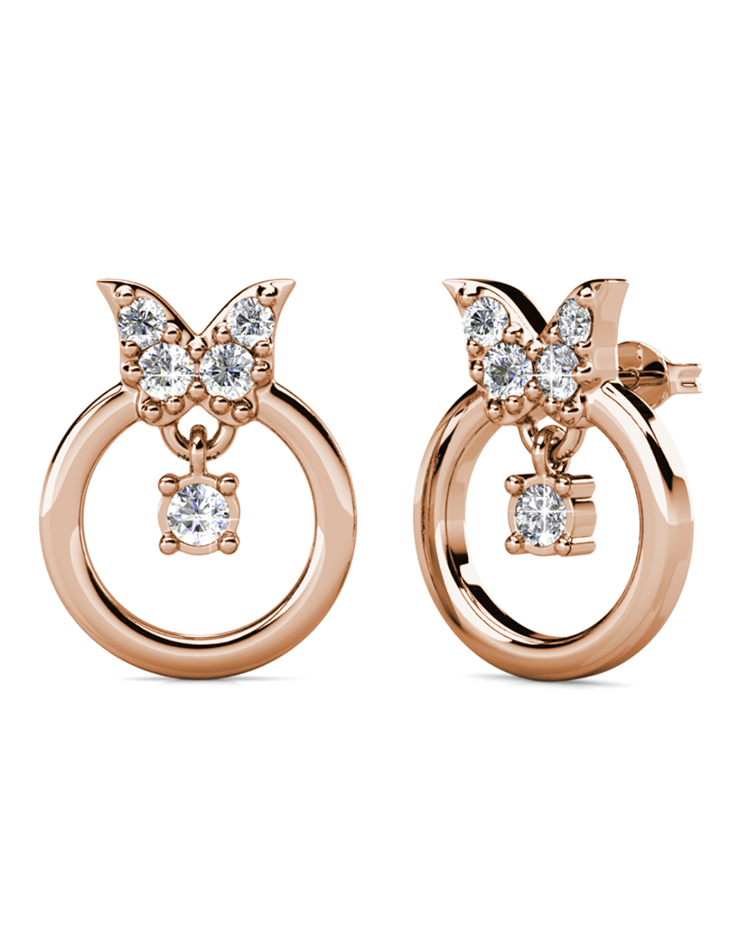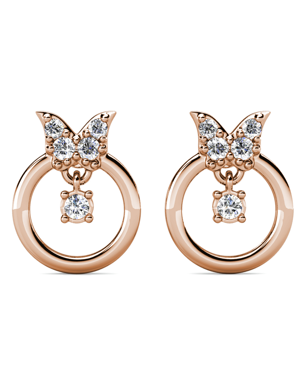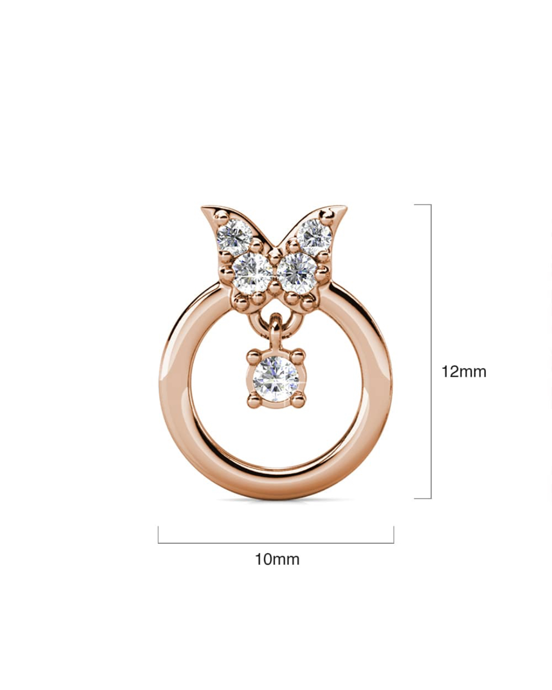 Treat yourself to something beautiful with these Exquisite Butterfly Stud Earrings accented with SWAROVSKI® Crystals. Handcrafted in a luxurious 18K Rose Gold plated alloy and features a simple yet dainty butterfly pattern, these earrings will surely add flair to any outfit. They are definitely a must have for anyone who loves unique, simple and elegant jewellery.