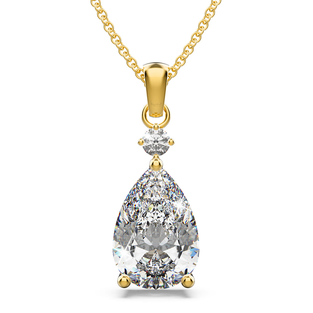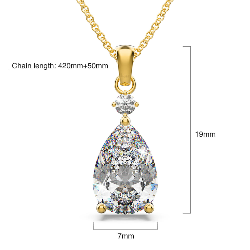 This elegant necklace features stunning Crystals from SWAROVSKI® . It showcases a pendant made with stunning pear-cut crystal accompanied with a smaller crystal all made with SWAROVSKI® elements, dangling on a highly polished 18K Gold plated alloy chain.