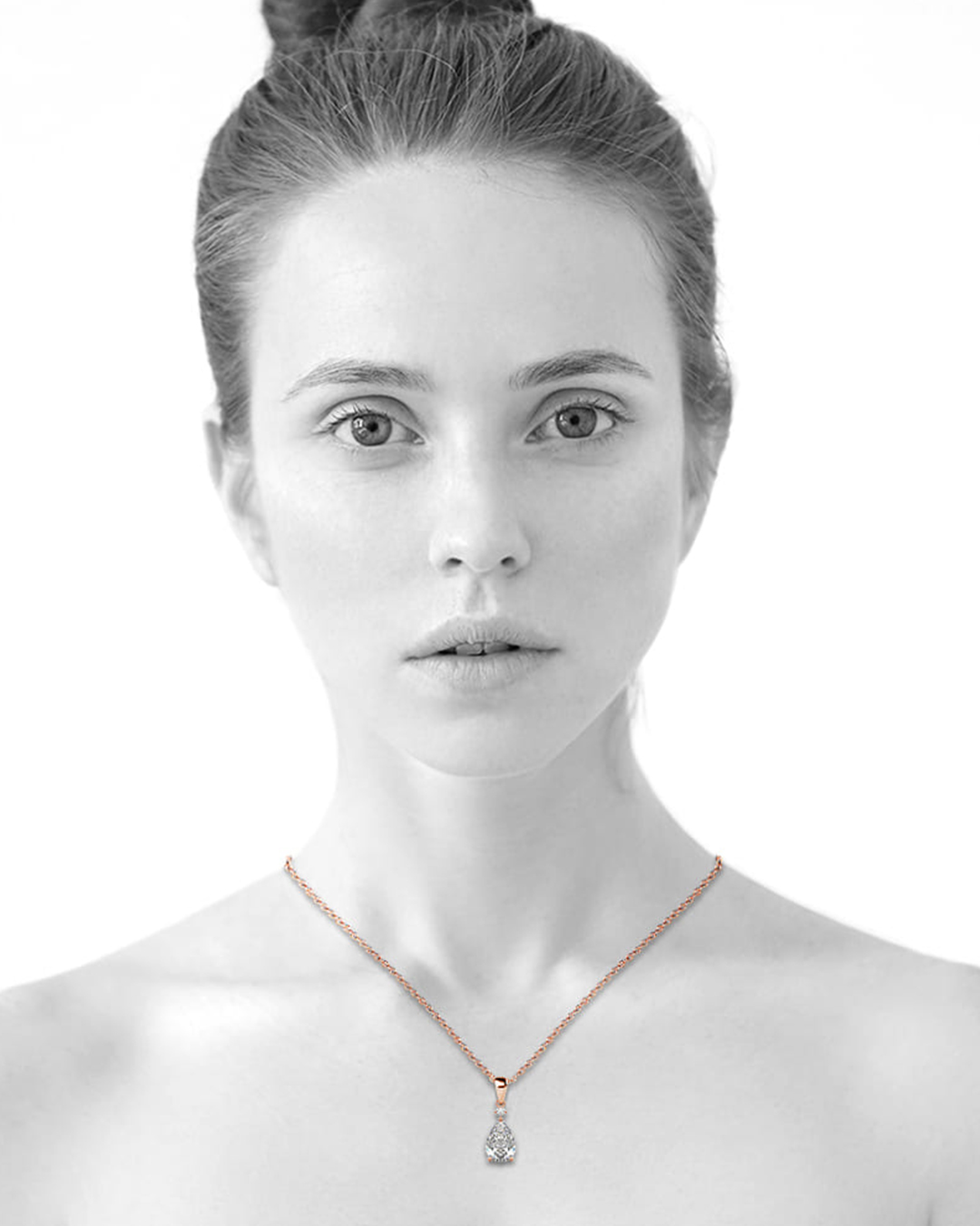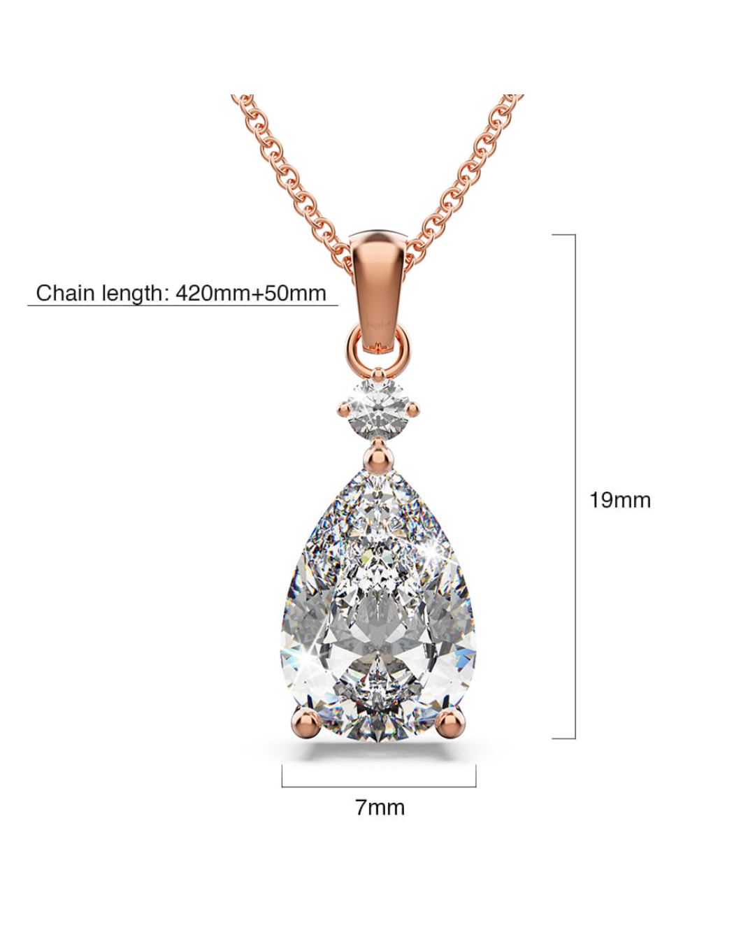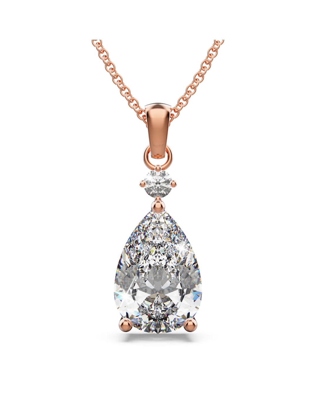 This elegant necklace features stunning Crystals from SWAROVSKI® . It showcases a pendant with pear-cut crystal accompanied with a smaller crystal all made with SWAROVSKI® elements, dangling on a highly polished 18K Rose Gold plated alloy chain.