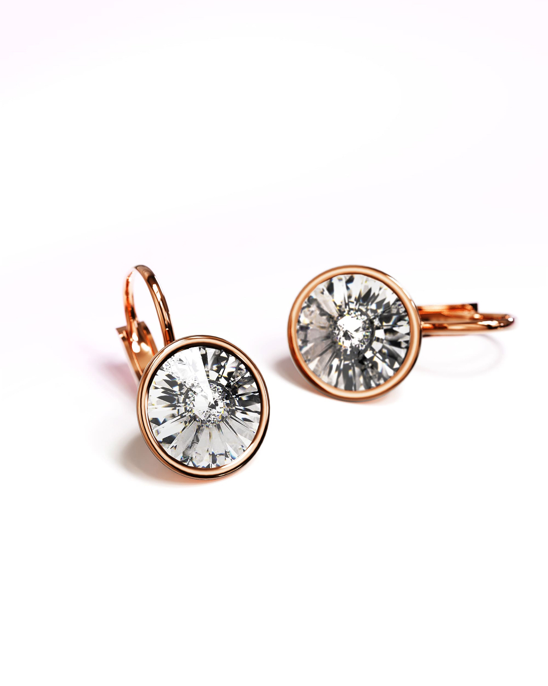 Elevate your everyday look with this stunning pair of earrings, featuring brilliant, clear Crystals from SWAROVSKI® that will bring shine to your ears. These gorgeous lever back earrings are finely crafted from 18K Rose Gold plated alloy, ensuring a lightweight feel and timeless appeal. These elegant earrings are made in Korea.