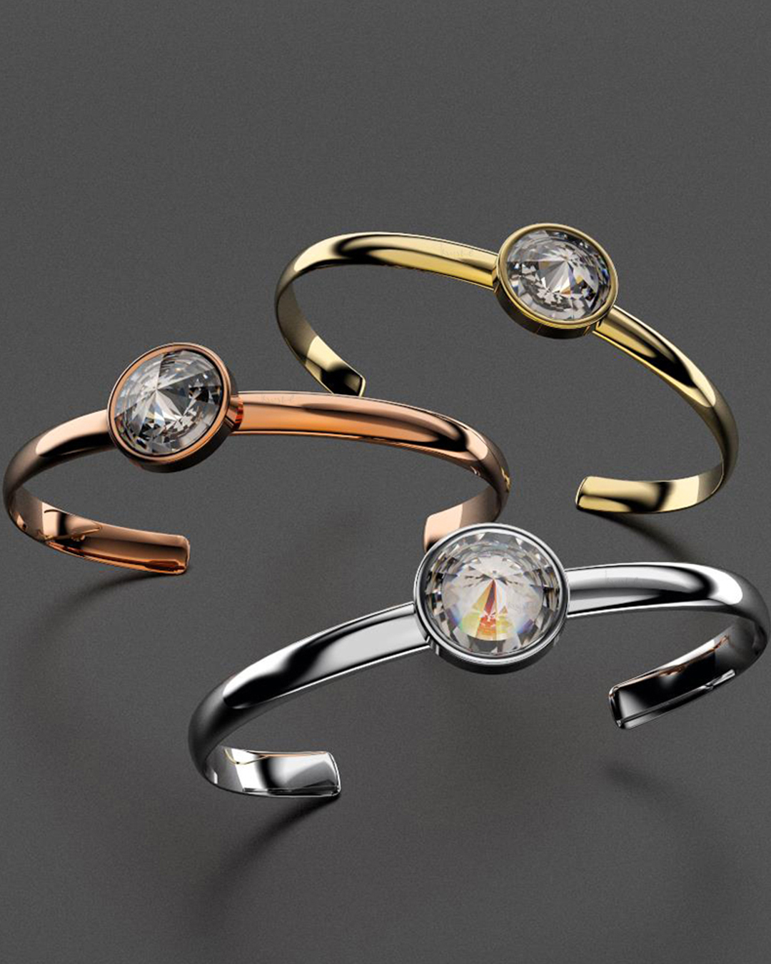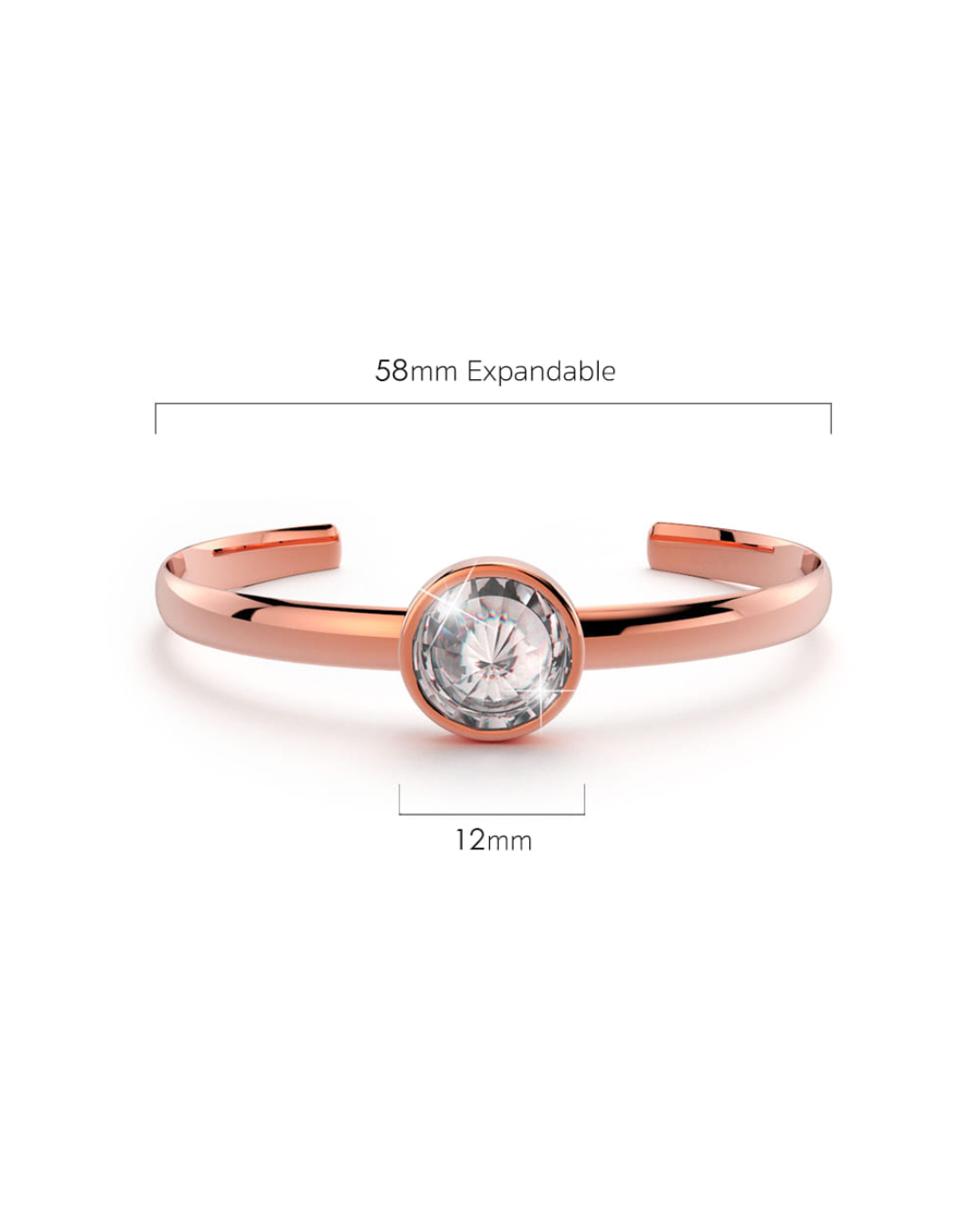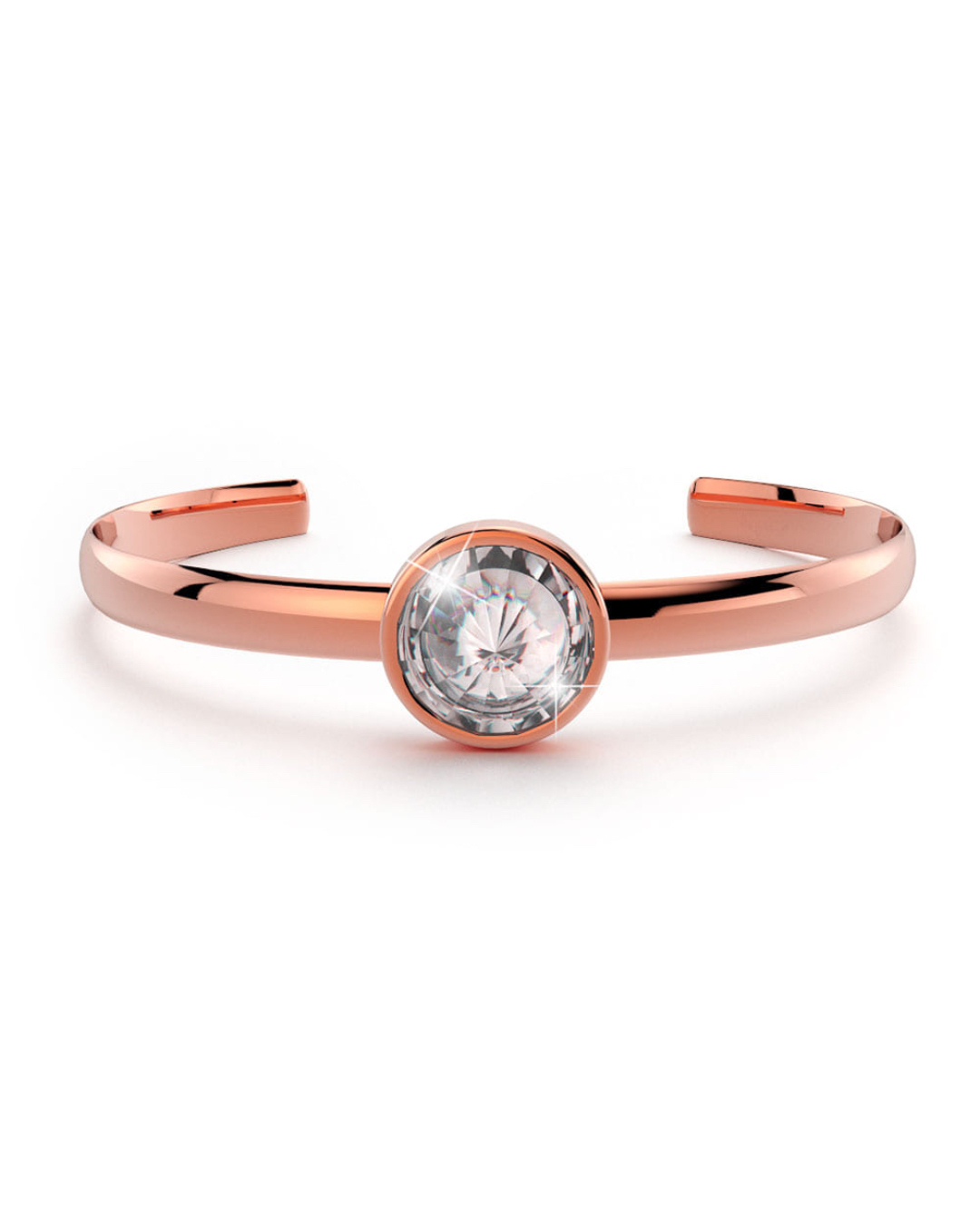 This trendy bangle makes a delightful addition to your jewelry box. Embellished with round, bezel-set crystal from SWAROVSKI® set in 18K Rose Gold plated alloy, this jewelry piece offers comfortable fit without compromising style. This stylish bangle is made in Korea.