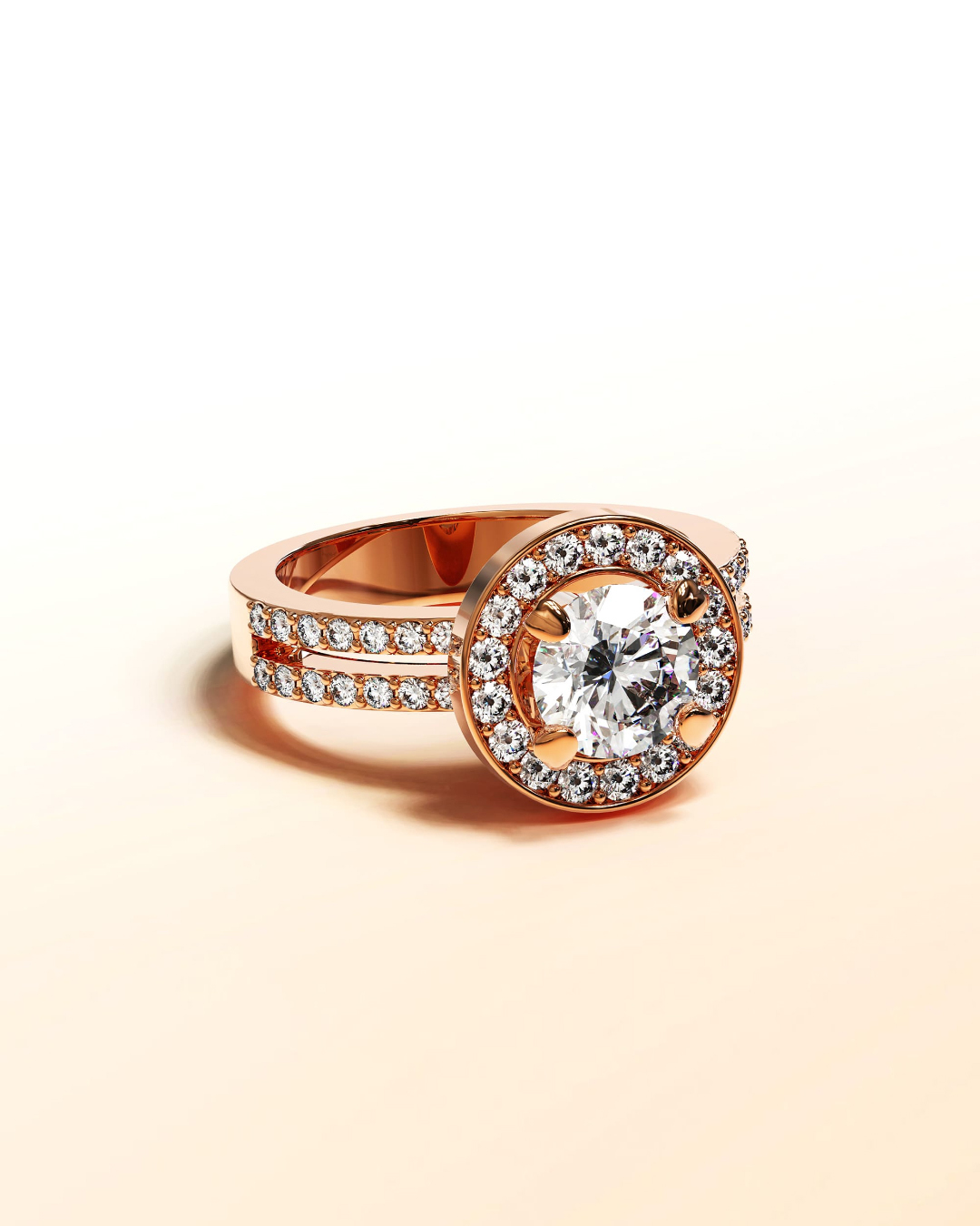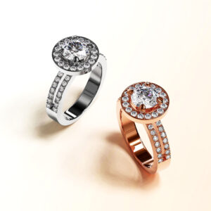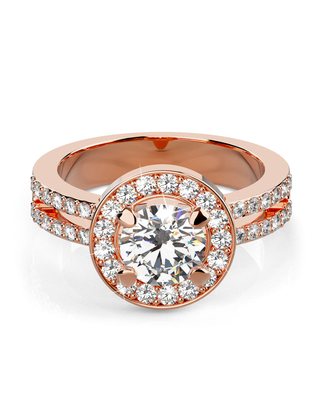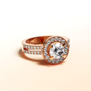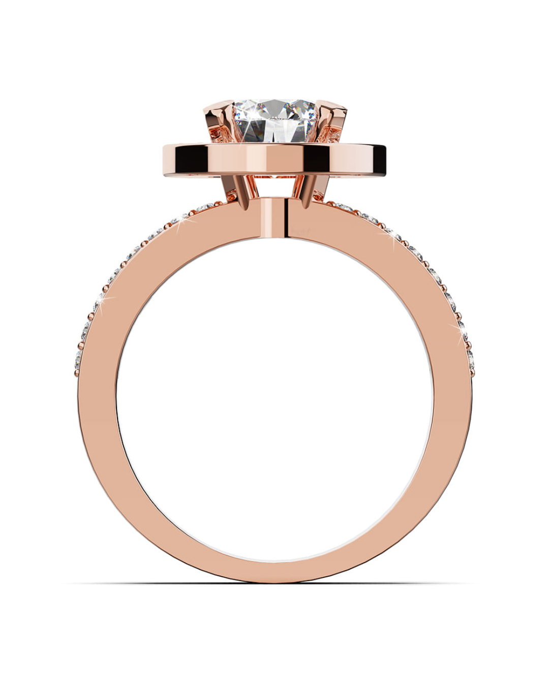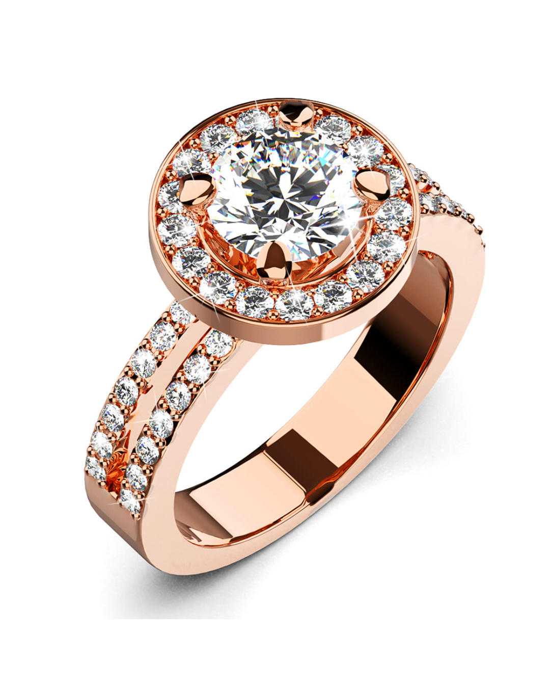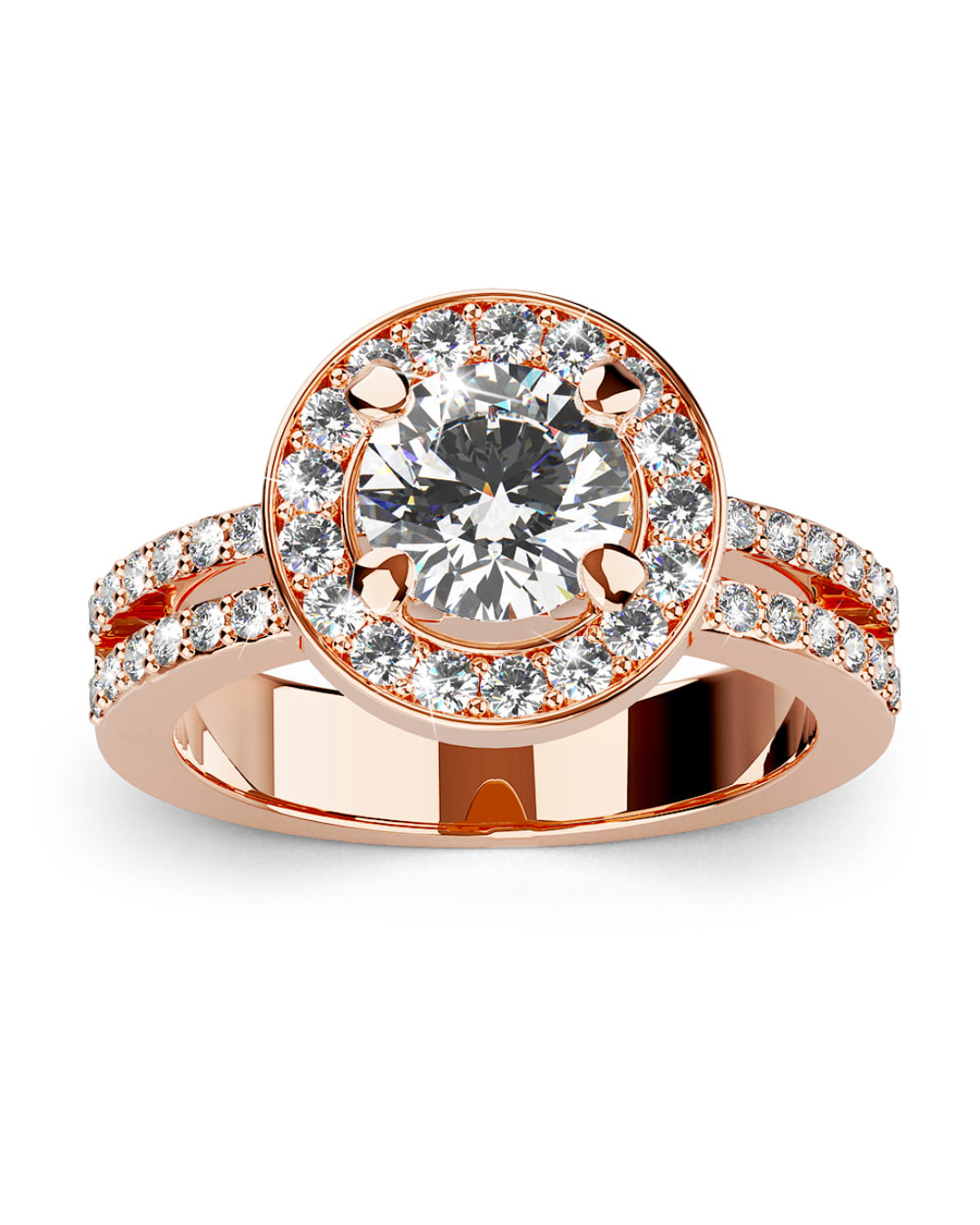 Make her feel like a queen with this glamorous ring crafted of highly polished 18K rose gold plated alloy. This beautiful ring features a halo of sparking crystals and each sides of the band are studded with two rows of channel-set crystals that add an extra shine, all made with SWAROVSKI® elements. Wear this ring for a gorgeous glow to any outfit.