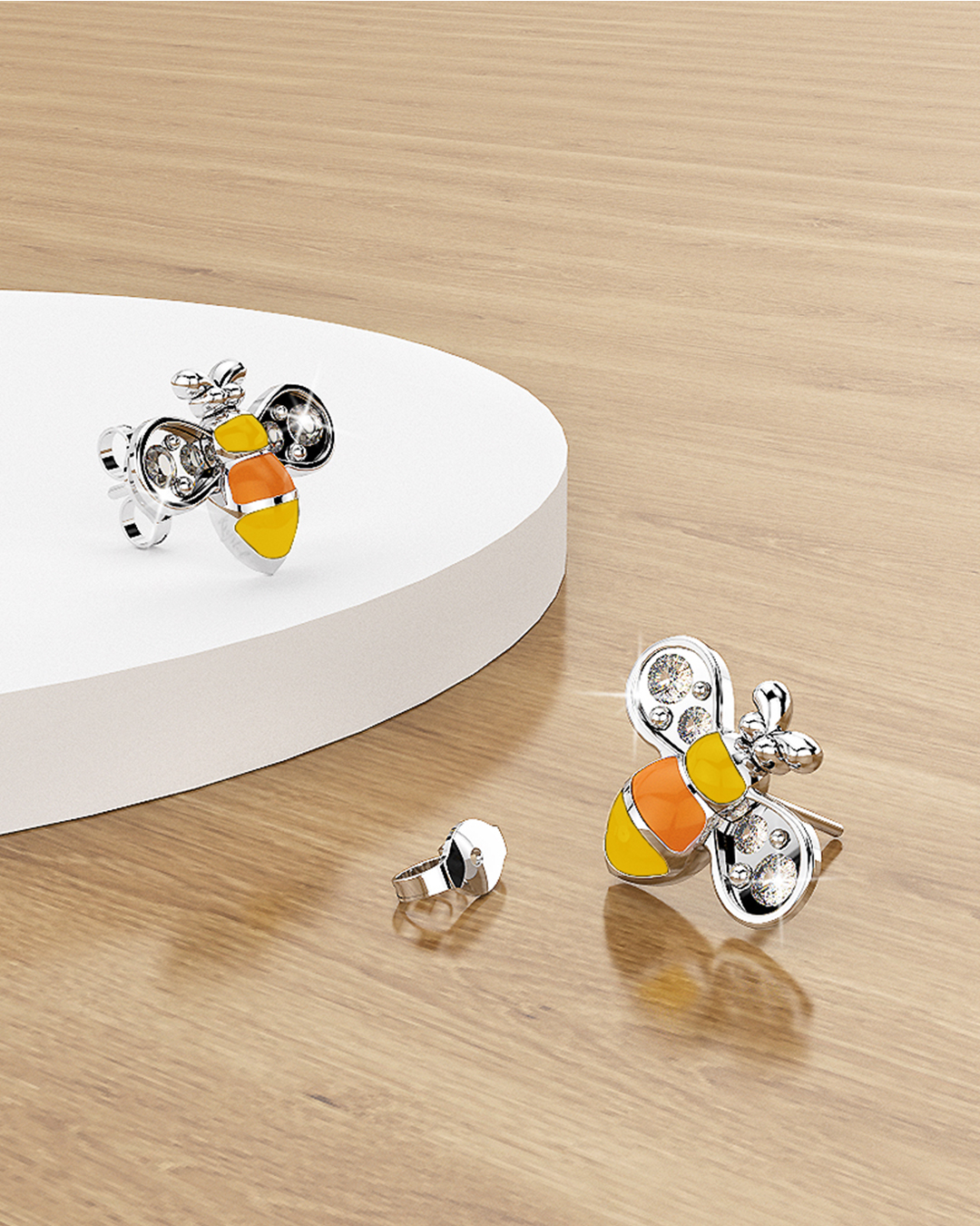 Be enchanted with fun colors of yellow and orange Bumblebee stud earrings featuring stunning Czech Preciosa® crystals for added sparkle
