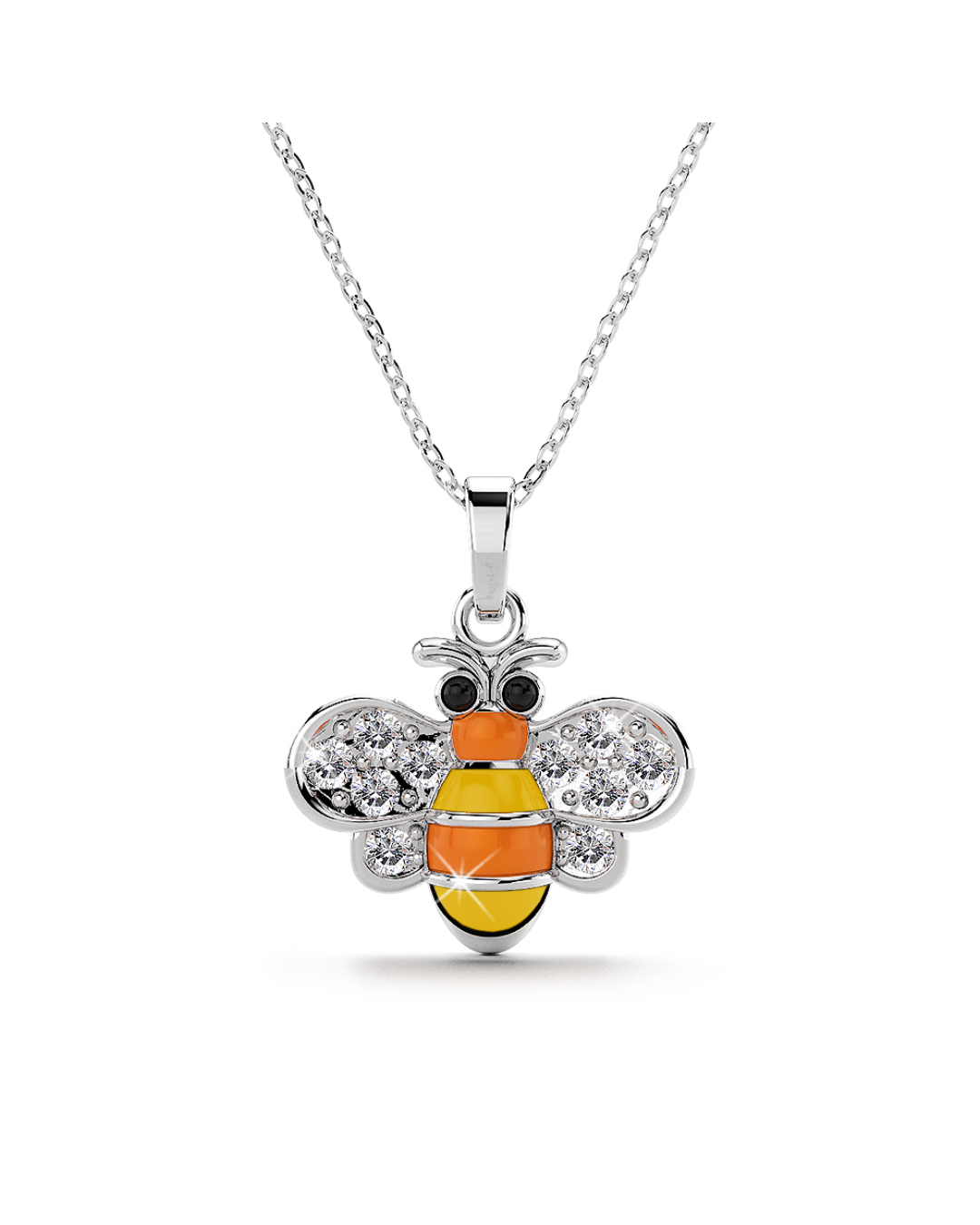Be enchanted with fun colors of yellow and orange Bumblebee pendant on chain necklace featuring stunning Czech Preciosa® crystals for added sparkle