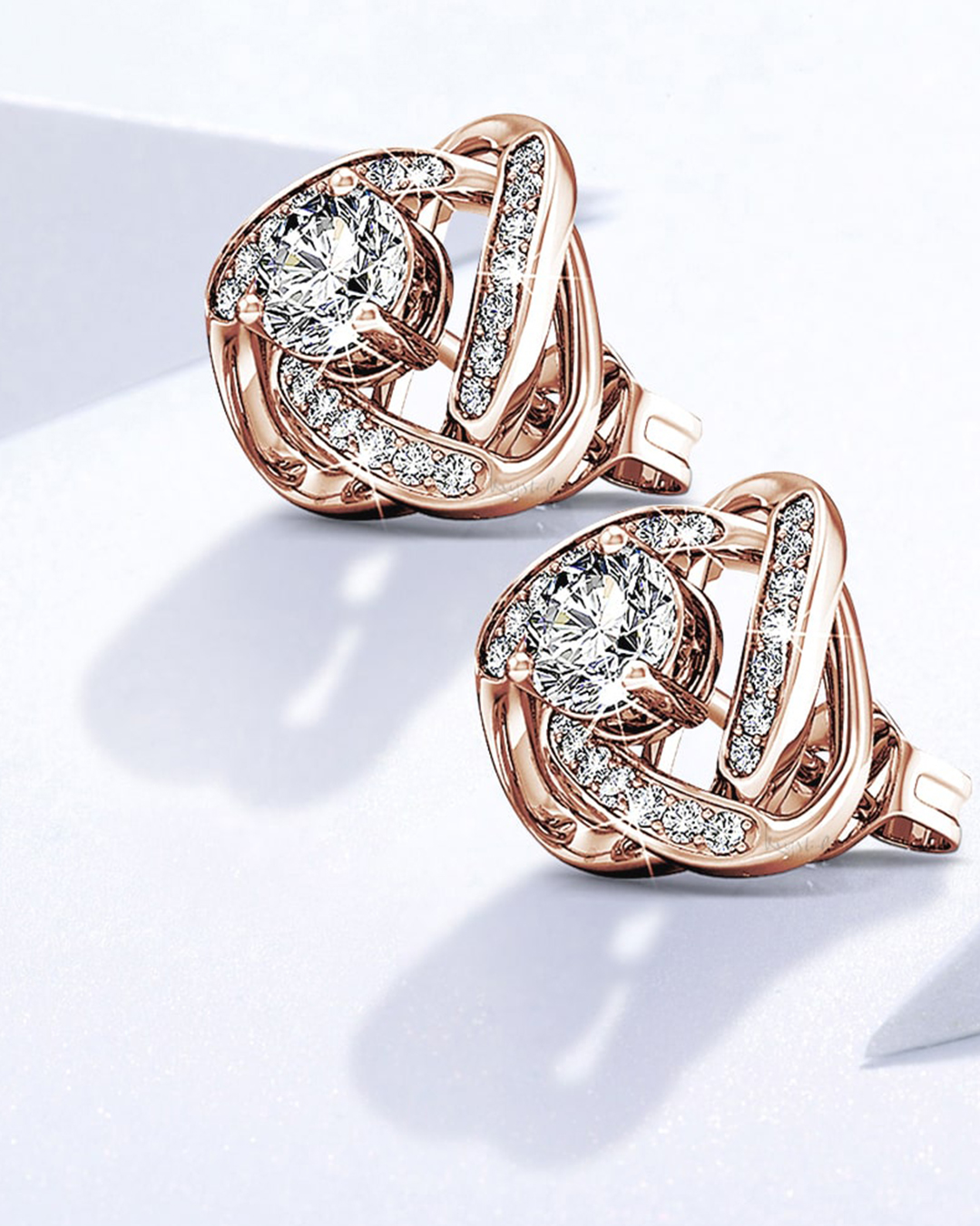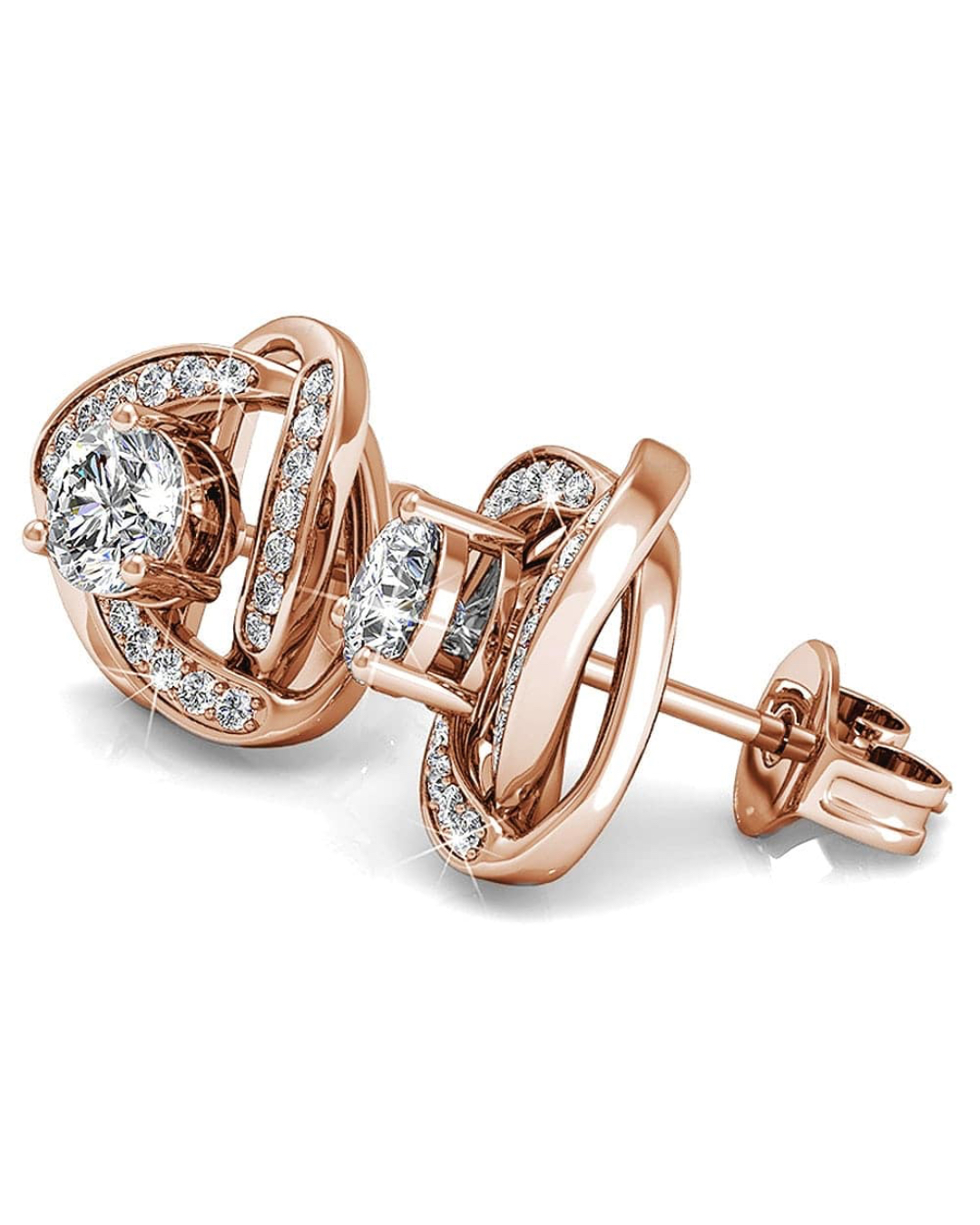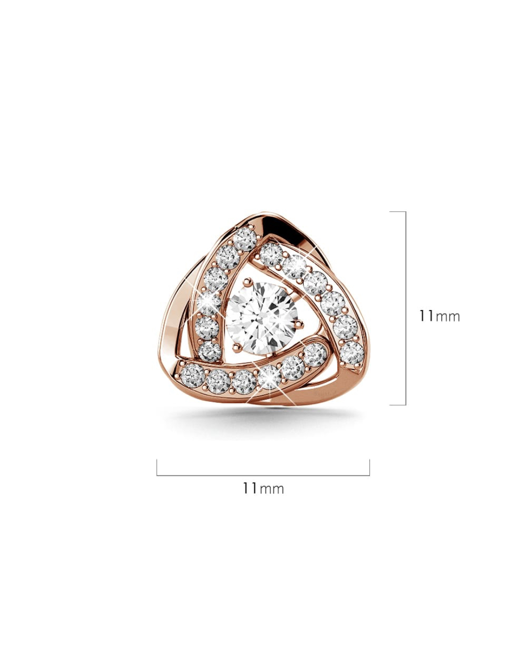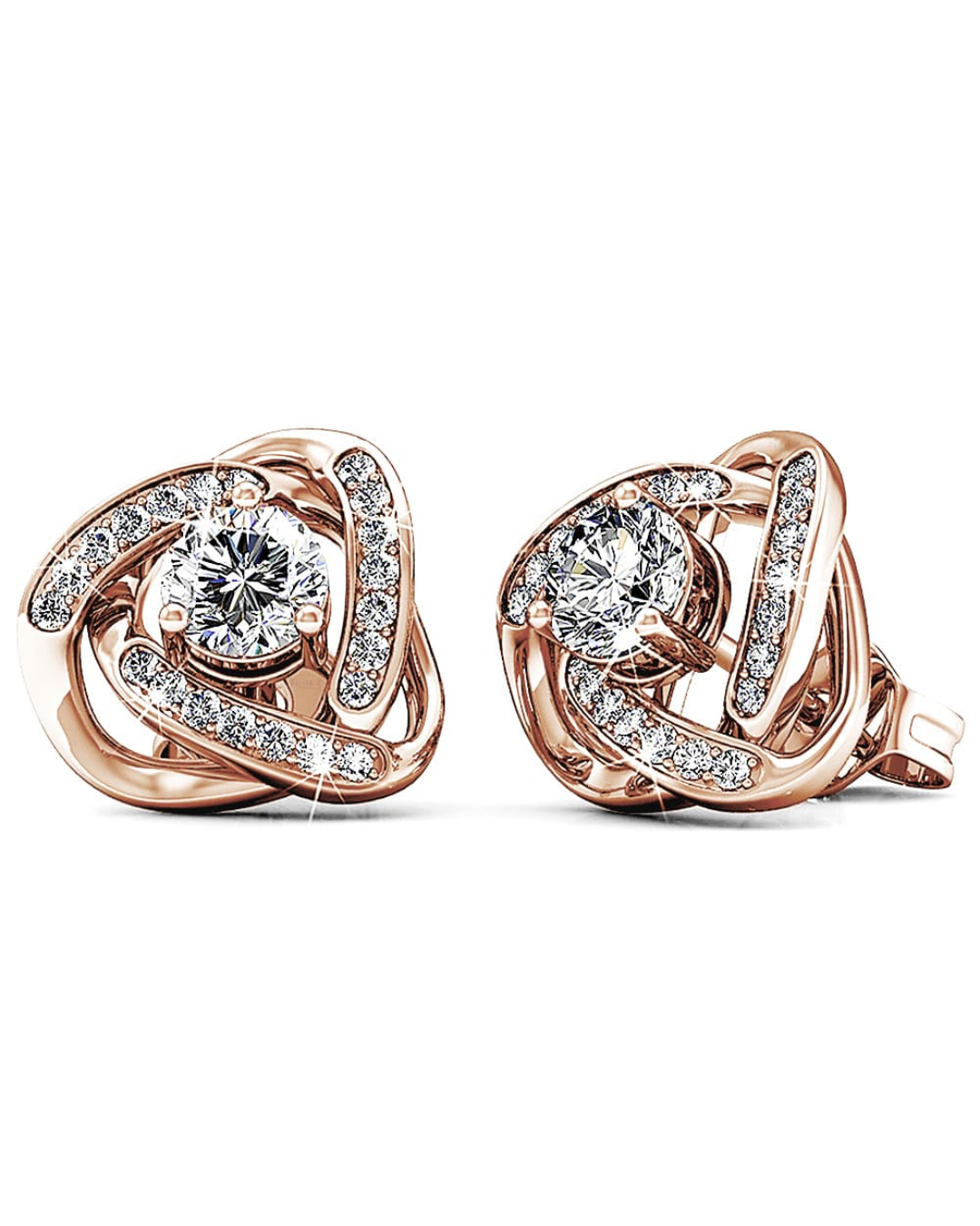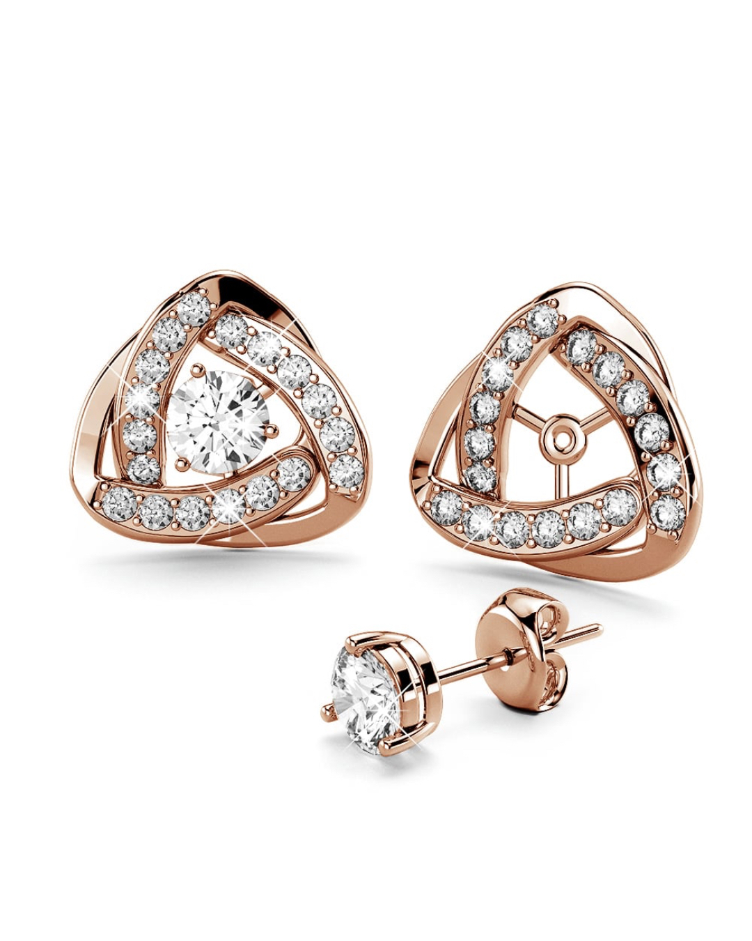 Add radiance and style to your look with these elegant detachable studs. This pair of earrings detaches to be worn in two styles. It can be worn alone as simple prong-set solitaire stud or styled with gorgeous love knot design. These 18K Rose Gold plated earrings sparkle with Crystals from SWAROVSKI® . A unique piece designed for women on the go.