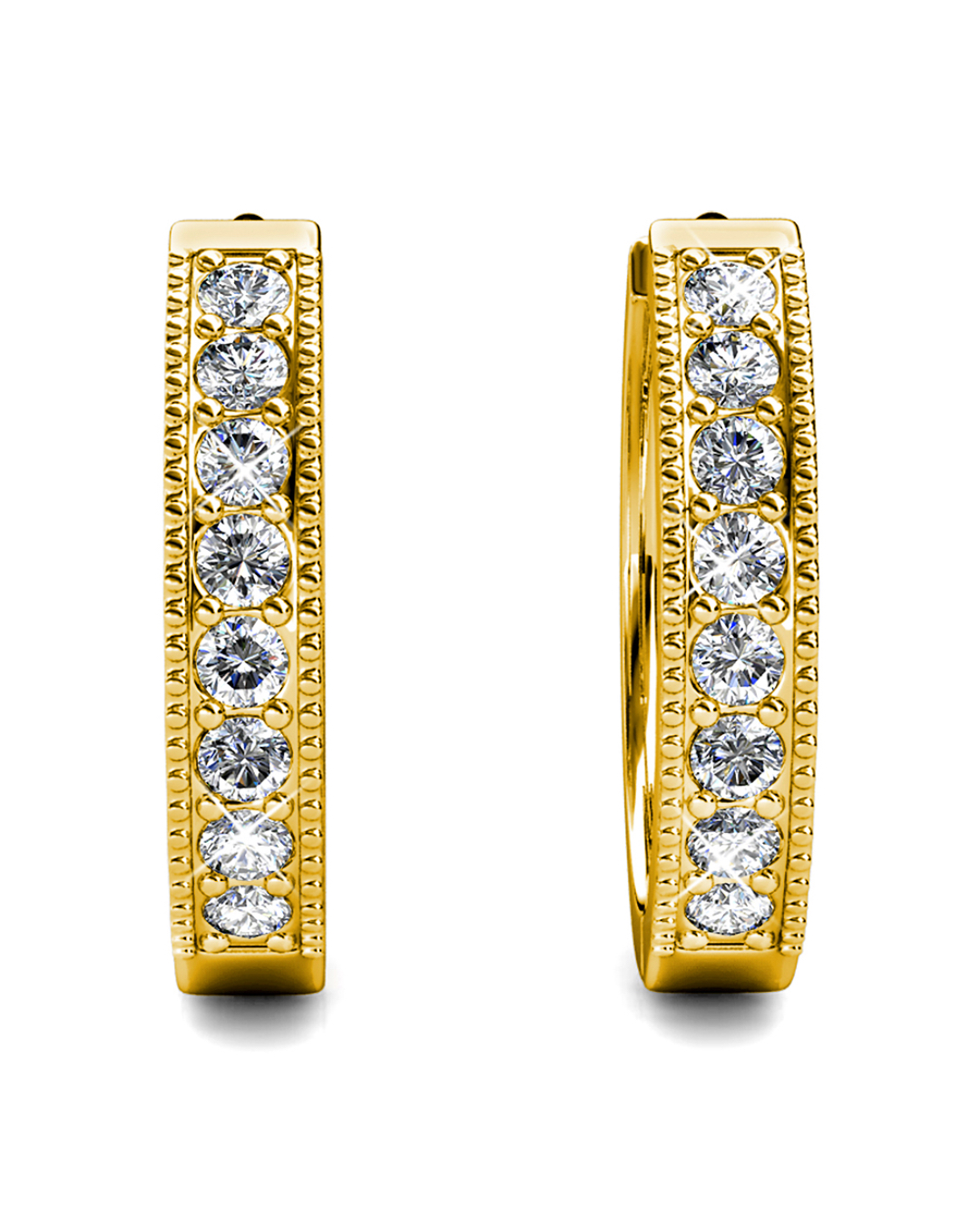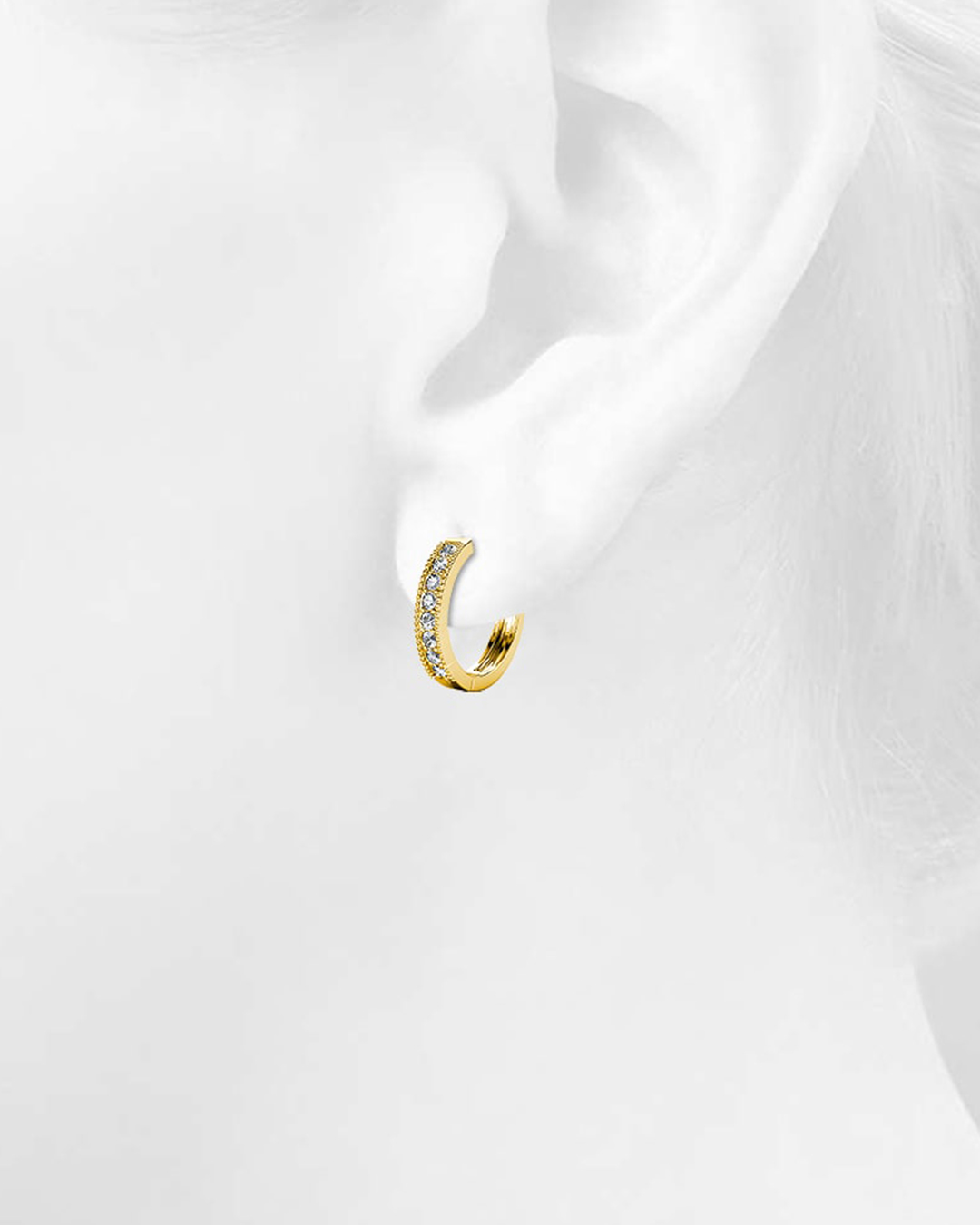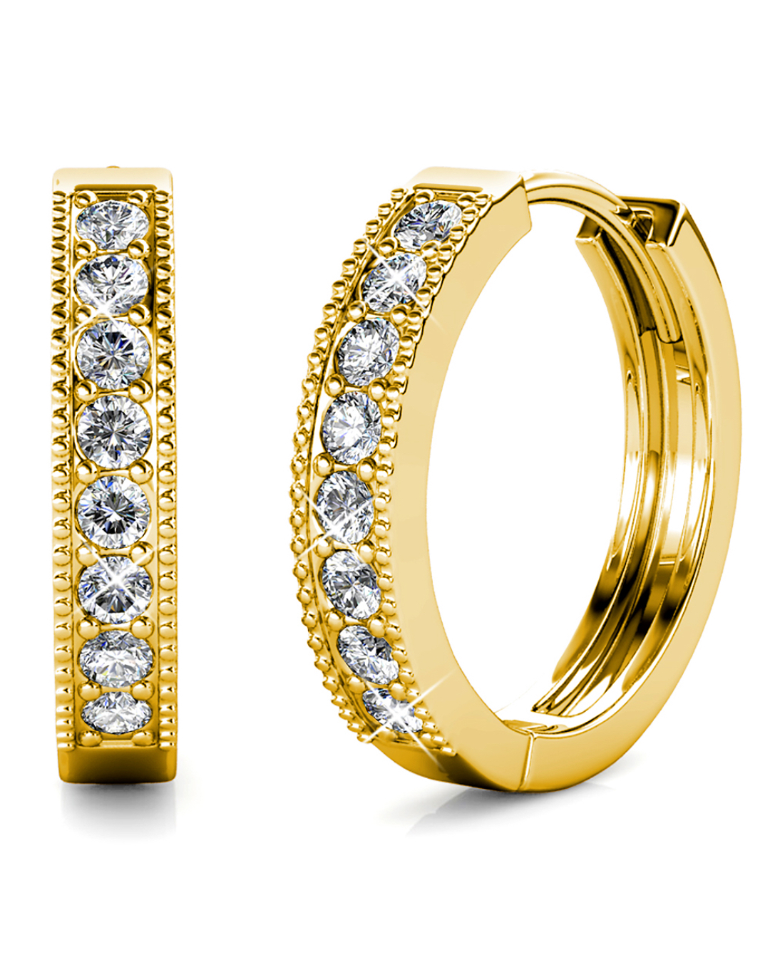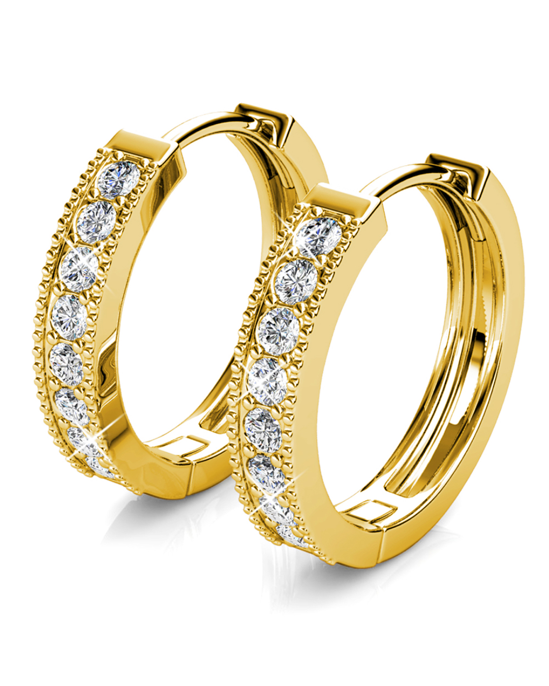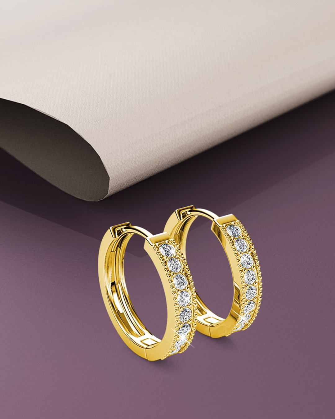 Enchanting and timeless, these beautiful huggie earrings were masterfully crafted with a luxurious 18K Gold plated alloy and are accented with beautiful SWAROVSKI® crystals. Pair it with a matching bracelet, necklace, and ring for a more cohesive and chic look. These earrings will always look great on you no matter what and can be worn anytime you want to step out in style!