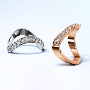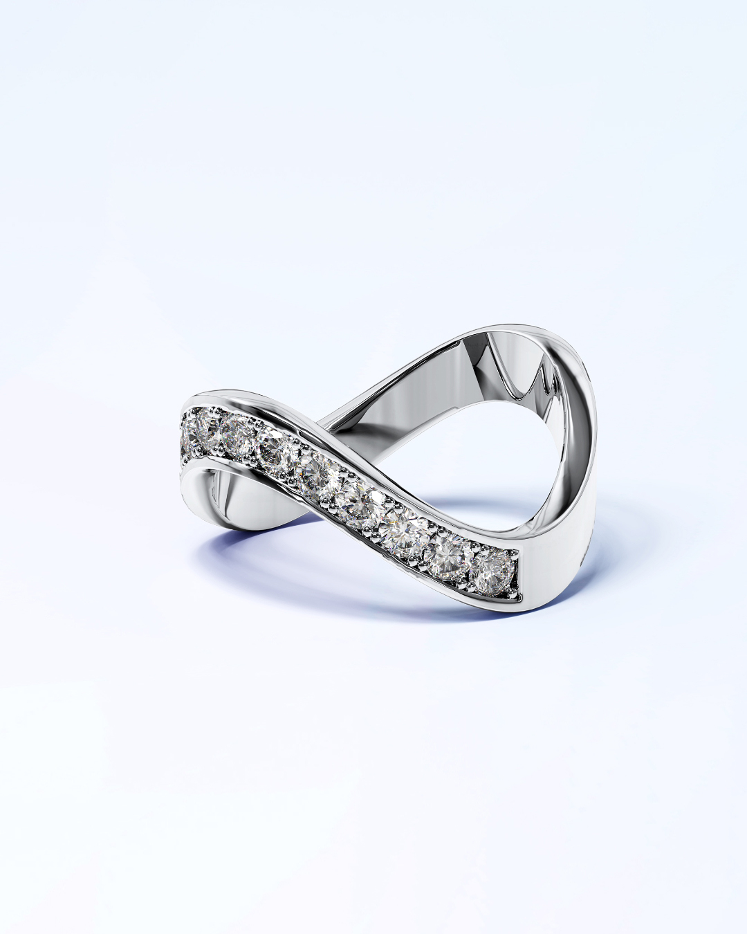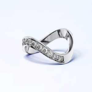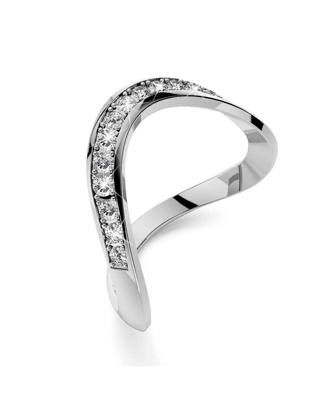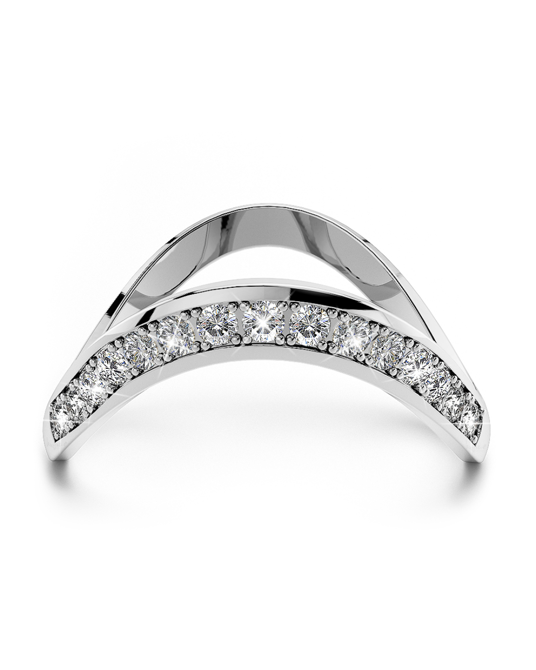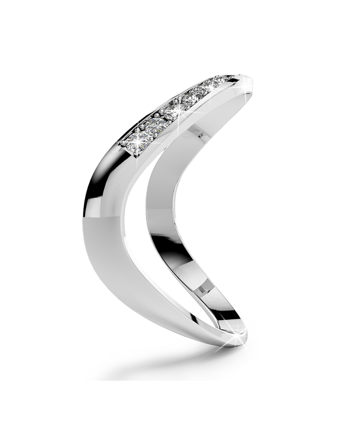 Wear an ultra-modern chic look with this fashionable ring embellished with Crystals from SWAROVSKI® This ring is uniquely designed with a slight wave for easy stacking. 18K White Gold Plated Alloy (thick 0.05 micron high polish plating).