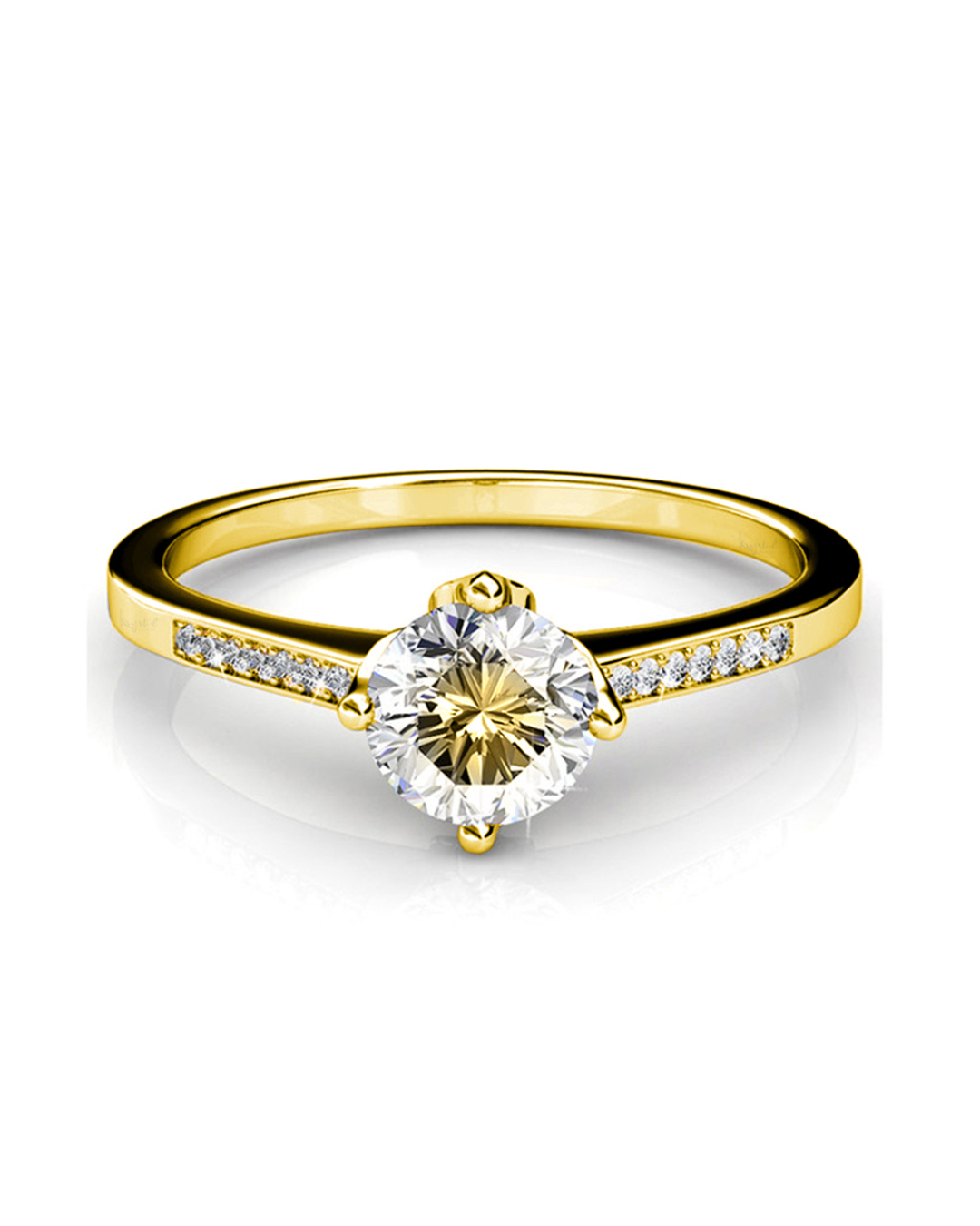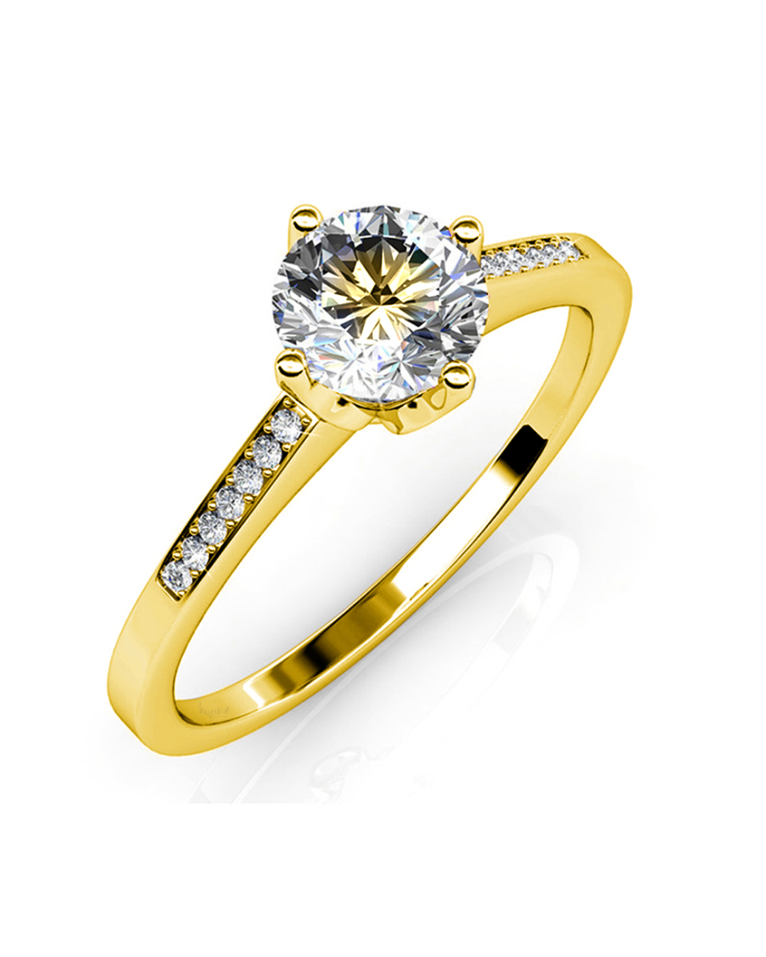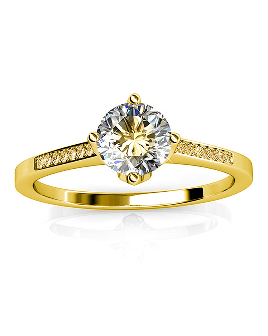 Light up your look with this flattering Engagement ring featuring a SS24 6.5mm Xirius and 14 x PP3 1.0mm Xilion SWAROVSKI® Crystals. This lovely ring is intricately crafted of 18K Gold plated alloy. Surely an inspirational piece and envy to any gaze