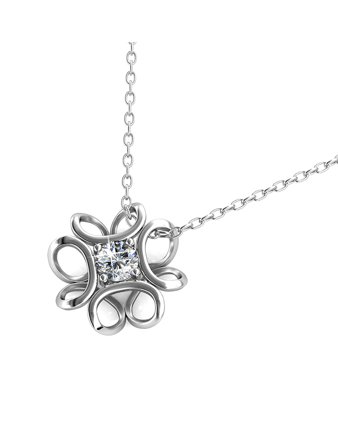 Bring femininity and grace to your look with this necklace featuring a hologram design decorated daffodil. This adorable pendant is crafted of 18K White Gold plated alloy, enhanced with a round crystal from SWAROVSKI® for a shimmering effect. This necklace is a pretty addition to any ensemble.