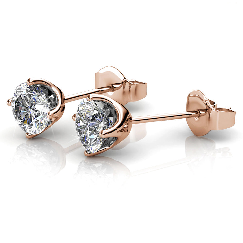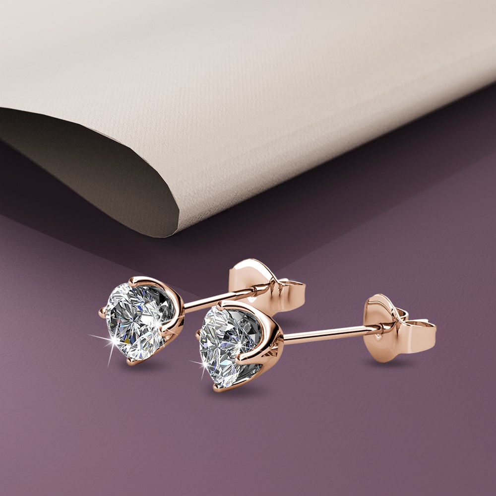 Perfect for everyday wear, these classic studs showcase sparkling Crystals from SWAROVSKI® . Each earring boasts a classic round-cut crystal measuring 7mm in diameter, prong-set in extra polished 18K Rose Gold plated alloy. A truly classic piece presented in a timeless fashion.