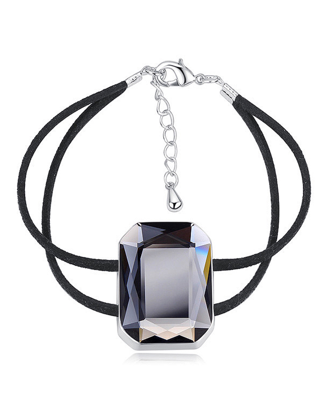 Sassy and radiant, this bracelet features fascinating emerald-cut black crystal made with SWAROVSKI® Element. This double strap bracelet stays secure with a lobster claw clasp. A super chic piece makes a standout addition to your collection.