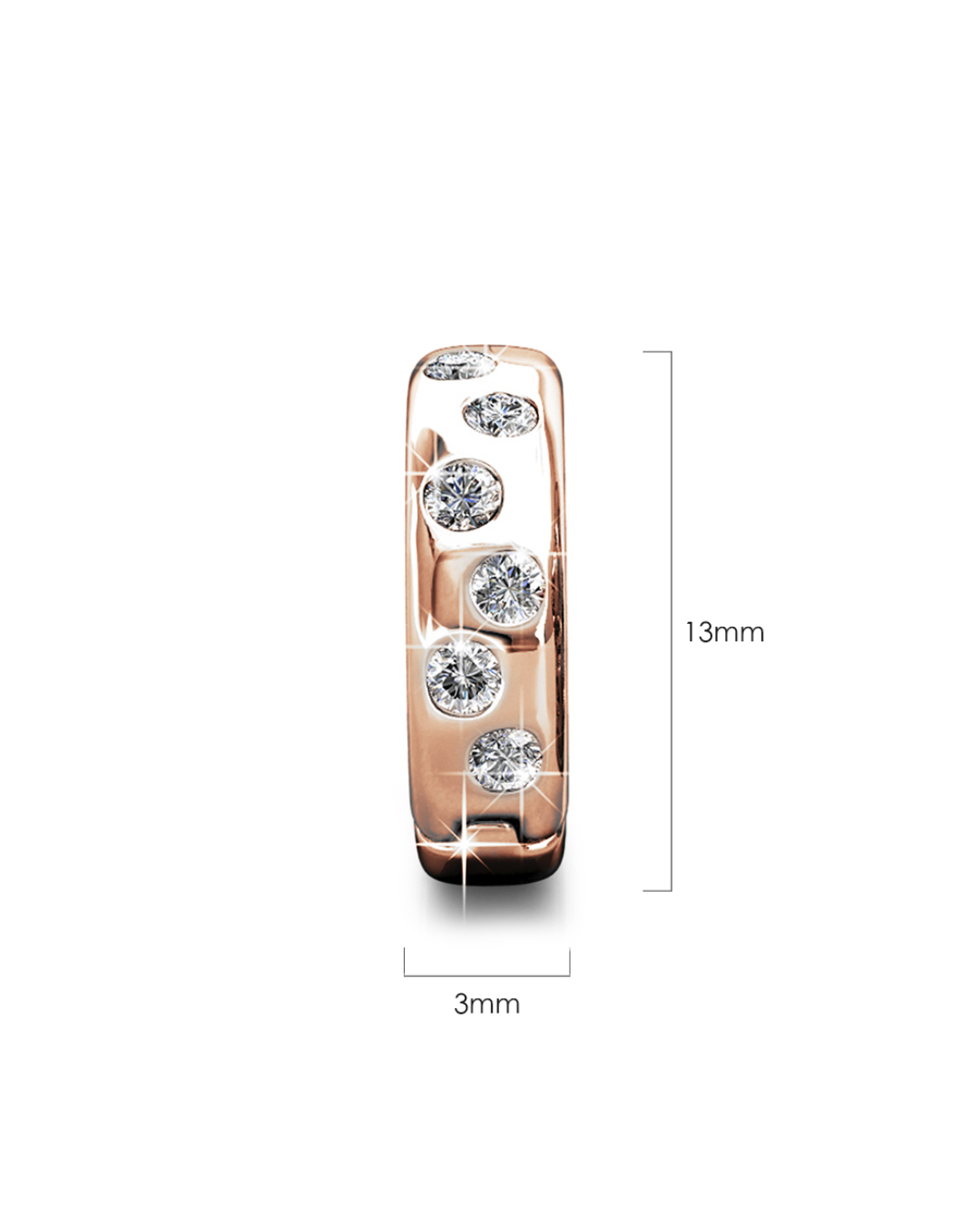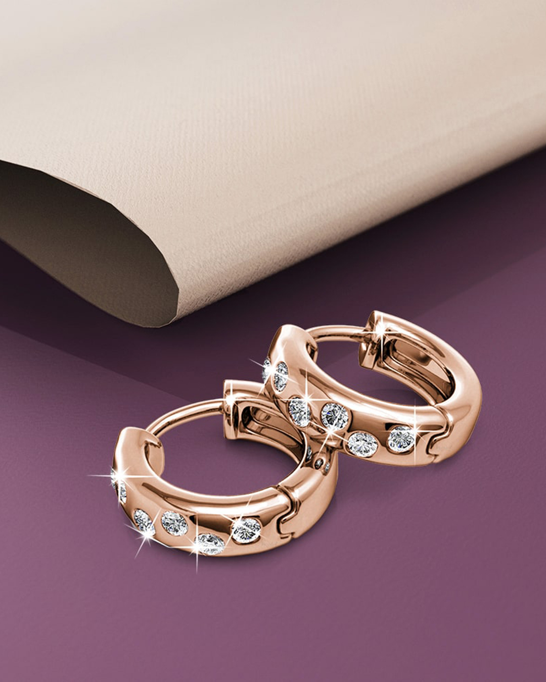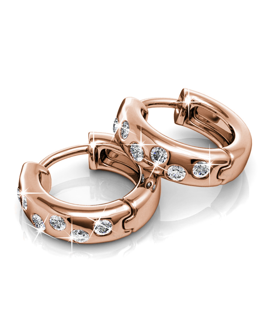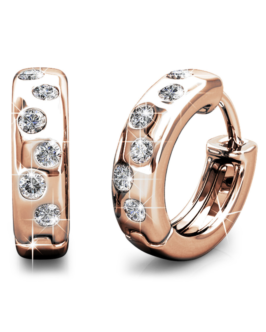 Adorned with brilliant Crystals from SWAROVSKI® , these earrings boast a simple, yet exquisite style. Each hoop showcases a total of 12 crystals measuring 1.5mm each. Crafted with 18K Rose Gold plated alloy, this classic collection shines with a high polish finish.