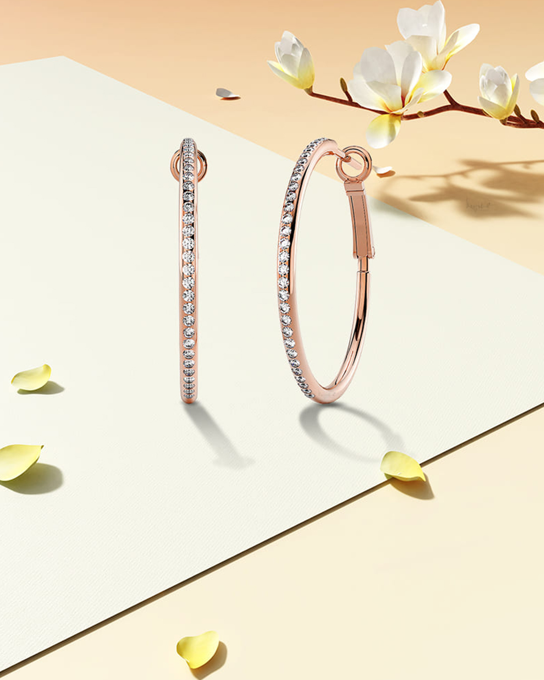 Endless Hoop Earrings Embellished With SWAROVSKI® Crystals in Rose Gold – 35 mm