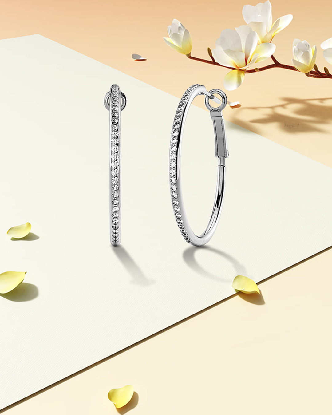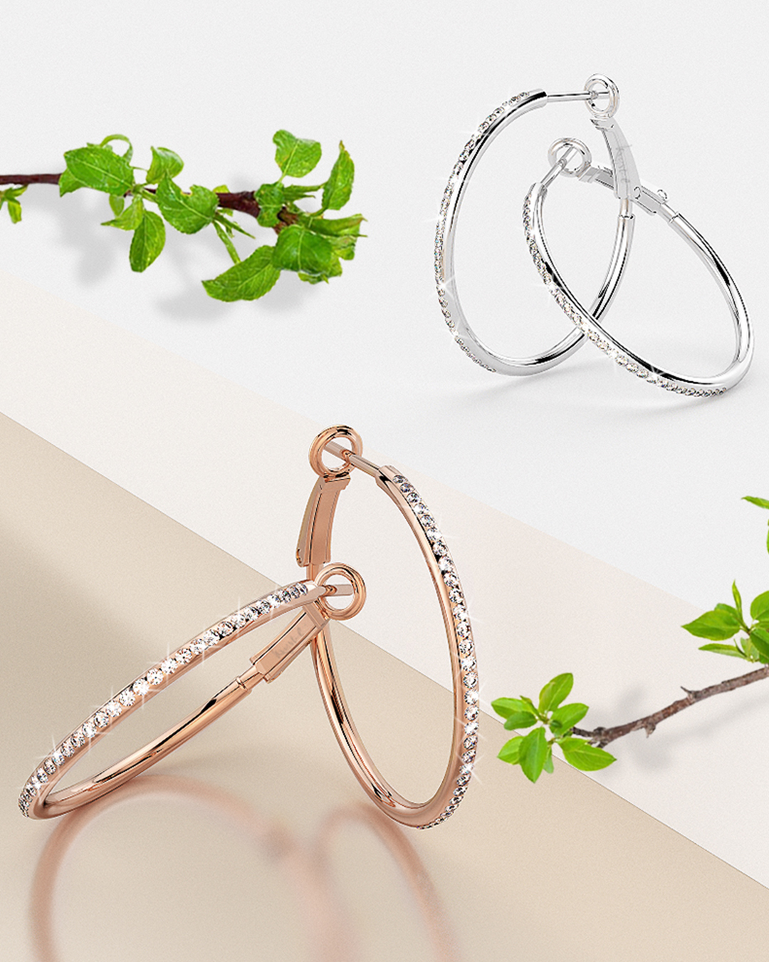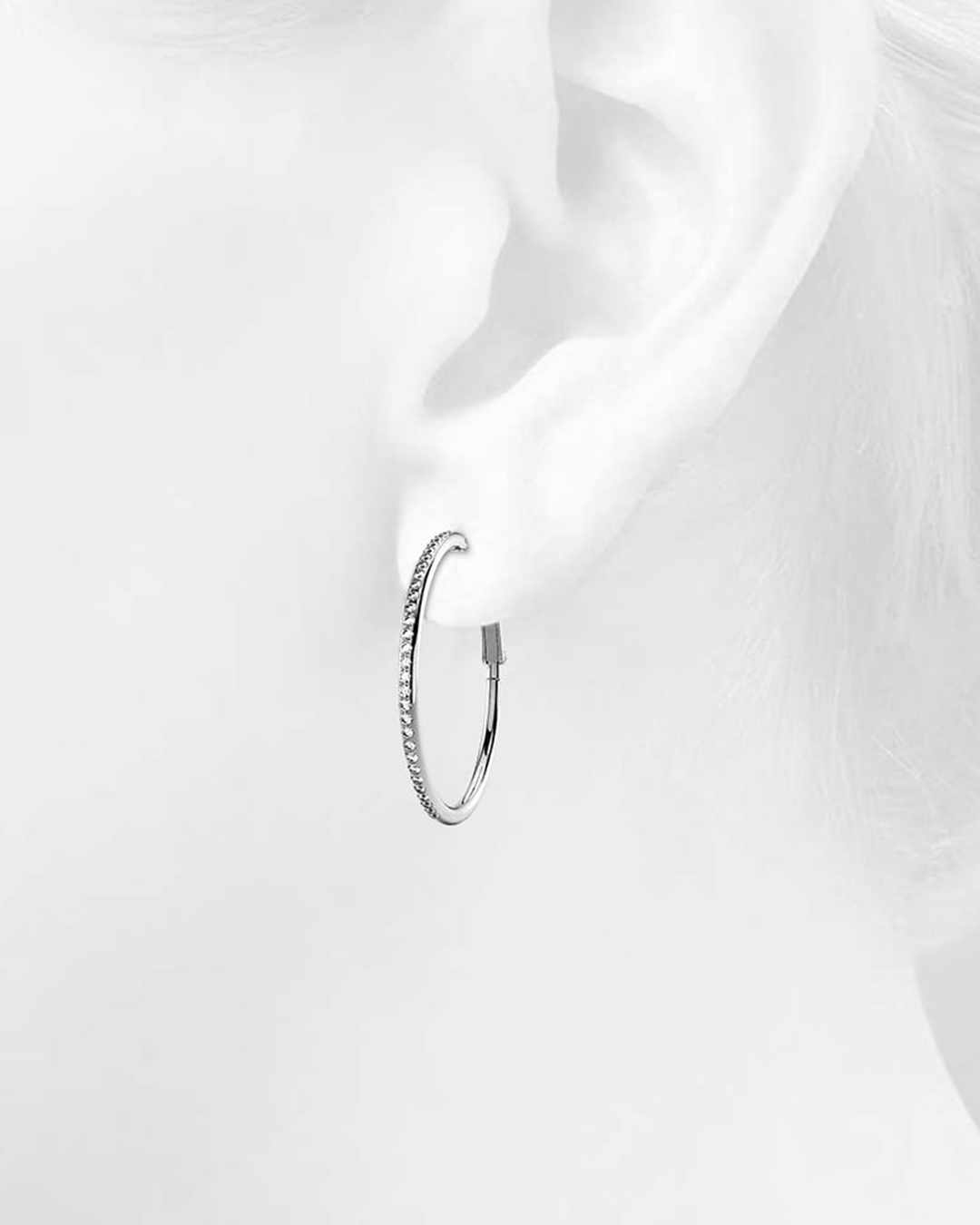 Endless Hoop Earrings Embellished With SWAROVSKI® Crystals in White Gold – 35 mm
