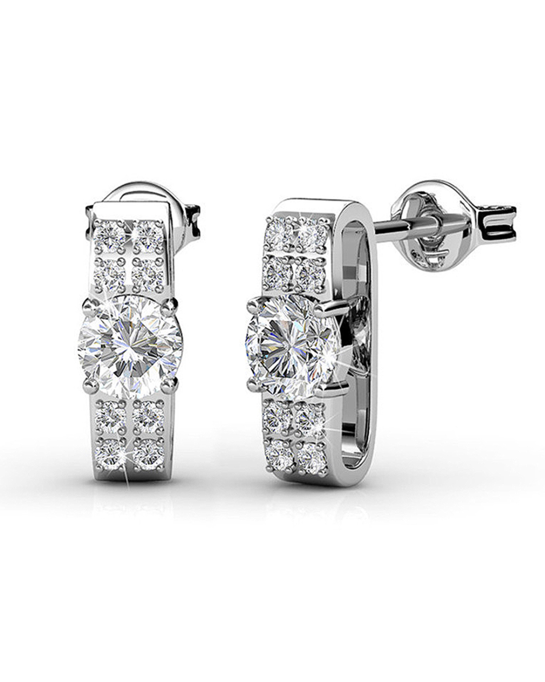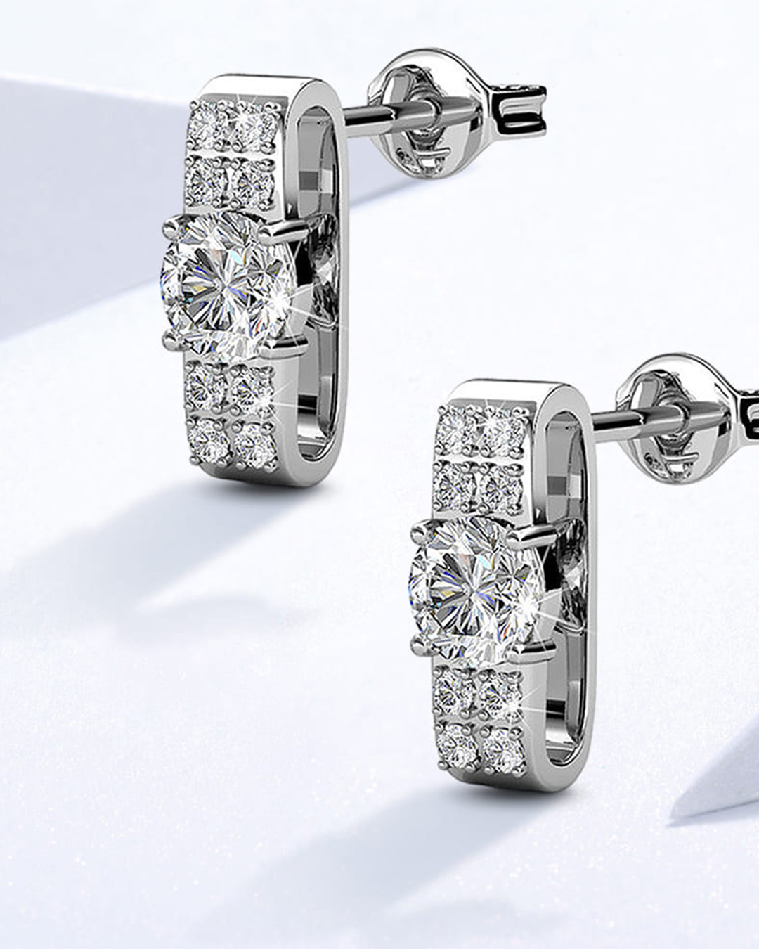 Delicate and fine, these 18K White Gold plated earrings will enhance the ears of anyone who wears them. Covered with Crystals made with SWAROVSKI® Elements, these earrings are the your next favourite accessory.
