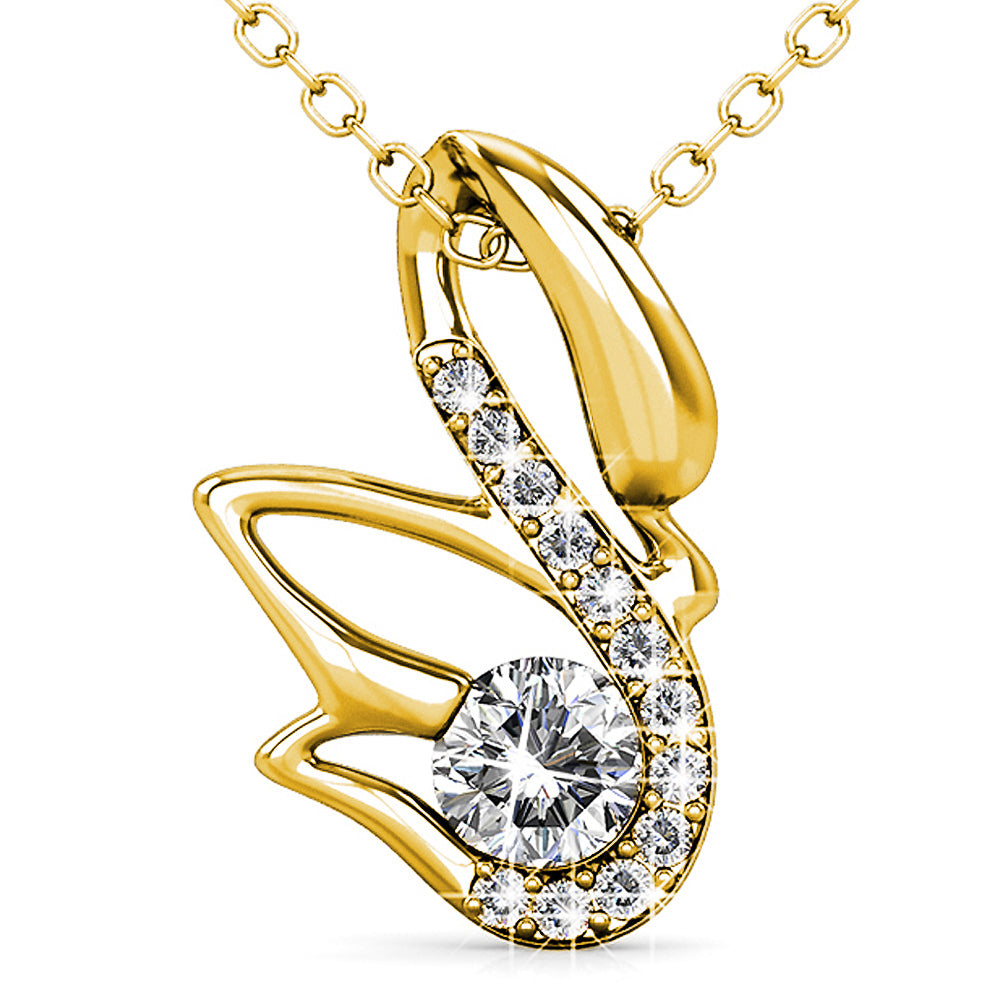 Crafted with highly polished 18K Gold plated alloy, this unique necklace features Crystals From SWAROVSKI® pendant is carefully fashioned into an enchanted swan design that shimmers with one round-cut crystal accompanied with multiple smaller crystals all created with Crystals From SWAROVSKI® timeless & elegant SWAROVSKI® Swan piece is a must-have in your collection