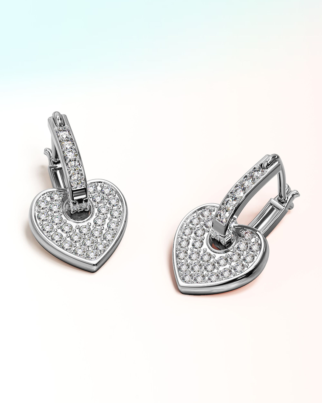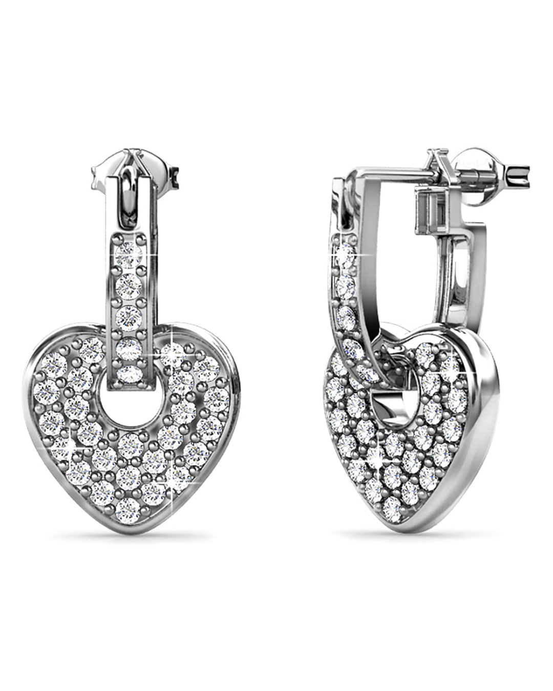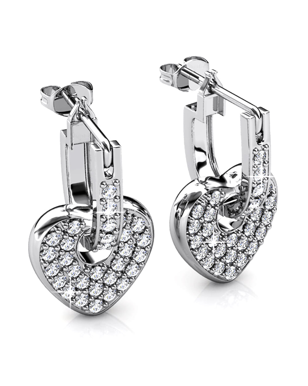A unique piece that sparkles at any angle. A heart-shaped crafted dangle earrings embellished with SWAROVSKI® Crystals will definitely blinding everyone. Plated with 18K White Gold, this necklace is a show stopper.