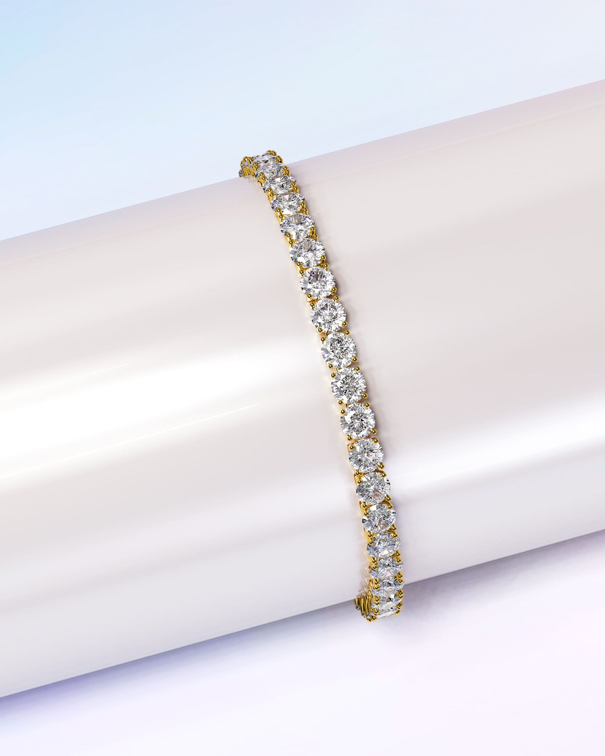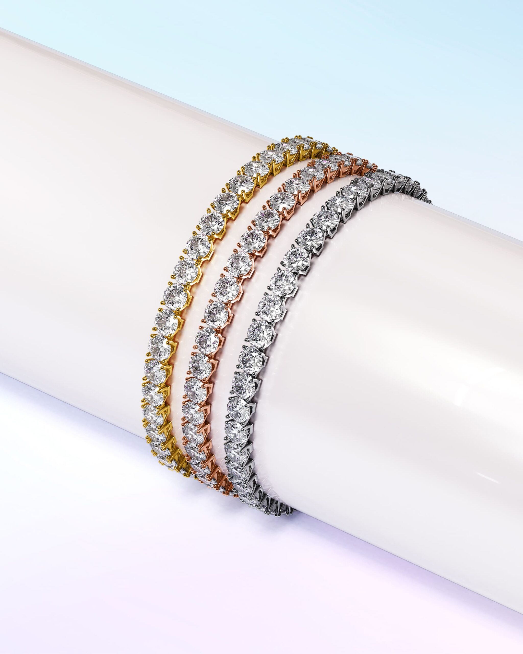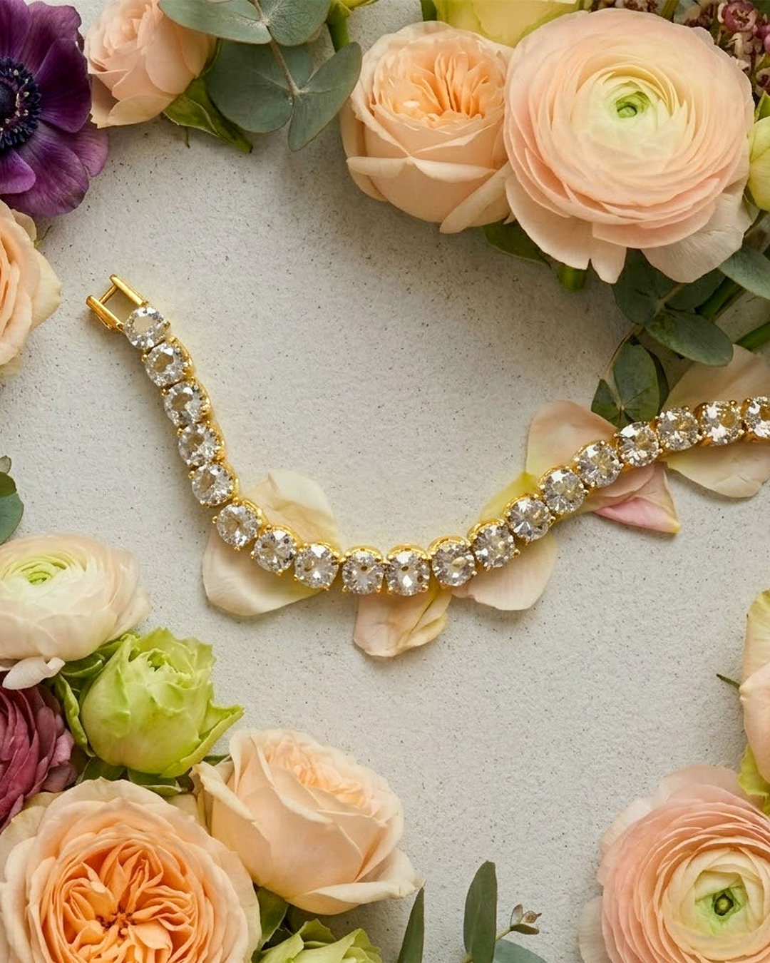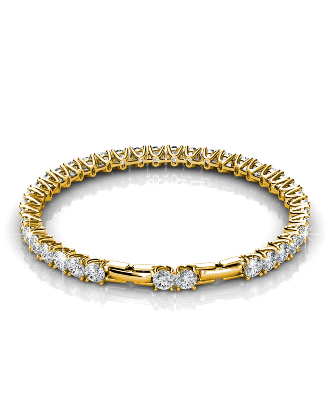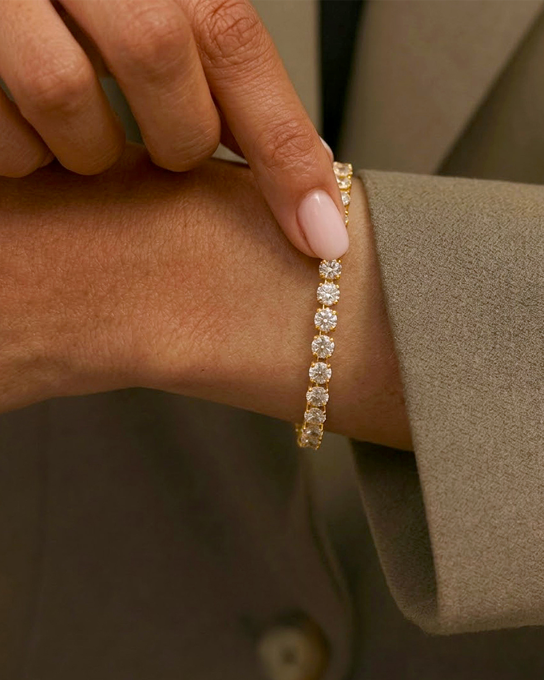 This simple yet elegant tennis bracelet showcases round-cut Crystals made with SWAROVSKI® Elements, prong set in 18K Gold finsh. Perfect for any occasions!