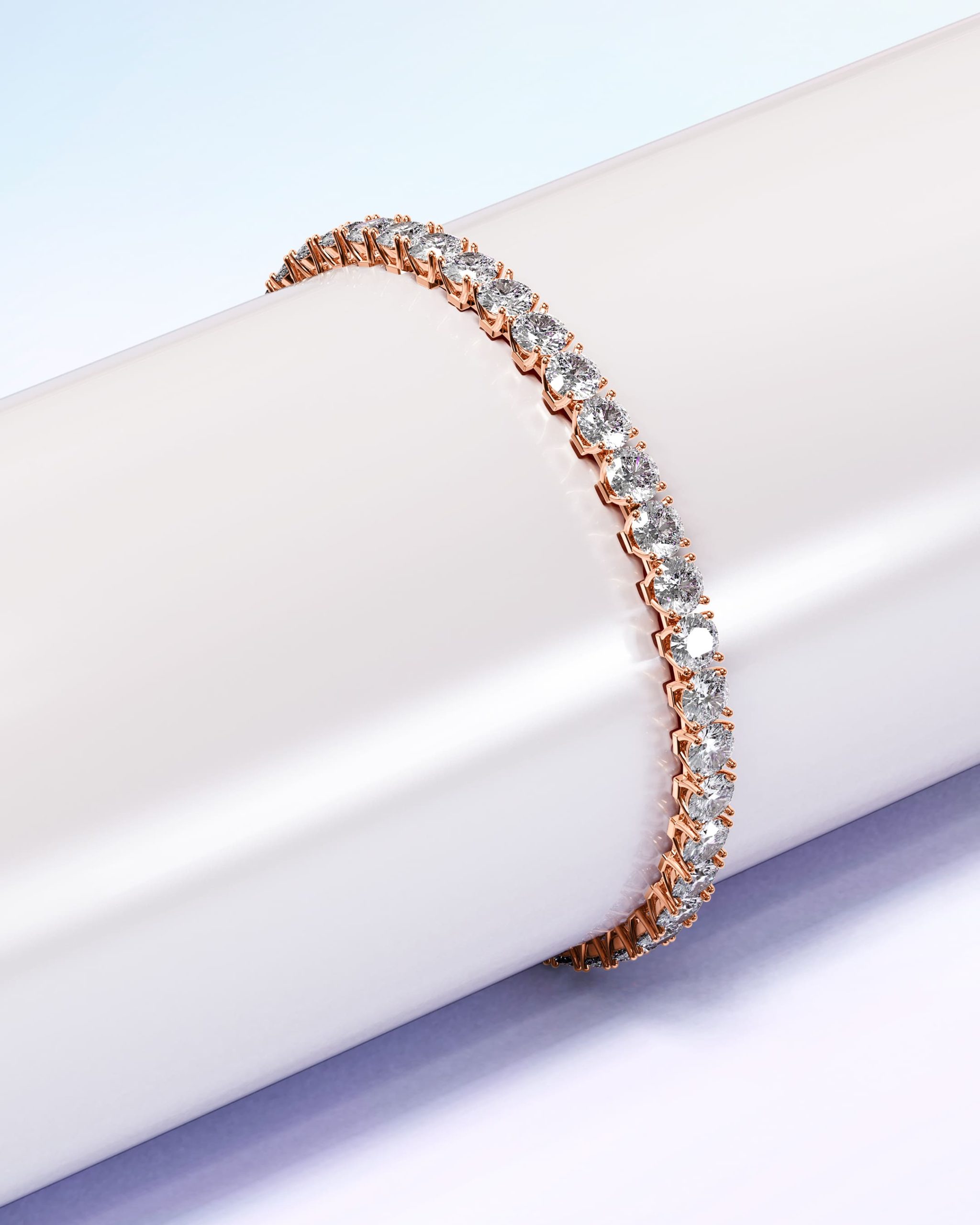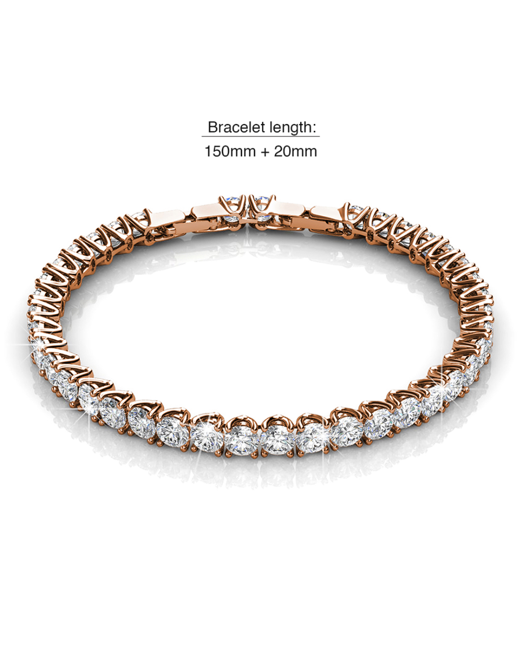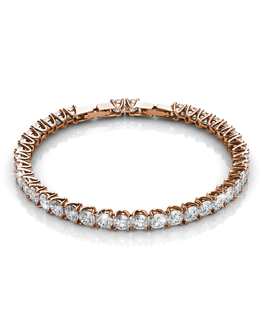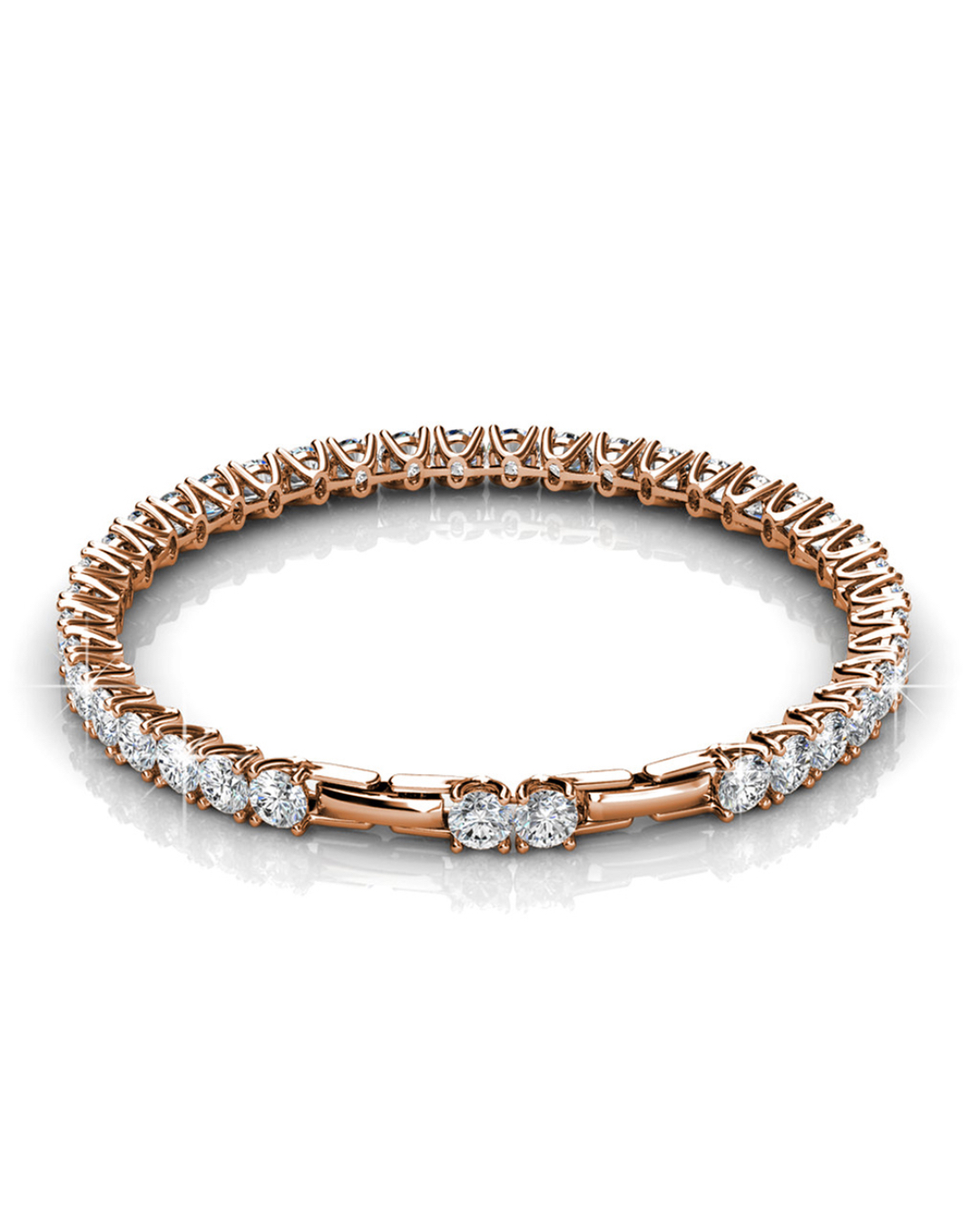 This elegant tennis bracelet showcases shimmering round-cut crystals made with SWAROVSKI® Elements, prong set in 18K Rose Gold plated alloy. Perfect for special occasions!