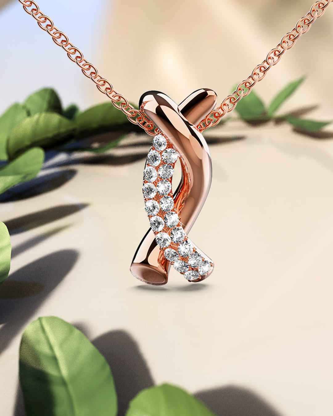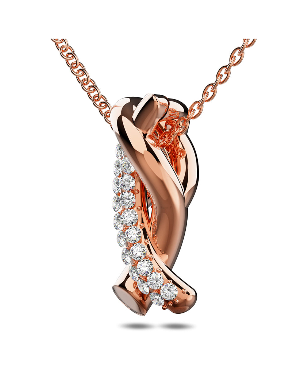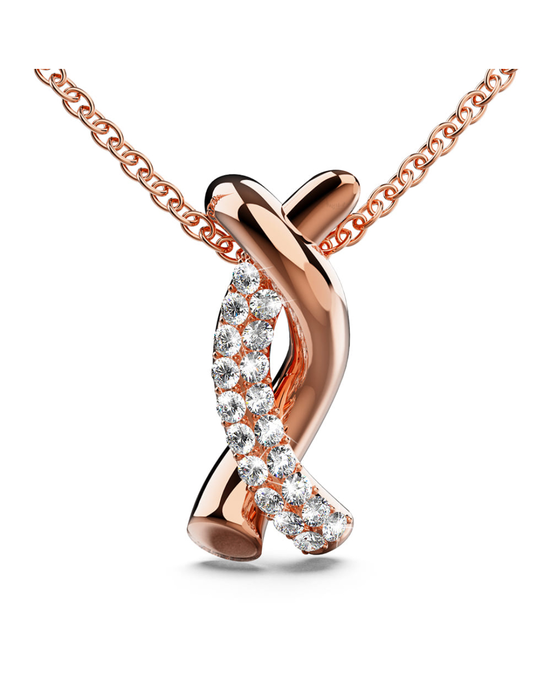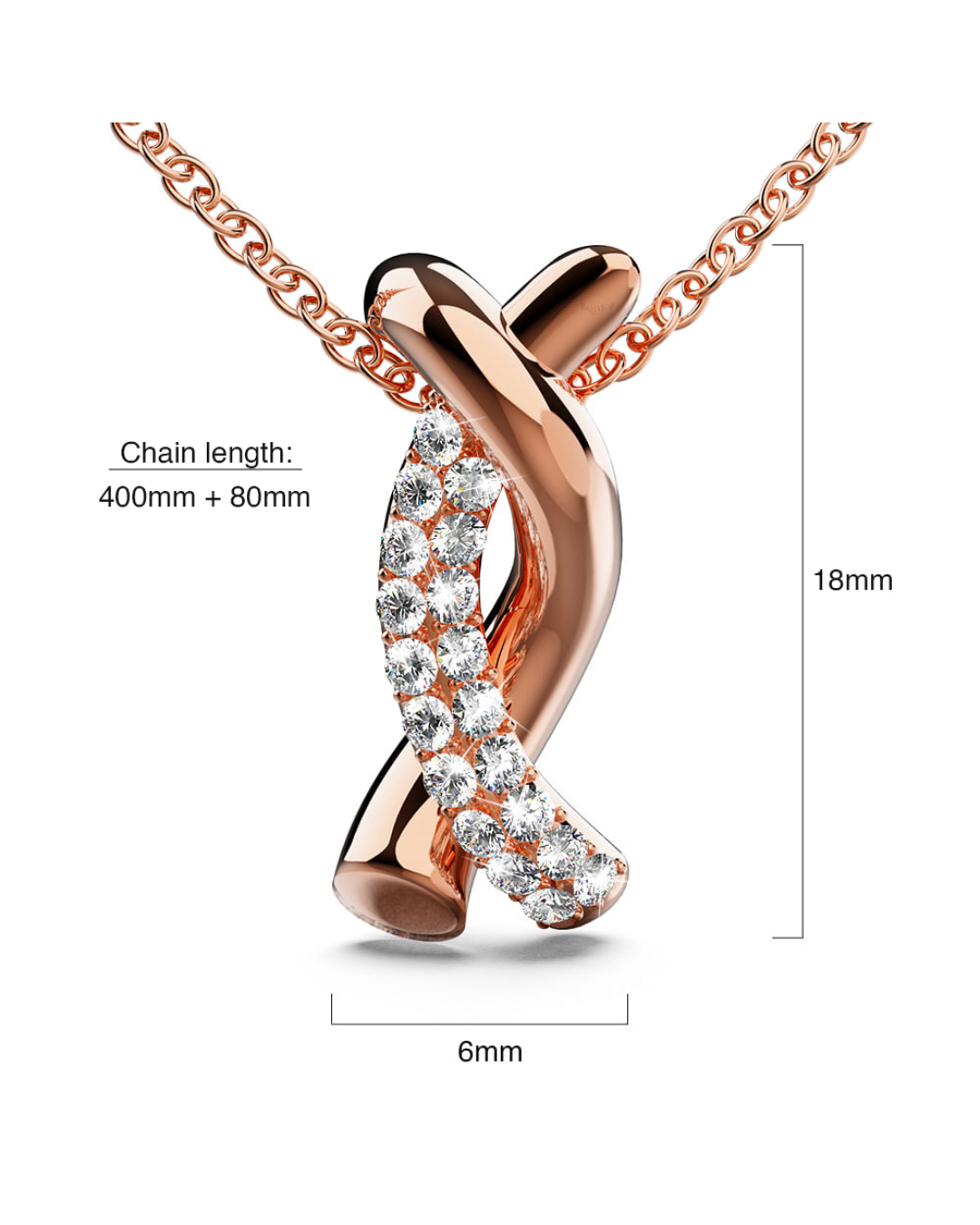 Elegant with a twist! This gentle twist curve pendant intertwined with shimmering SWAROVSKI® Crystals create a unique centrepiece to add elegance to your look. Comes in high polish extra thick 0.05 micron 18K Rose Gold plating over alloy and is a great addition to your everyday style.