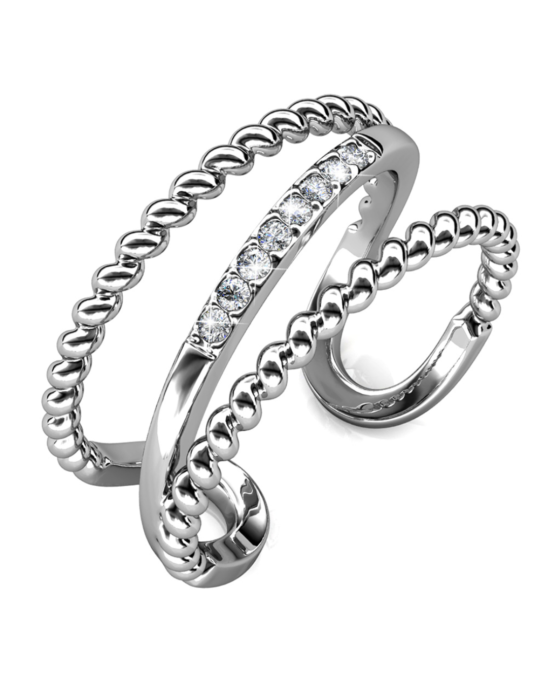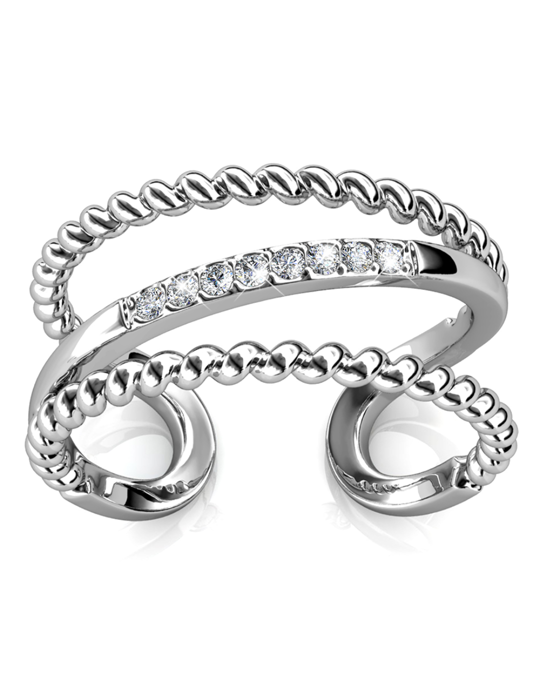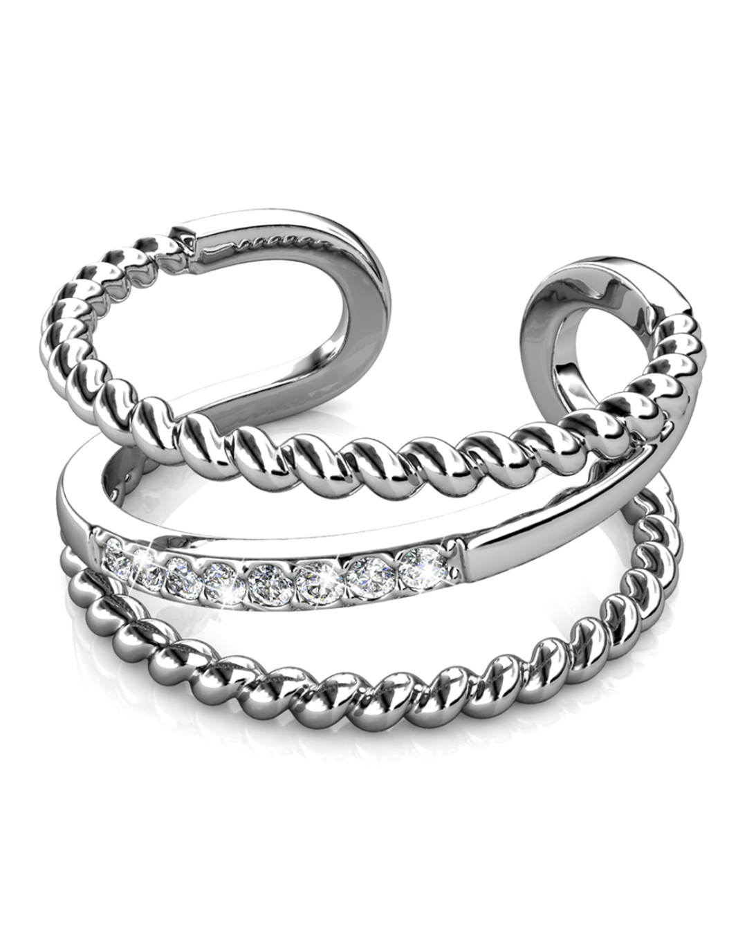 The Jennifer Ring is perfect for the modern woman. Made with a beautiful 18ct White Gold plated alloy and embellished with dazzling SWAROVSKI® crystals, this fabulous piece will add a touch of glamour to any of your outfit. The high-quality brass material ensures that this ring will last you a lifetime of impressions. Wear it to formal events or simply to make an everyday outfit feel special – a ring that is sure to turn heads wherever you go!