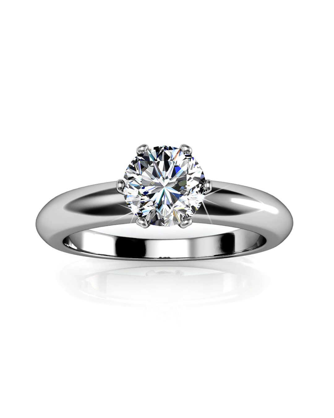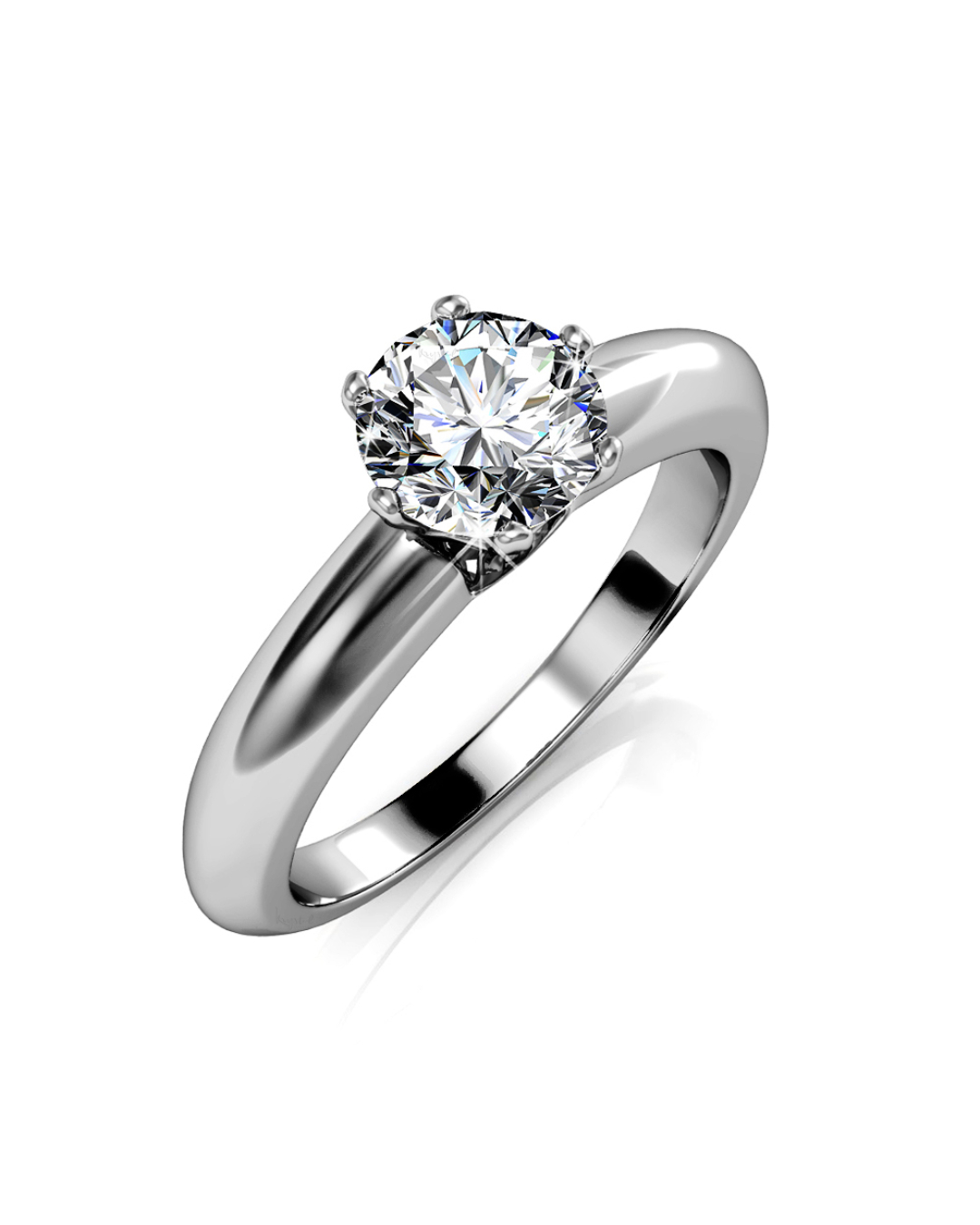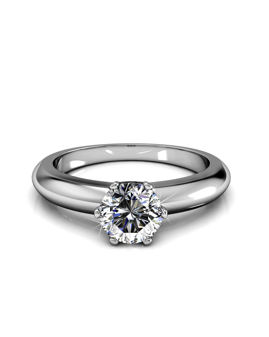 Dare to dazzle with this radiant solitaire Engagement ring featuring a sparkling SS29 6mm Xirius SWAROVSKI® Crystals crafted from high gloss 18K White Gold plated Alloy. A timeless treasure that shines at every angle.