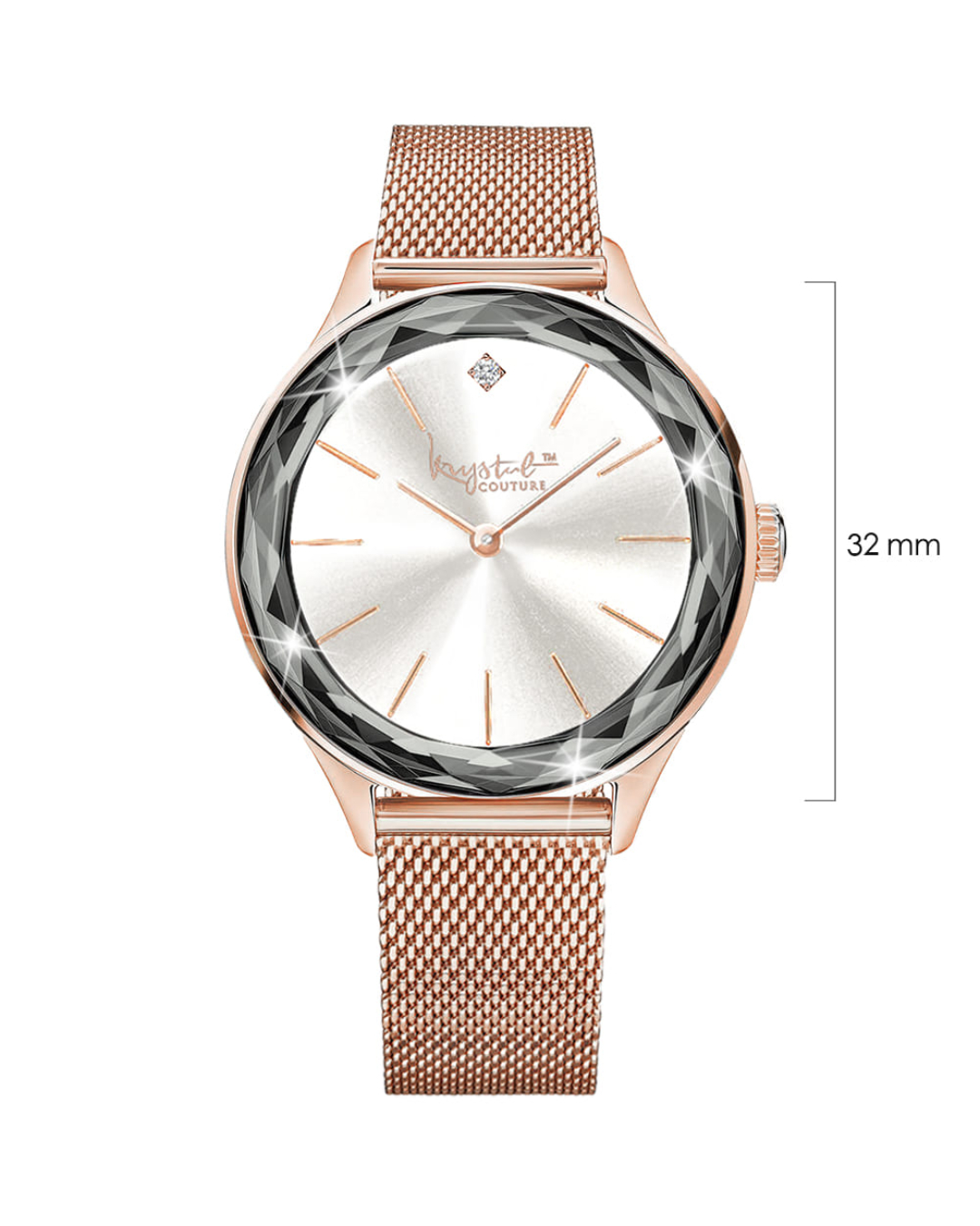 Luxurious Geometric cut hardened scratched resistant Mineral Glass designer watch from Krystal Couture to enhance your look in every outfit. Seiko Quartz Japanese movement for precision and accuracy