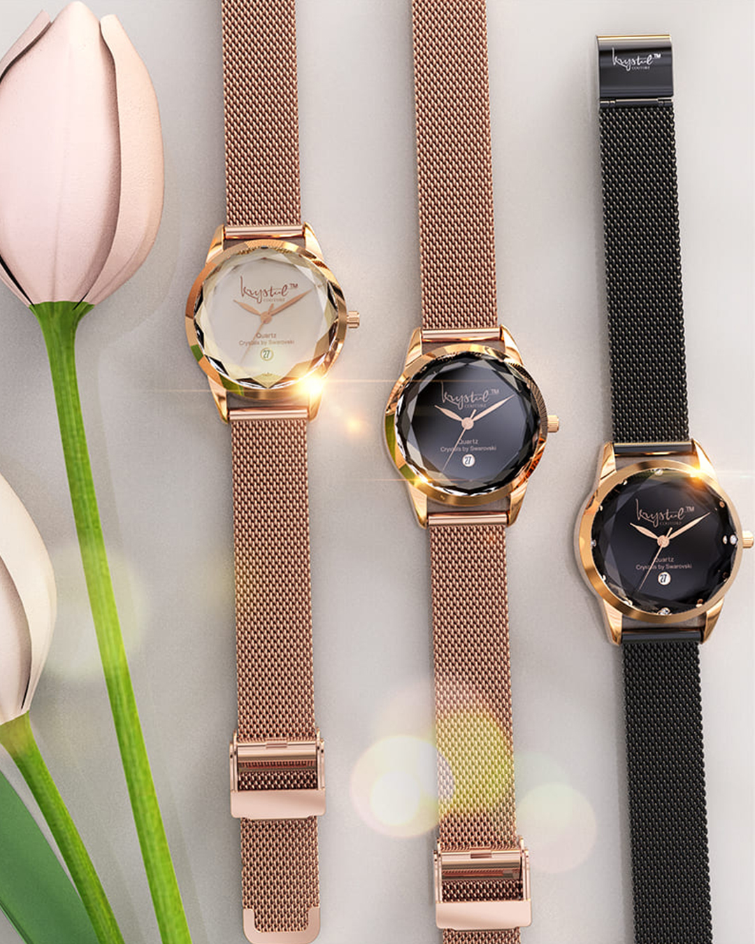 Keep track of time in style with The Krystalline Sleek Rose Gold Black Watch Embellished With SWAROVSKI® Crystals. This classic & traditional timepiece comes complete with a luxurious Rose Gold plated stainless steel strap and face combination. Well-crafted with a 30M waterproof alloy, a secure adjustable snap closure and powered by a distinctive quartz movement; making this watch not only beautiful, but practical too!