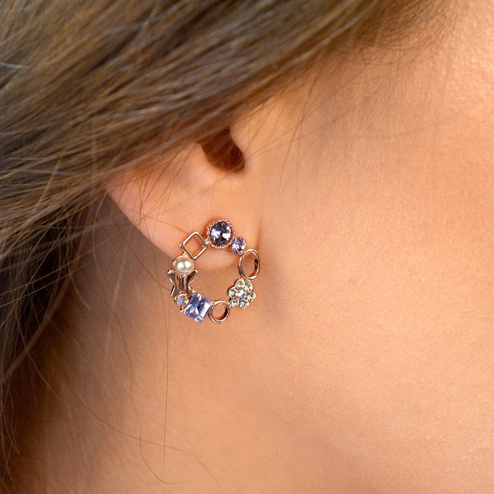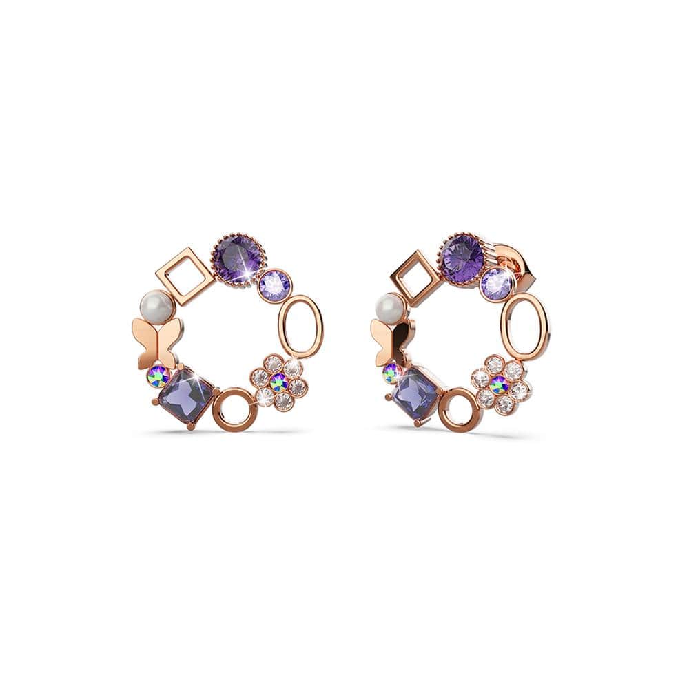 Adorn your ears with our Lavender Geometric Circular Stud Earrings Embellished With SWAROVSKI® Crystals and add instant glam to any of your outfits! Crafted with beautiful purple iridescent crystals and bejewelled with only the finest shell pearls, these earrings will bring an undeniably luxurious feel to your overall gorgeous look with its rose-gold plated design. Perfect for any occasion.