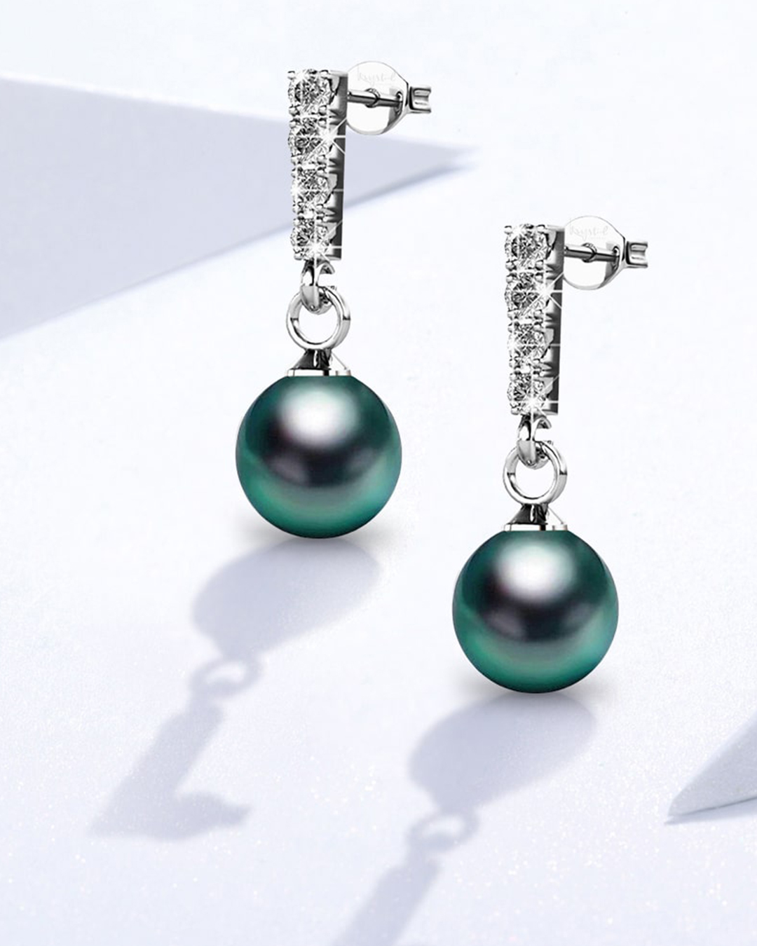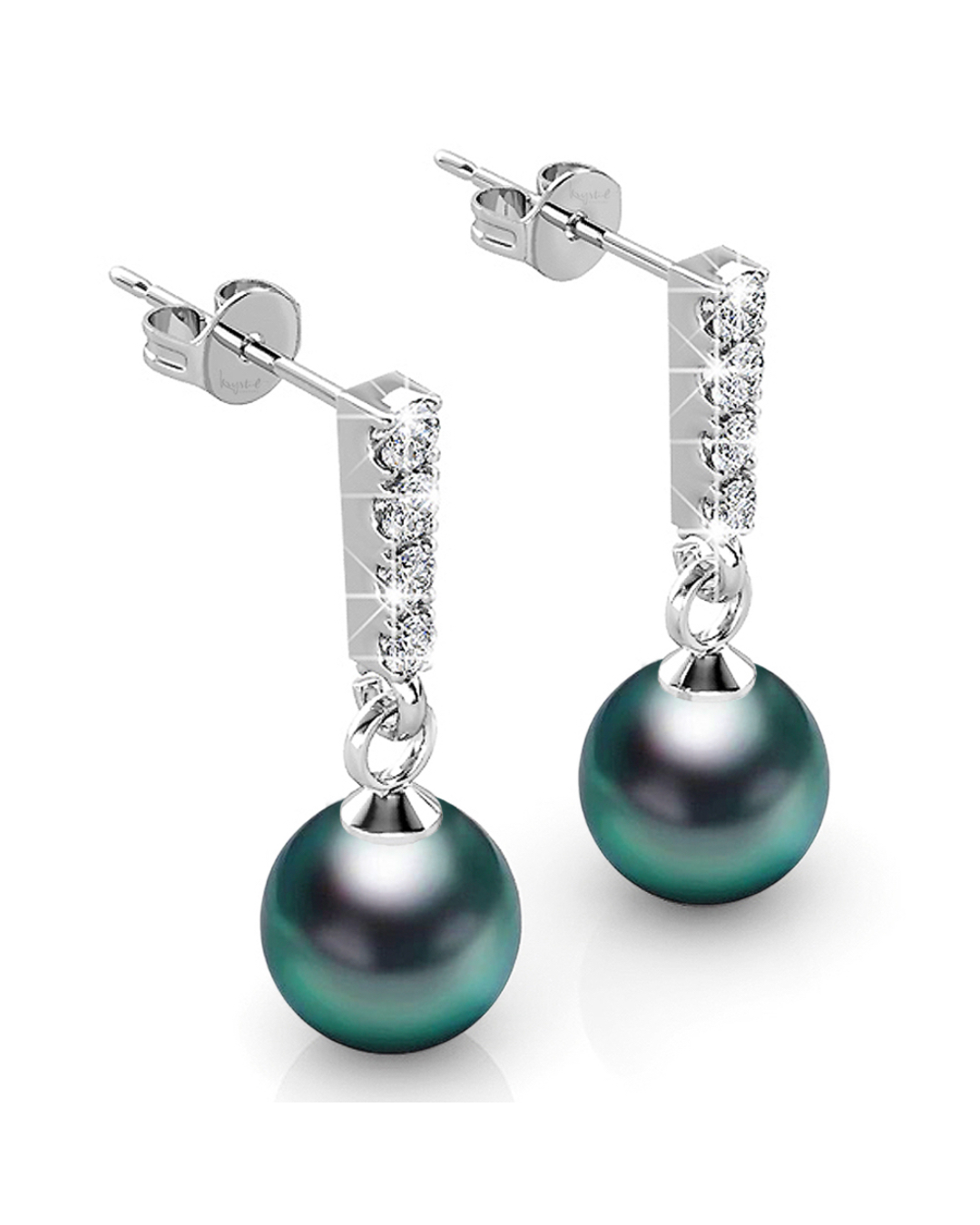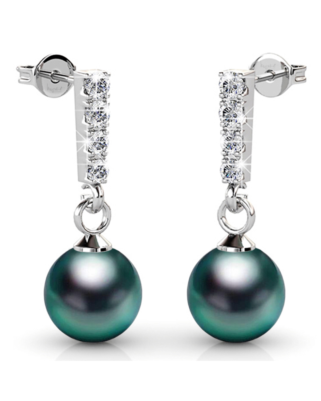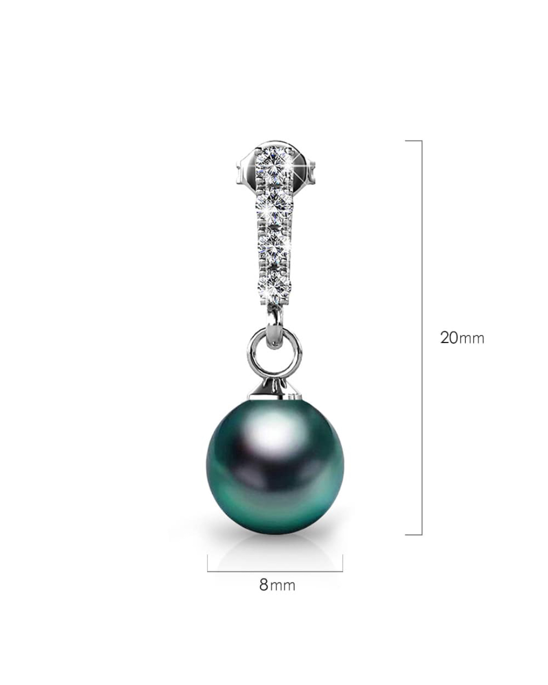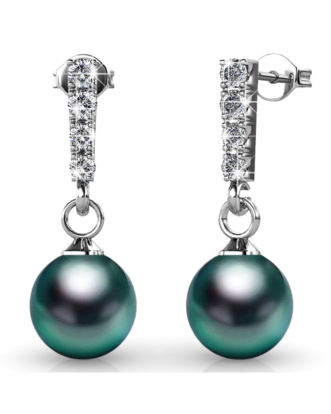 Each of these drop earrings is adorned with a shiny round 8mm SWAROVSKI® Crystal Iridescent Tahitian Look Pearls, highlighted with sparkling crystal accents