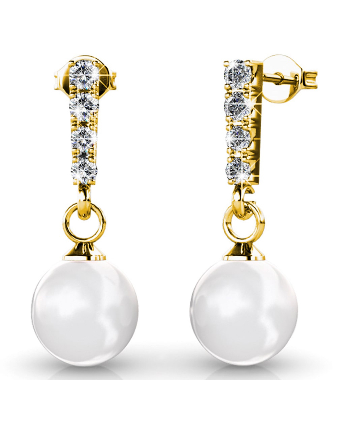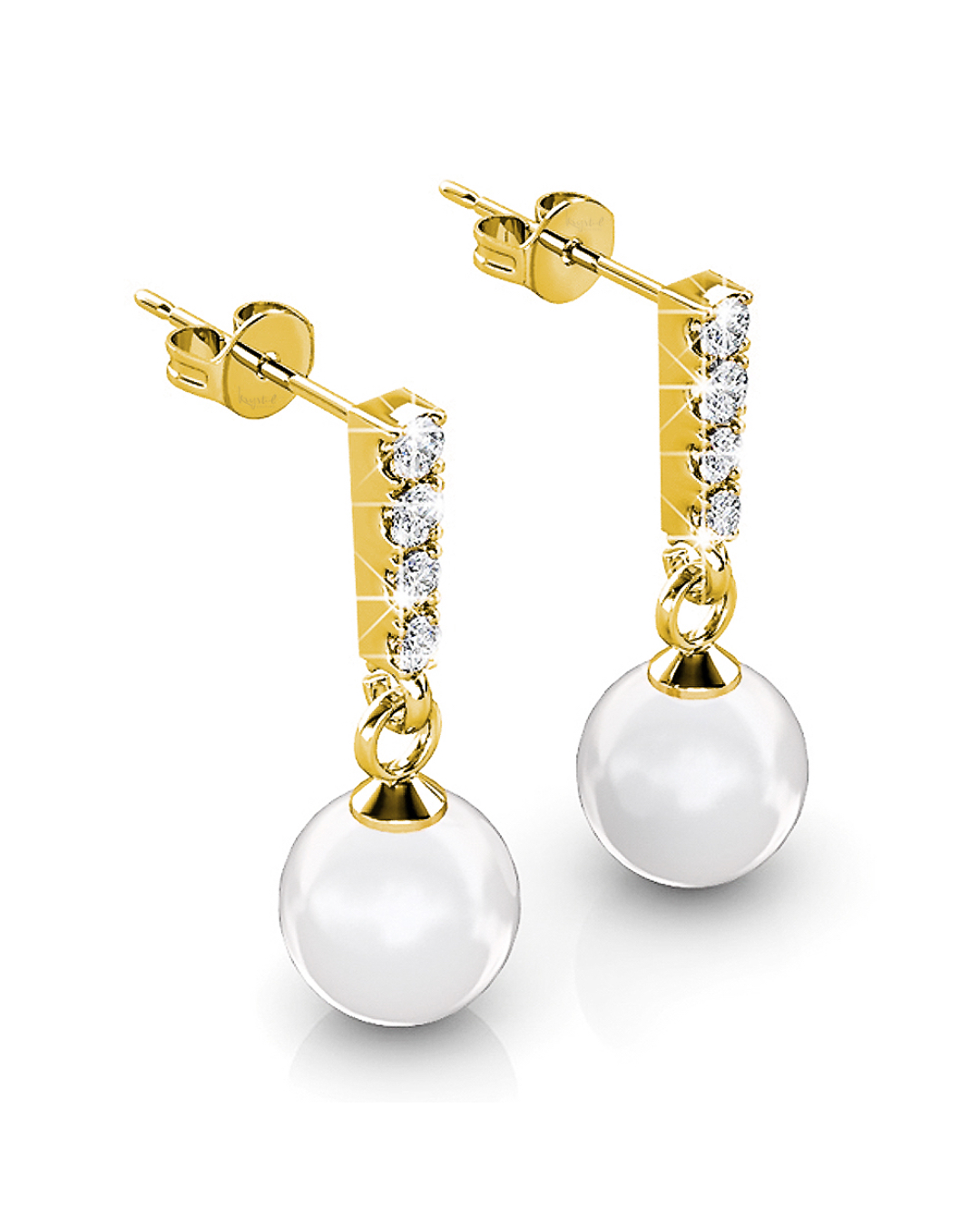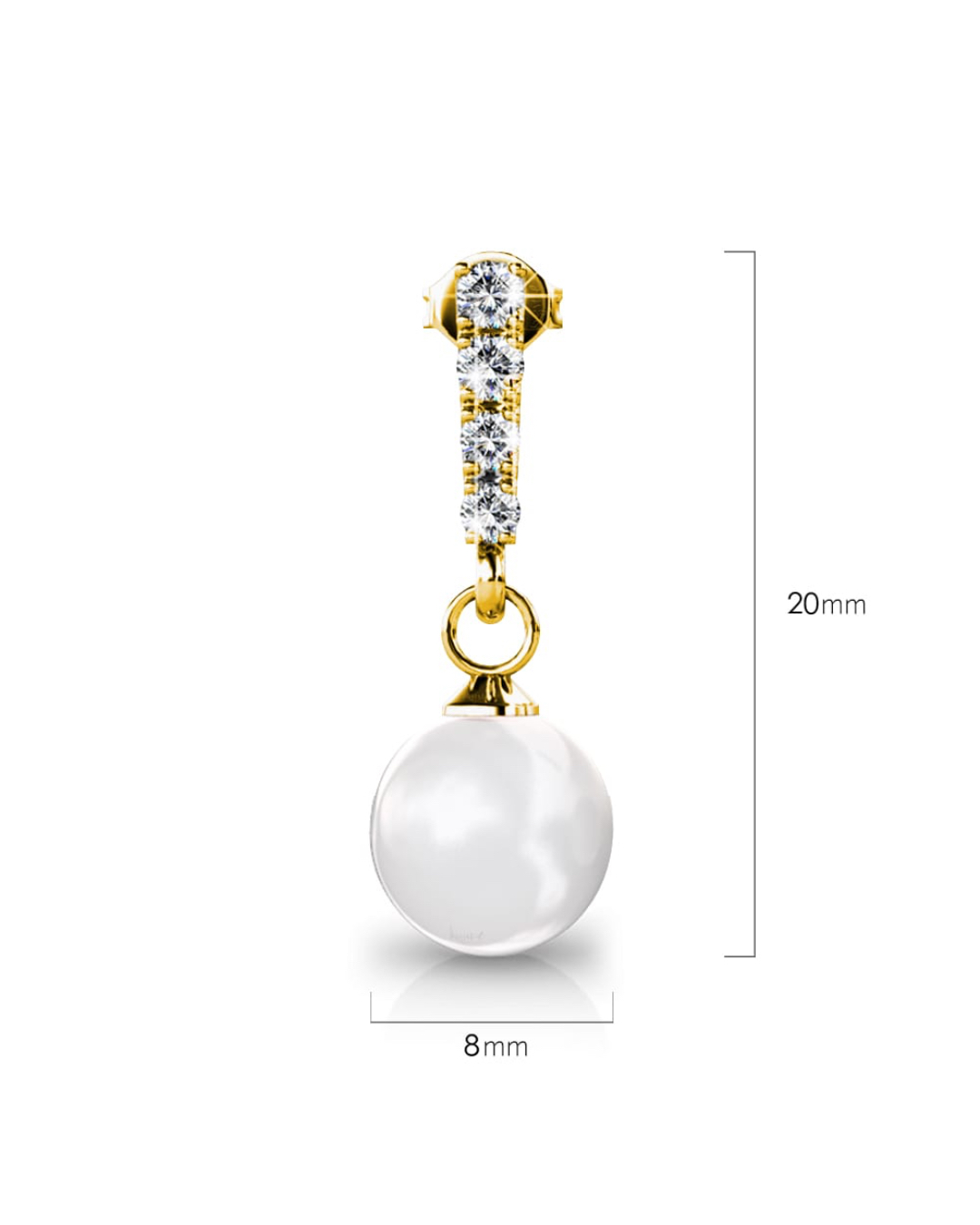 A flawless & elegant beauty, this lovely earrings is embellished with 8 x PP8 1.45mm Xilion SWAROVSKI® Crystals. Each of these drop earrings is adorned with a shiny round 8mm SWAROVSKI® Pearl, highlighted with sparkling crystal accents. These earrings are made of 18K Gold plated alloy, extra coated for long lasting shine.