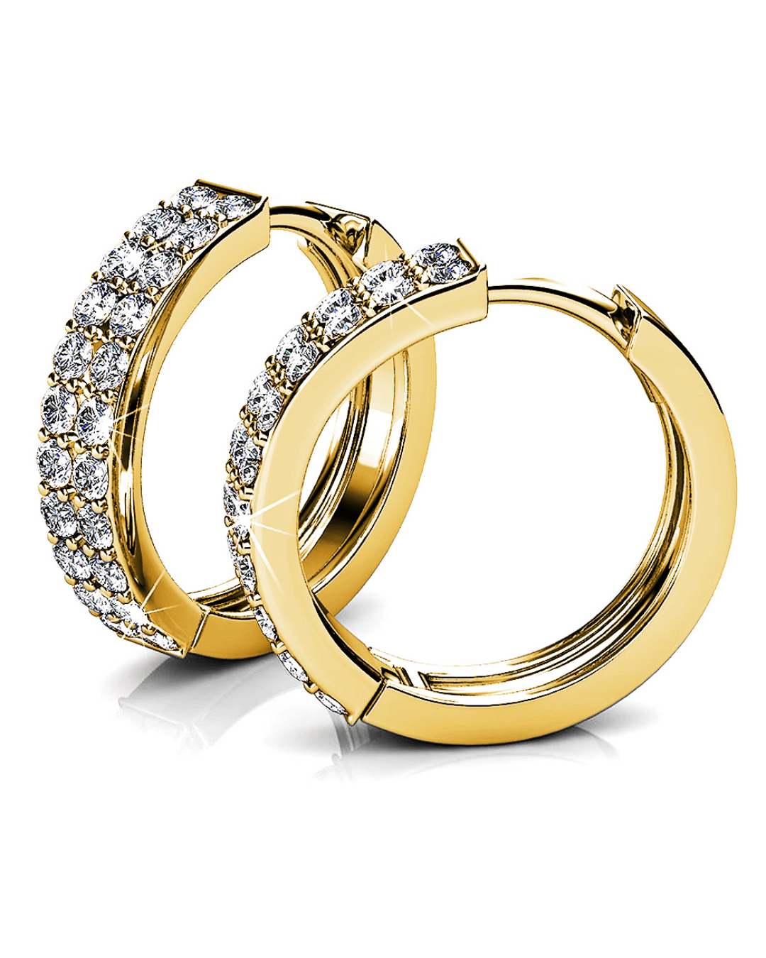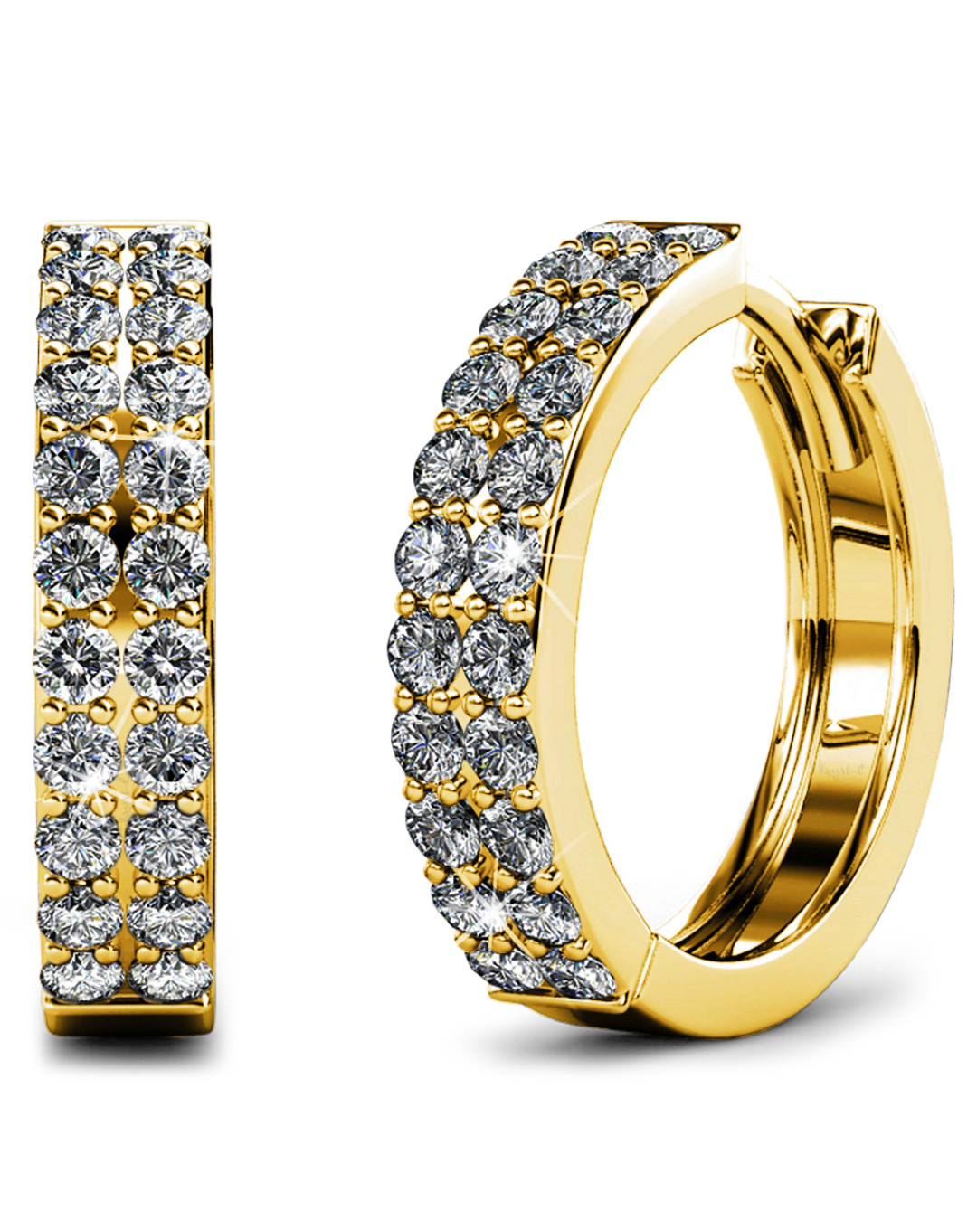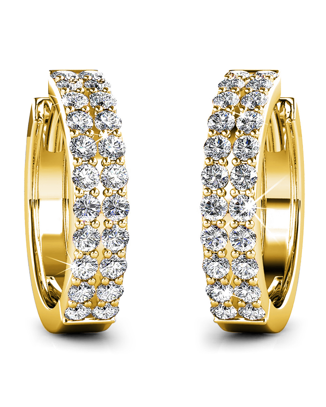 Add a flair of elegance and class to your look with these classic hoop earrings. Each earring is studded with 22 shimmering Crystals made with SWAROVSKI® elements. Crafted from 18K gold plated alloy, this sassy yet elegant piece is a perfect complement both for casual or formal events.