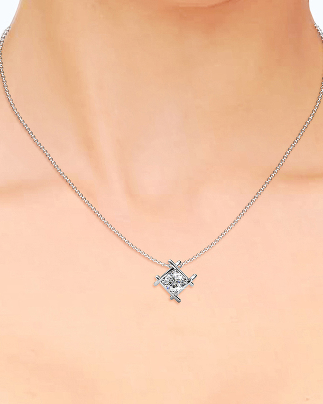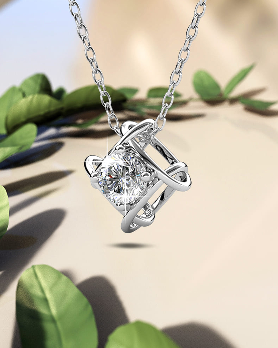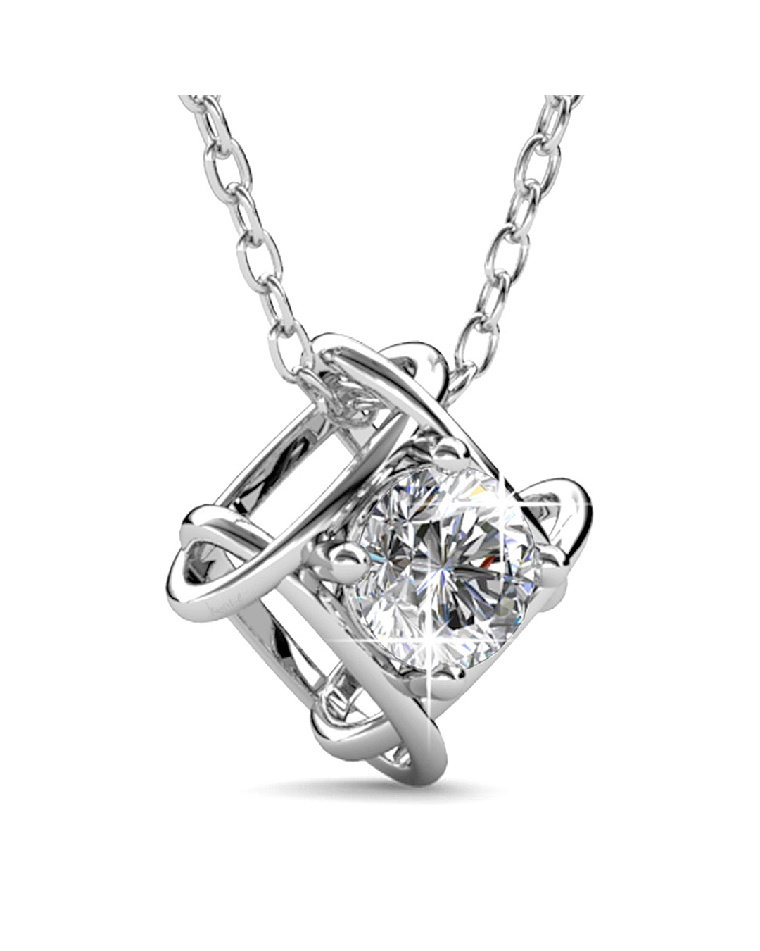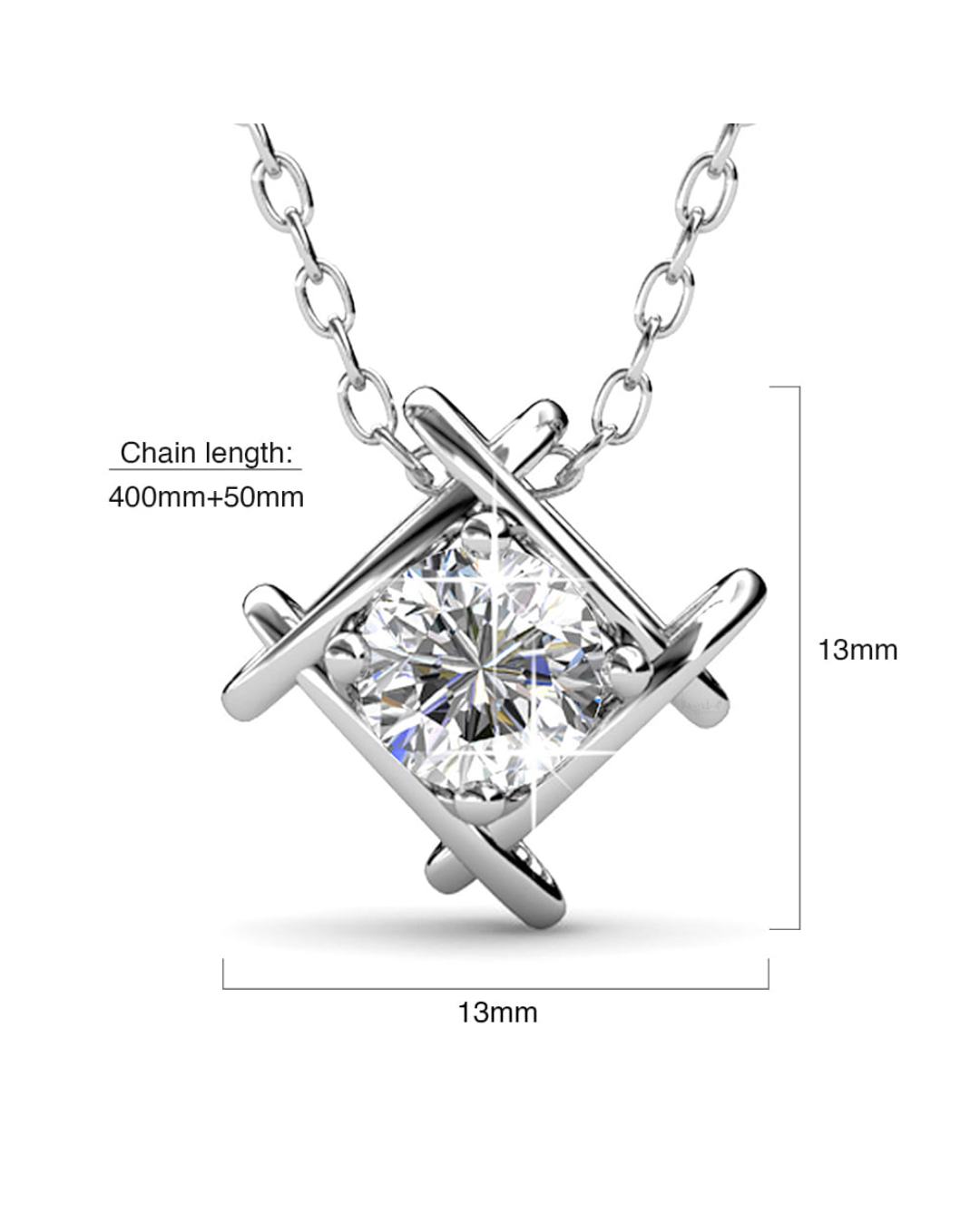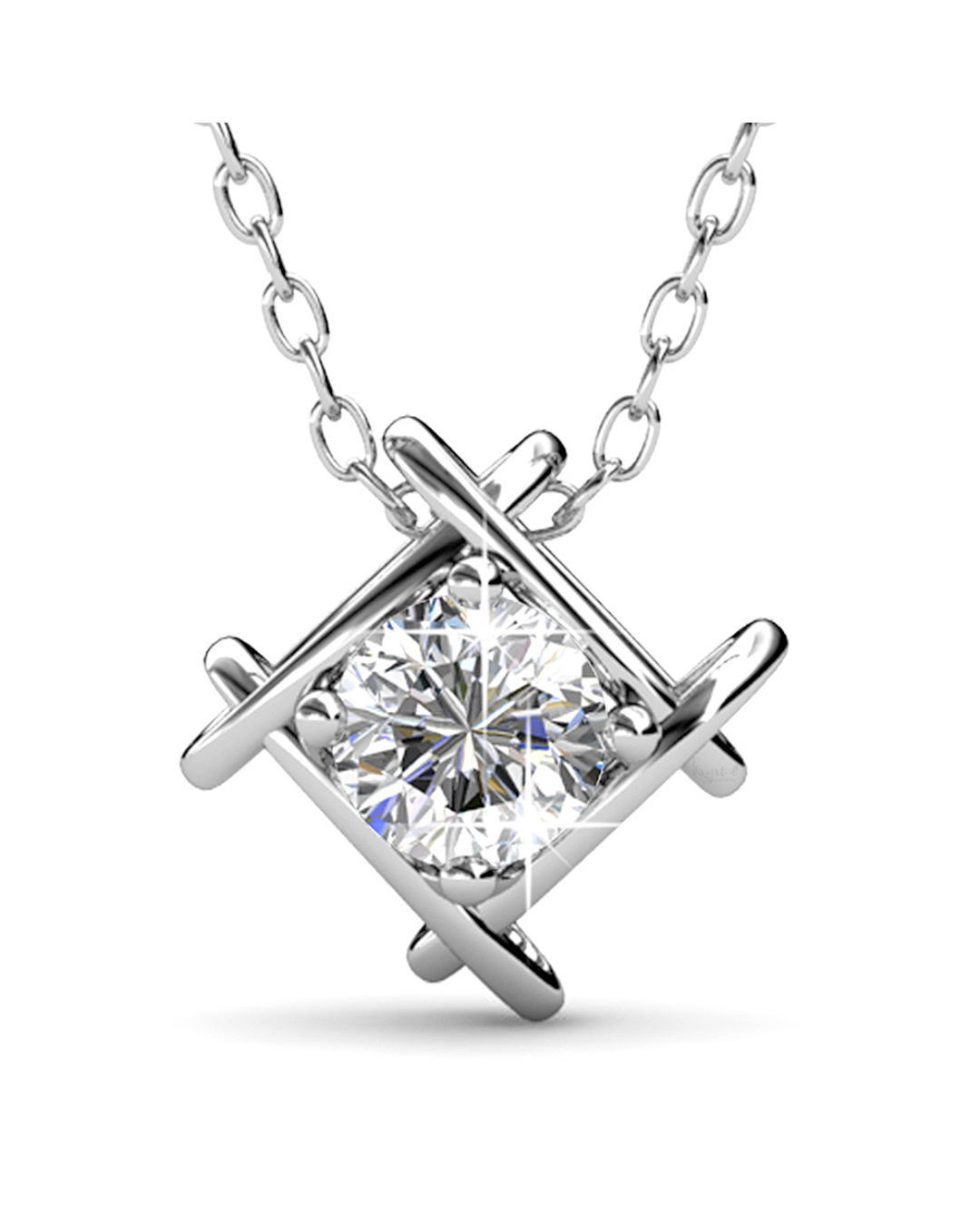 Give your look a touch of sparkle while wearing these distinct necklace featuring a pendant with round-cut crystal center stone made with SWAROVSKI® Element. A chic diamond shaped frame adds a subtle sophisticated touch to the design. This 18K White Gold plated piece makes a truly stunning and radiant accessory!