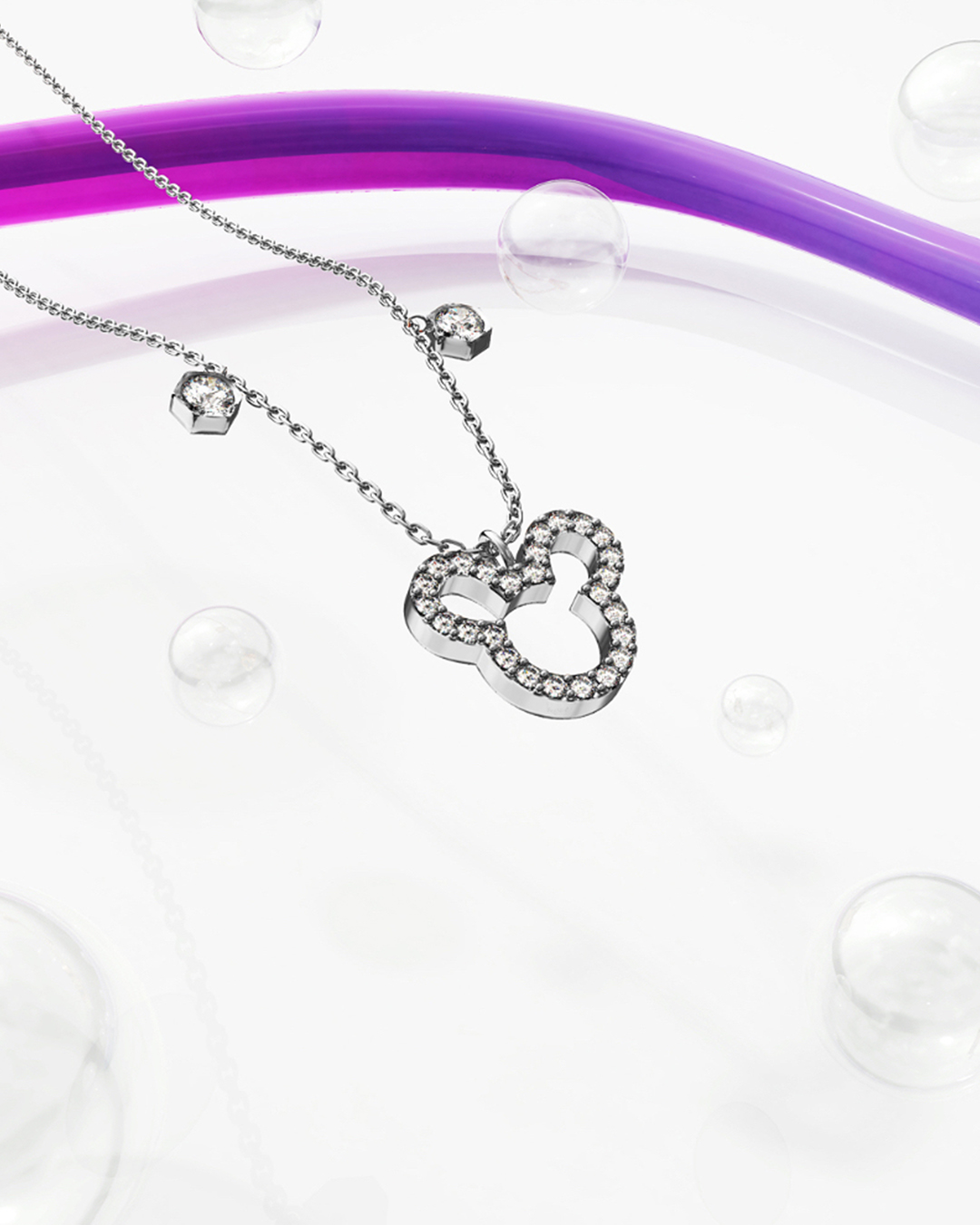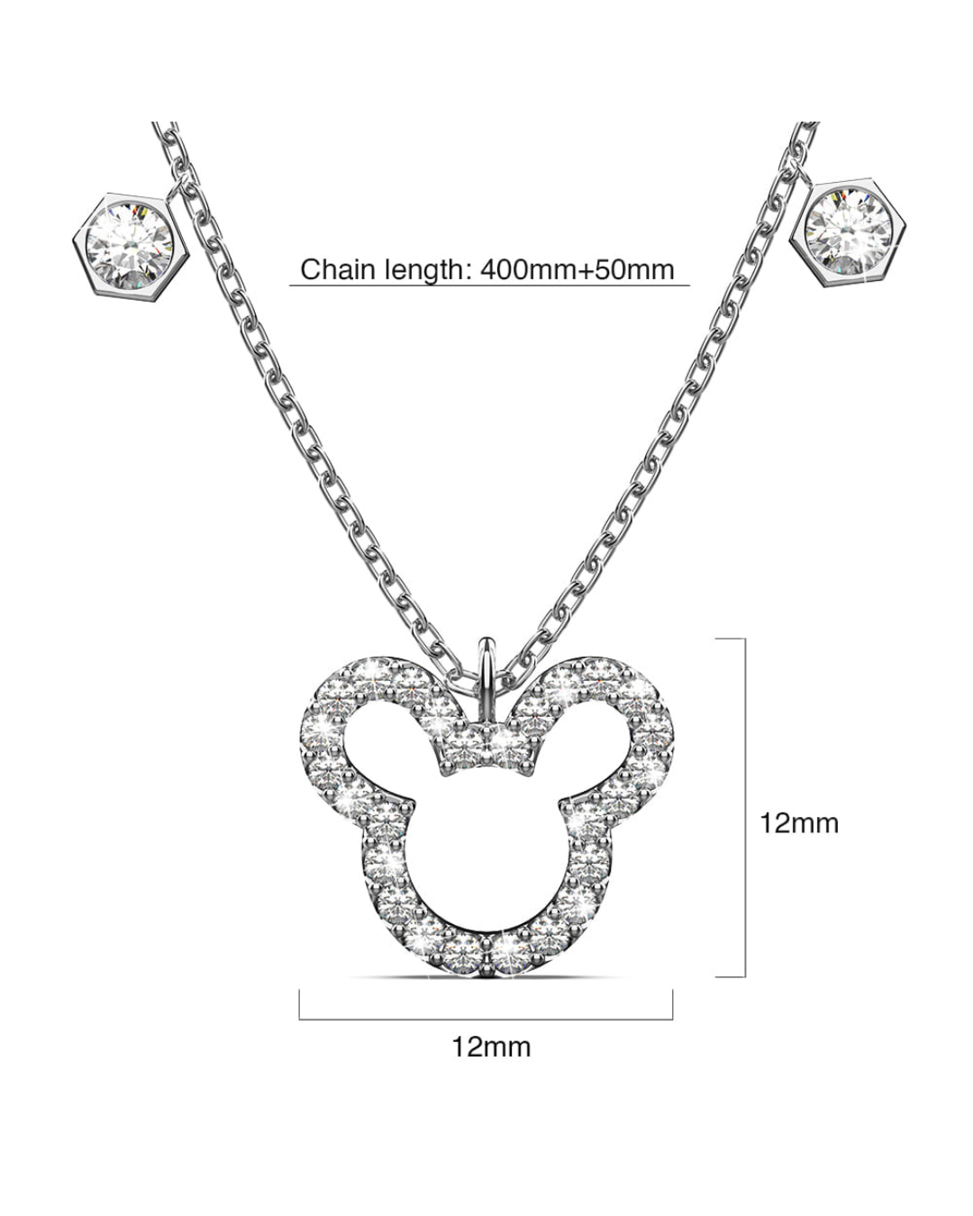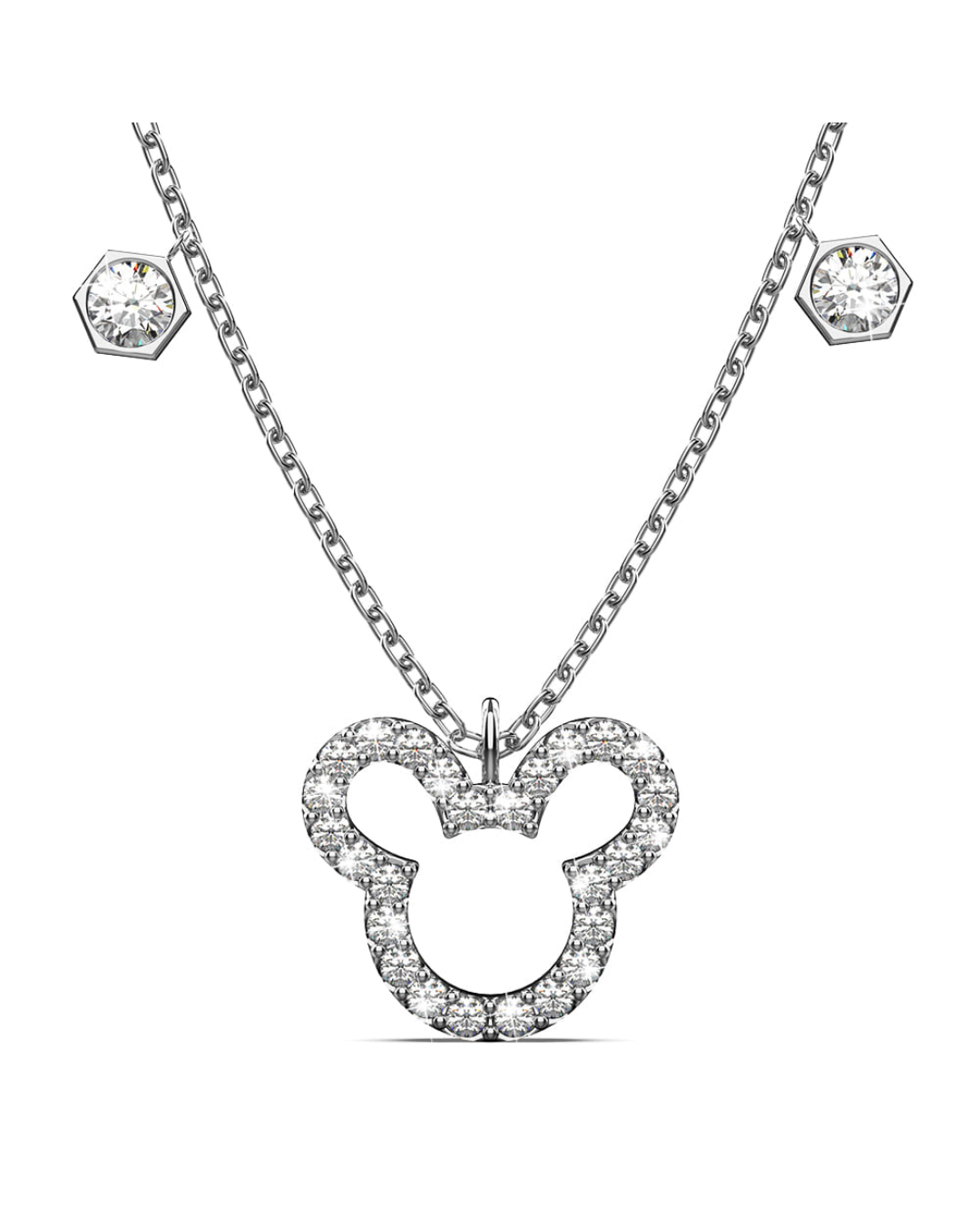 Spoil yourself with these Mickey Silhouette Pendant Necklace embellished with scintillating SWAROVSKI® Crystals for that extra dazzle. The long-wearing 0.05-micron thickness of real 18K White Gold is perfect for everyday wear!