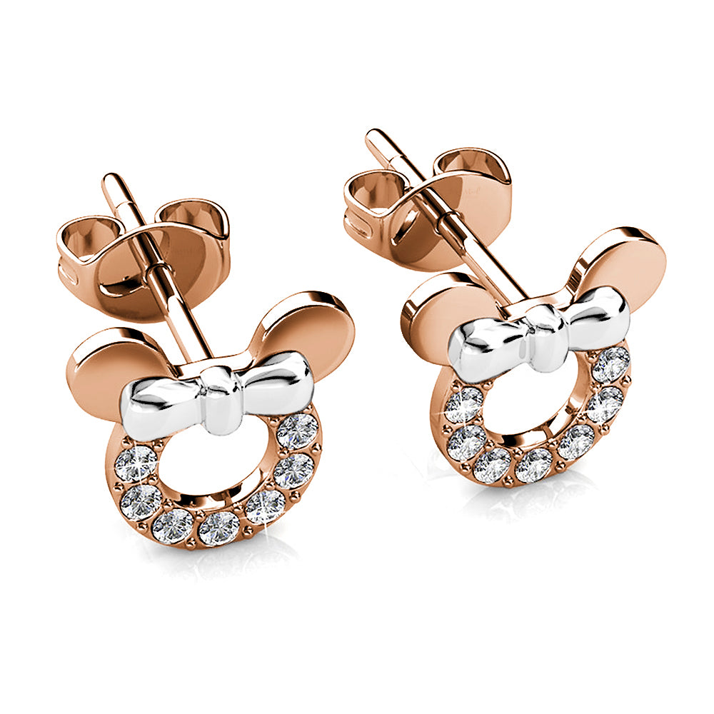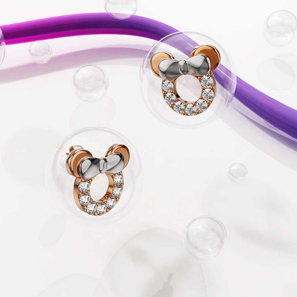 Bring a playful sparkle to your look with these Minnie Mouse-inspired earrings, adorned with genuine SWAROVSKI® crystals. Featuring Minnie’s iconic silhouette in a chic, shimmering finish, they’re the perfect mix of fun and sophistication. Whether you’re a lifelong fan or gifting someone who is, these earrings bring a touch of Disney magic to any outfit.
