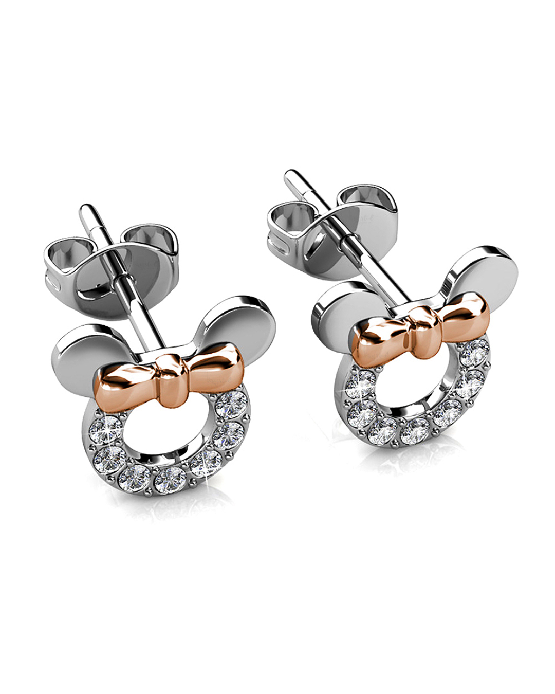 Bring a playful sparkle to your look with these Minnie Mouse-inspired earrings, adorned with genuine SWAROVSKI® crystals. Featuring Minnie’s iconic silhouette in a chic, shimmering finish, they’re the perfect mix of fun and sophistication. Whether you’re a lifelong fan or gifting someone who is, these earrings bring a touch of Disney magic to any outfit.