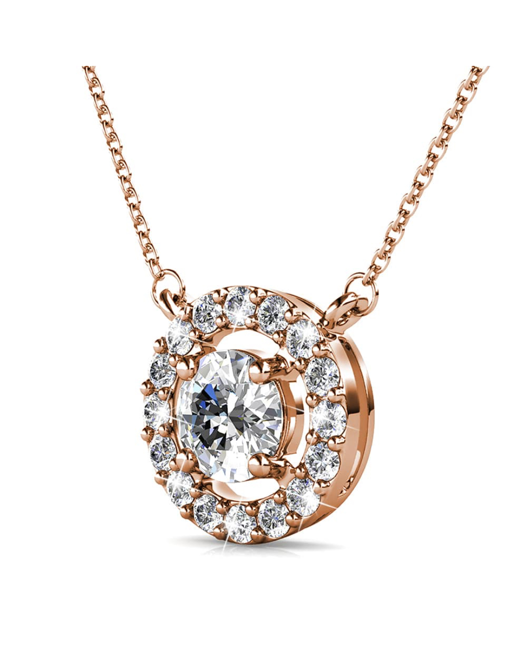 A miniature pendant necklace for a casual day out or wear it on your first date. Be extra elegant by possessing this piece into your life and let the jewellery do the job for you. Plated in Rose Gold, embellished with Crystals From SWAROVSKI®.