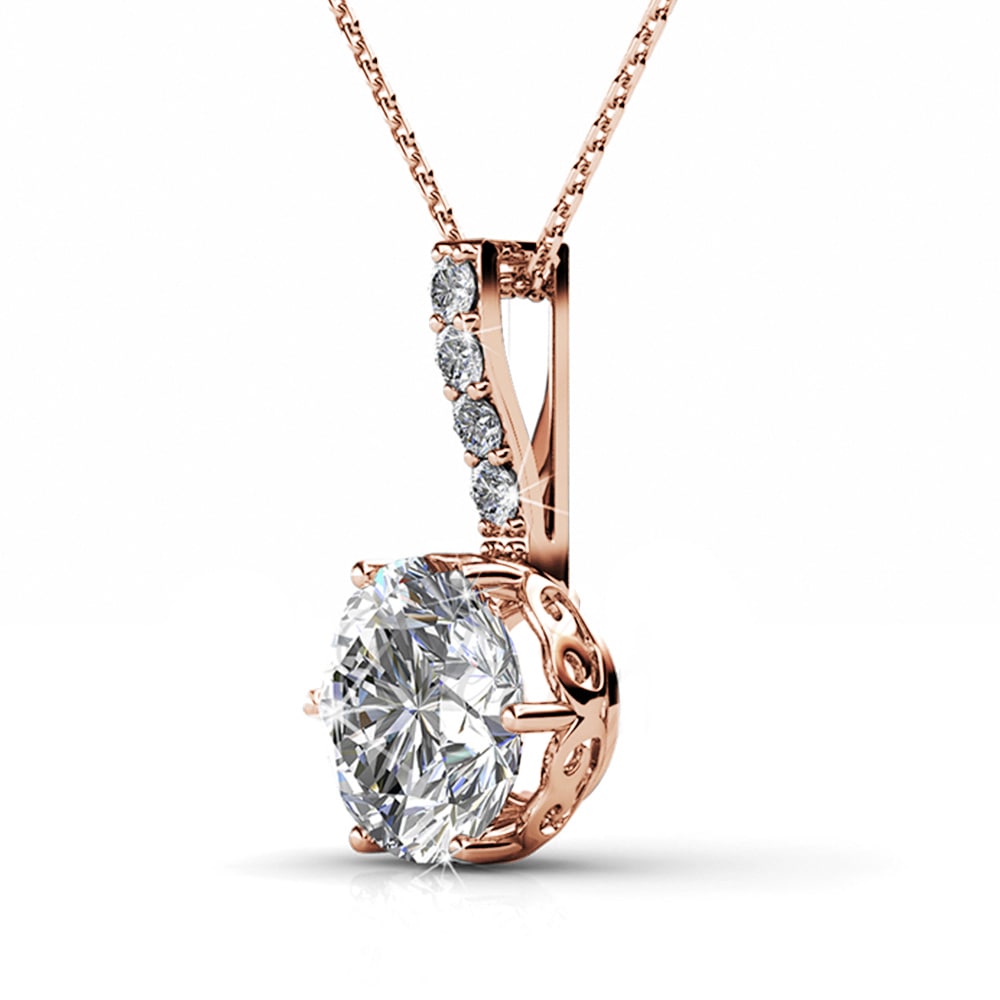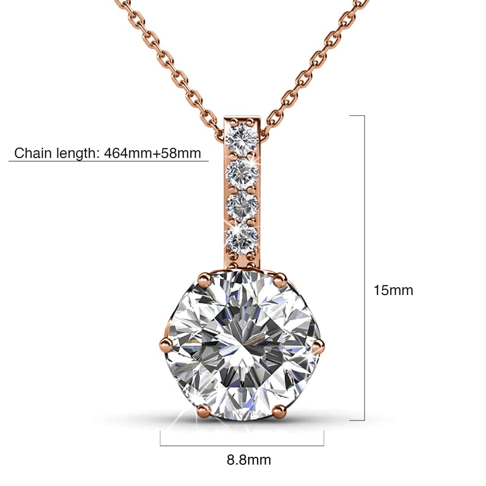 Look fabulous with this gorgeous necklace featuring genuine Crystals from SWAROVSKI® The stunning pendant is made with 6mm round-cut crystal plus 4 smaller crystals all made of SWAROVSKI® Elements. This necklace is crafted of a highly polished 18K Rose Gold overlay. A graceful & radiant piece!