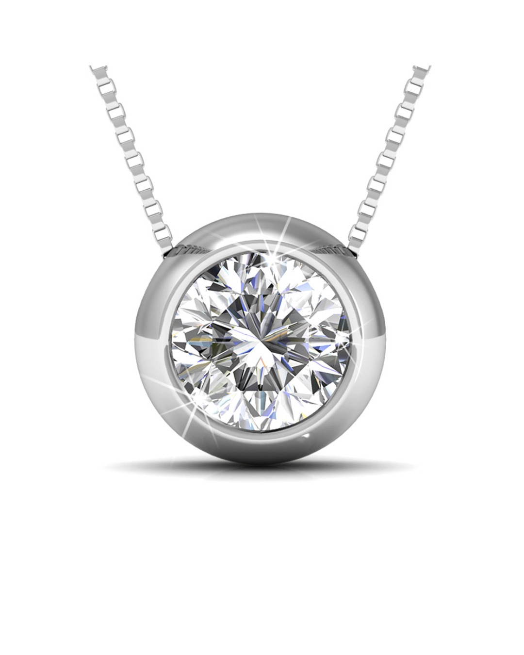 Classic and bold, this stunning 18K white gold plated necklace will add timeless elegance to your style. This necklace features a sparkling SS24 5.5mm Xirius SWAROVSKI® Crystal. A classic piece showcasing your natural beauty!