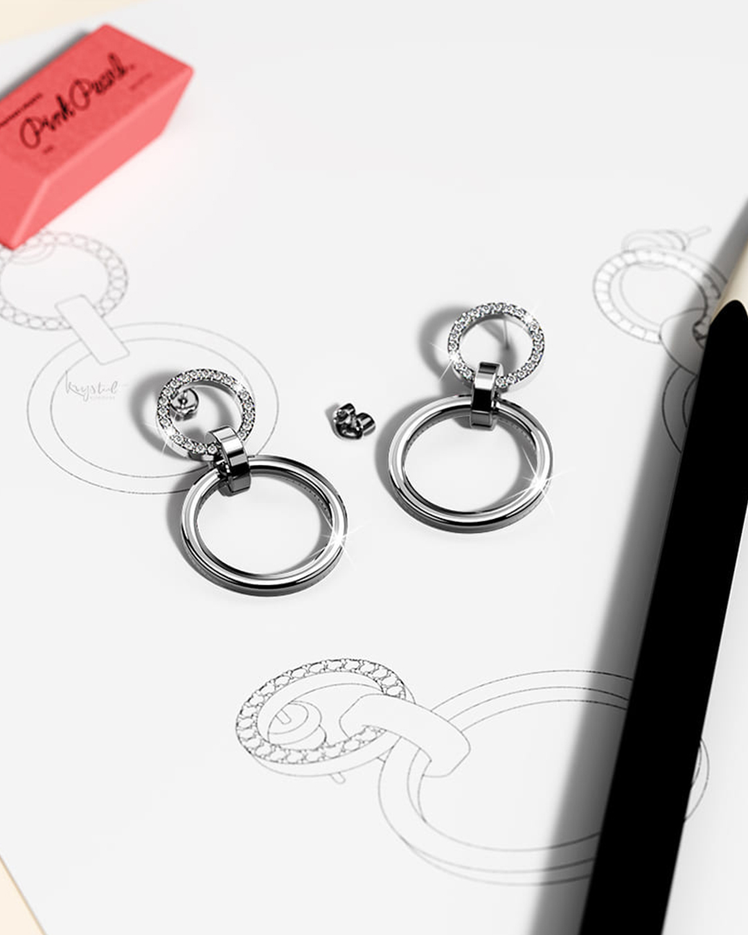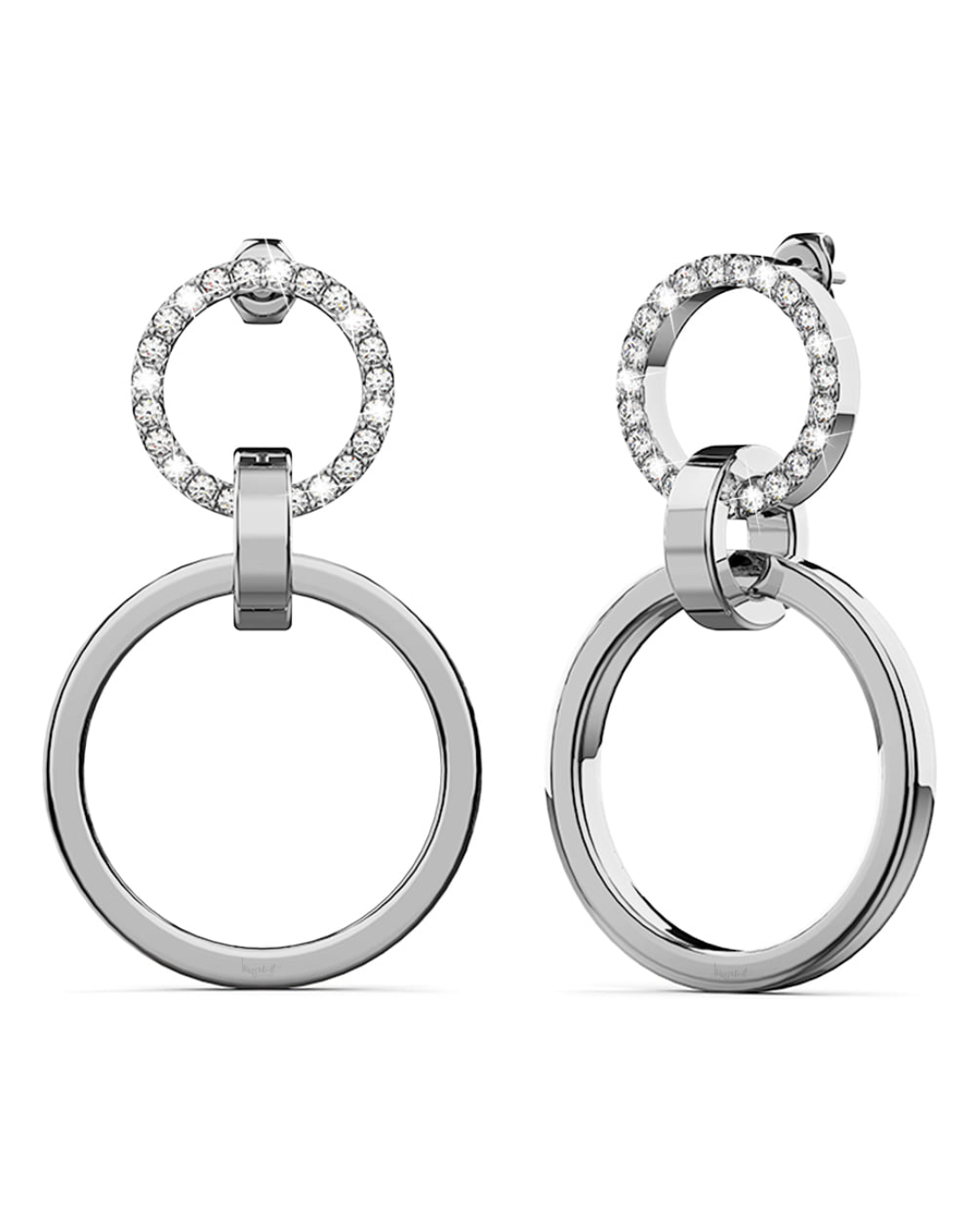 Experience the allure of the Orbit of Radiance Earrings in white gold plated alloy. Embellished with SWAROVSKI® crystals, these earrings exude elegance. The dual open circle design sparkles with brilliance, as each 0.9mm crystal captures and reflects light. With a lustrous 0.03micron white gold plating, these earrings offer durability and sophistication. Whether for a special occasion or everyday wear, the Orbit of Radiance Earrings in white gold are the perfect accessory to elevate your style and embrace the beauty of modern design. Original design by Noah @ Krystal Couture.