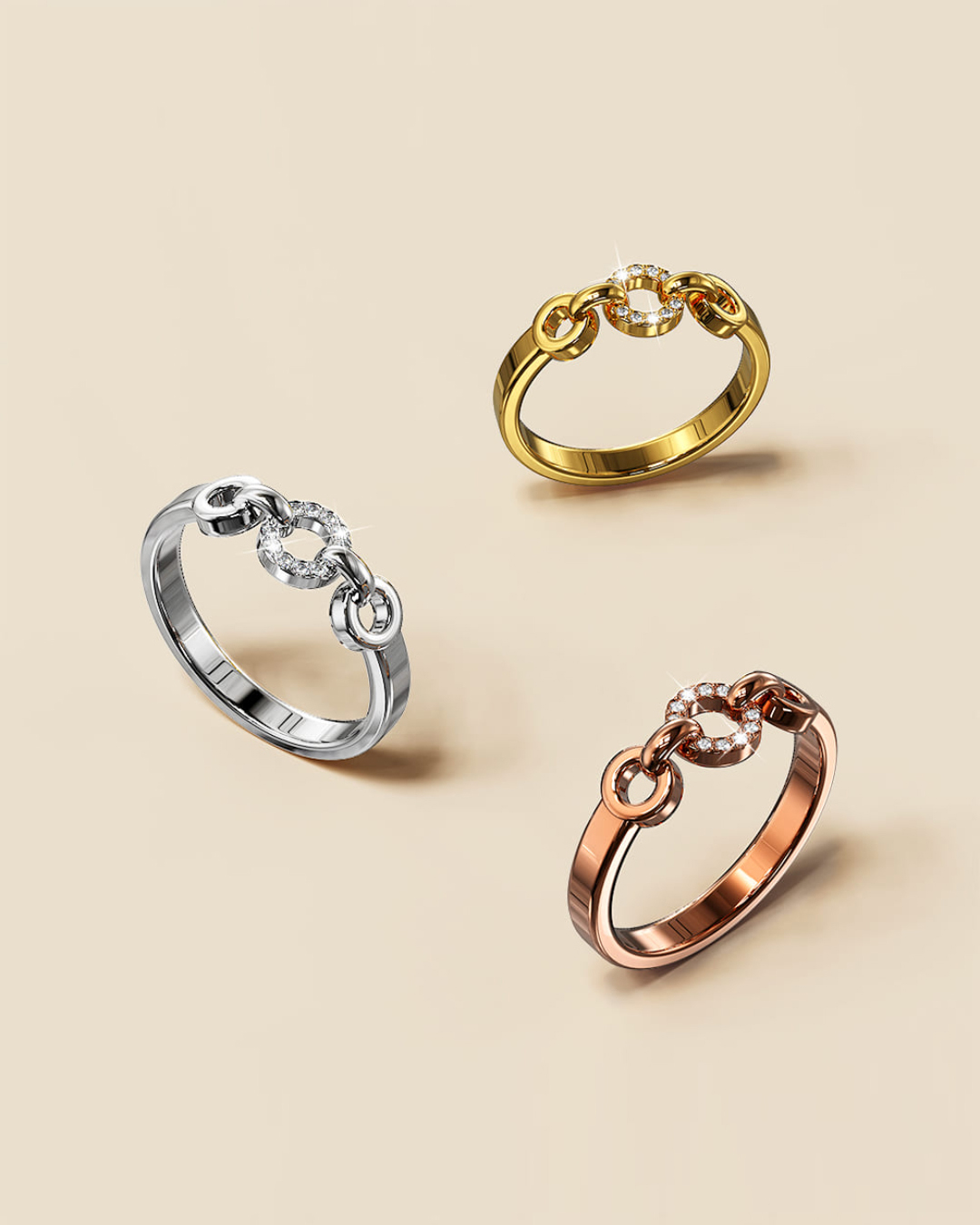 Looking for a touch of sparkle and intrigue in your day-to-day looks, the Orbit of Trinity Ring embellished with SWAROVSKI® Crystals is the ultimate piece of jewellery. Crafted from brass and plated with 18K White Gold, this ring boasts 10 beautiful SWAROVSKI® Crystal stones for just the right amount of glimmer. Each stone measures 0.9mm, allowing it to subtly catch the light yet remain delicate in appearance. This stylish ring will add a hint of boldness to any look – perfect for making that lasting impression!