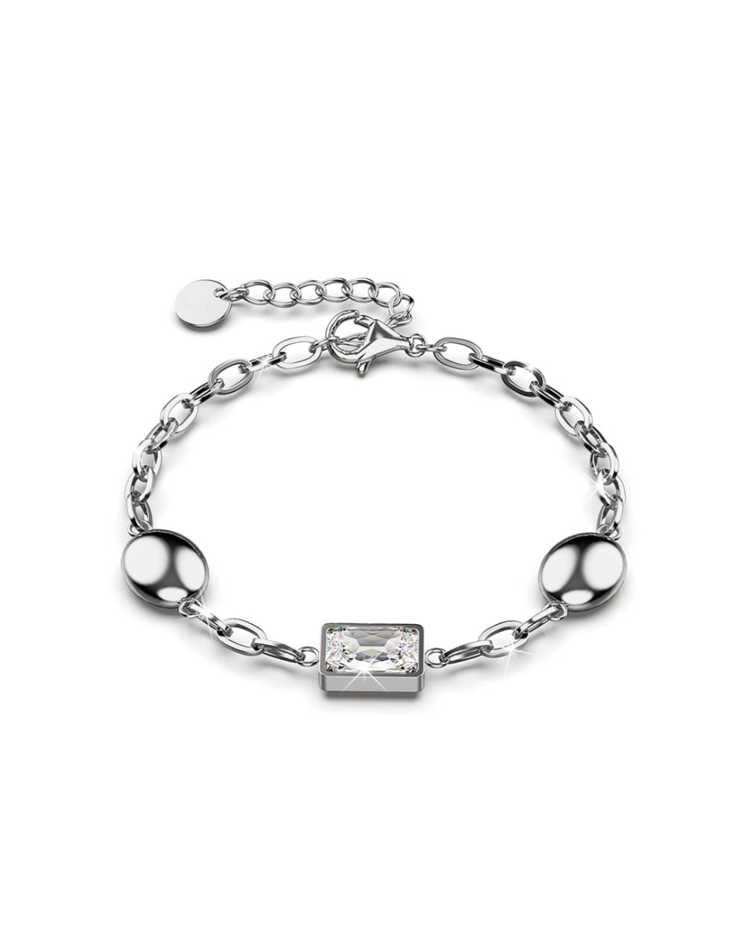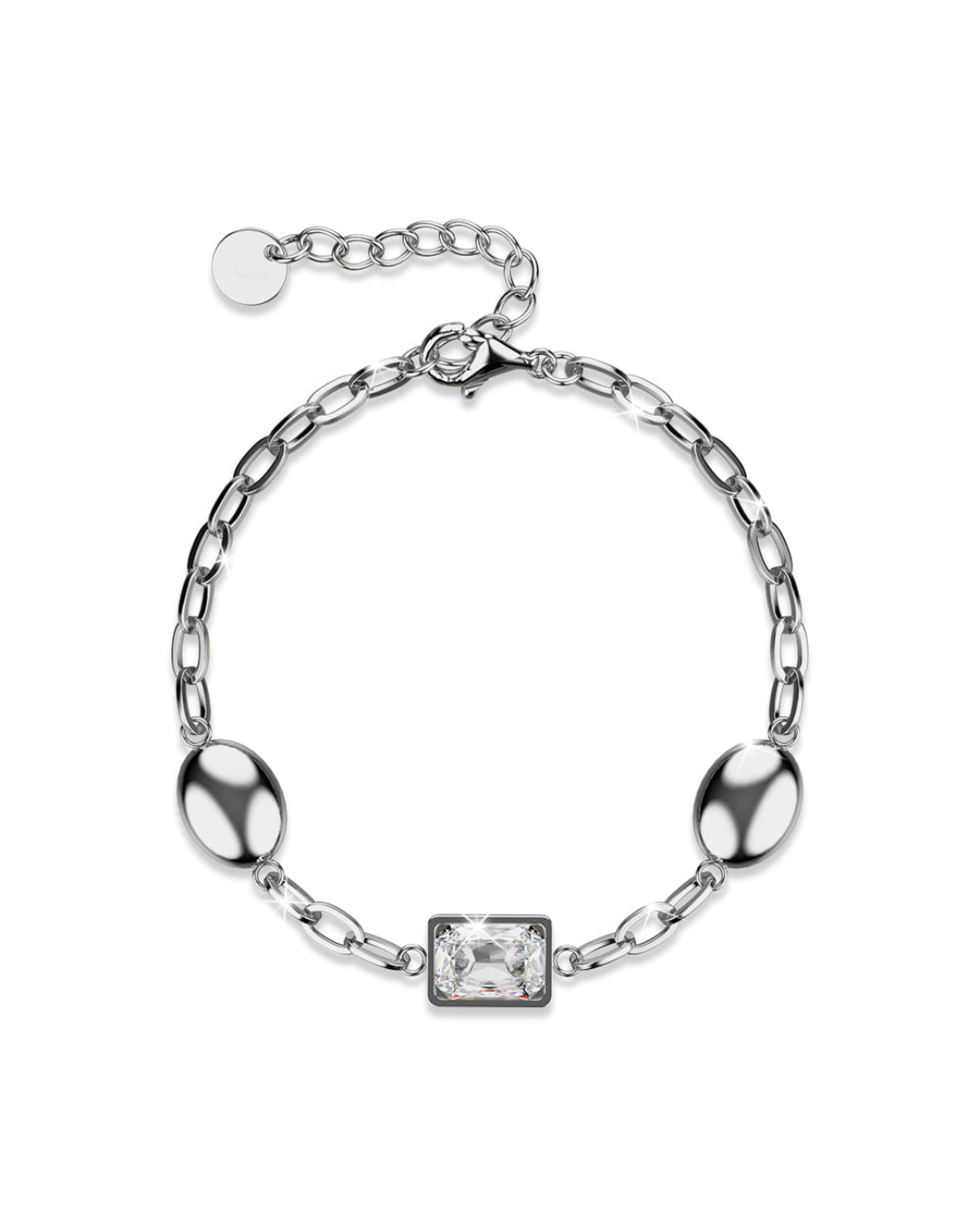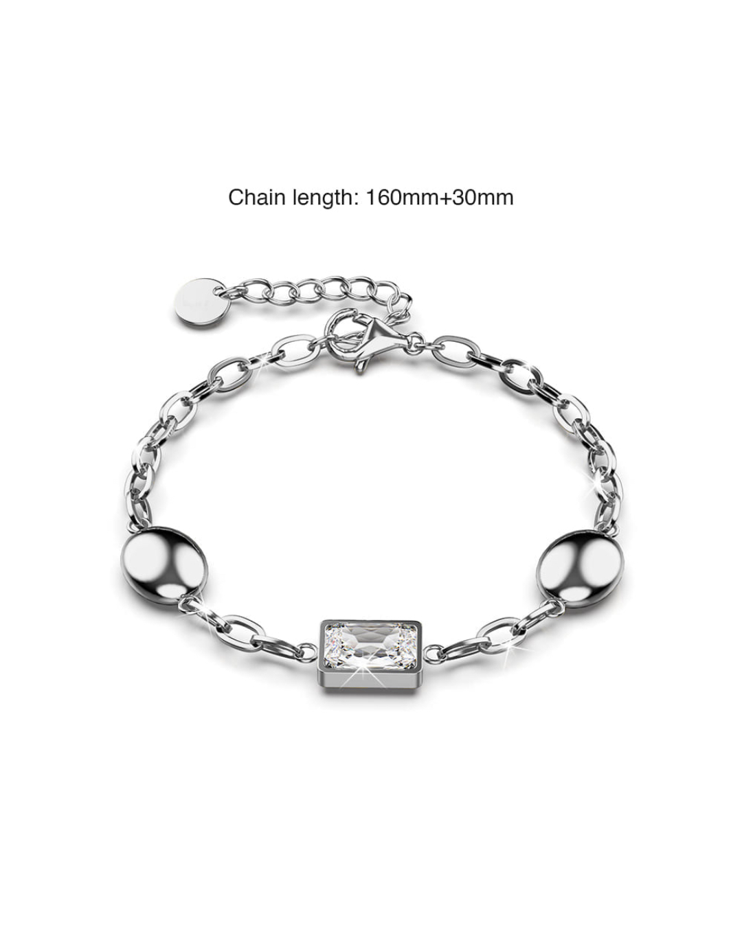 Bring a sophisticated, modern edge to your wardrobe with the 18ct white gold-plated Oval Square Zirconia Bling Bracelet. Crafted from stainless steel and finished with a stunning layer of bright polish, this minimal geometric bracelet gives a nod to geometric shapes while retaining an impeccably elegant finish.