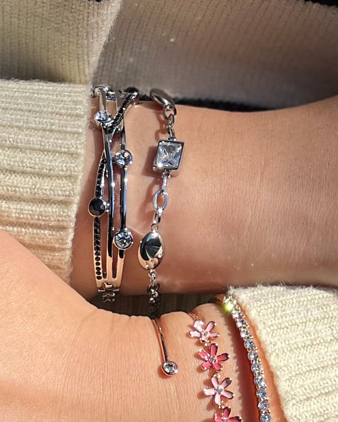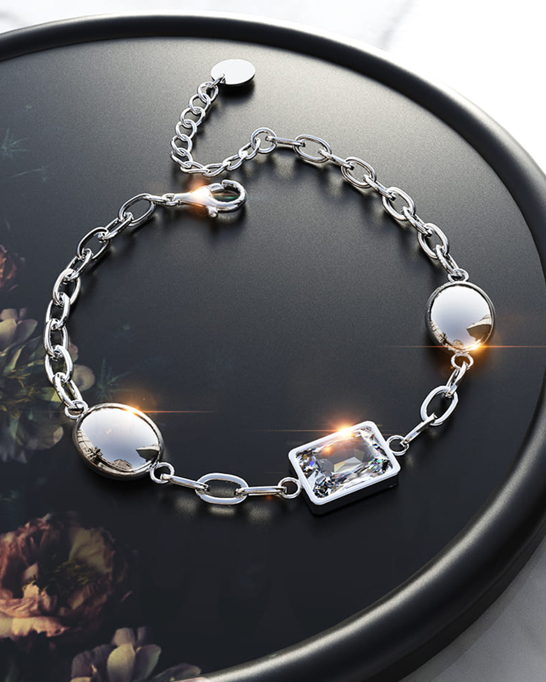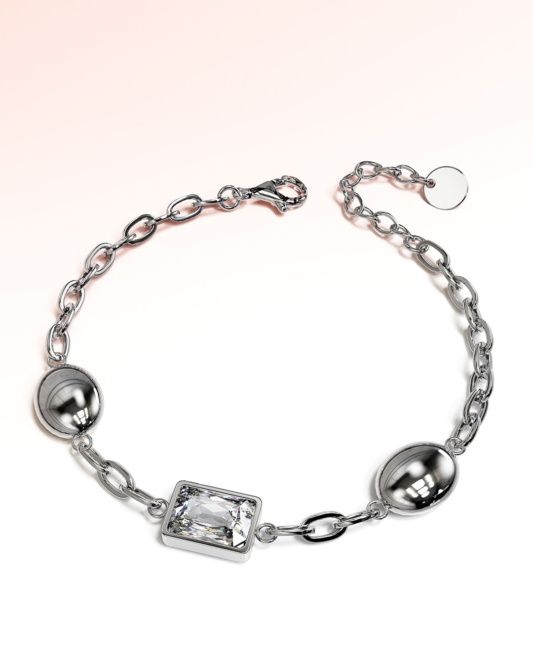 Bring a sophisticated, modern edge to your wardrobe with the 18ct white gold-plated Oval Square Zirconia Bling Bracelet. Crafted from stainless steel and finished with a stunning layer of bright polish, this minimal geometric bracelet gives a nod to geometric shapes while retaining an impeccably elegant finish.