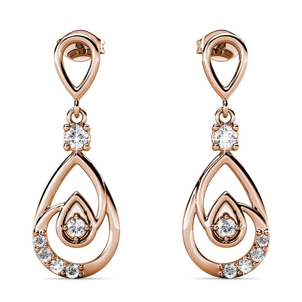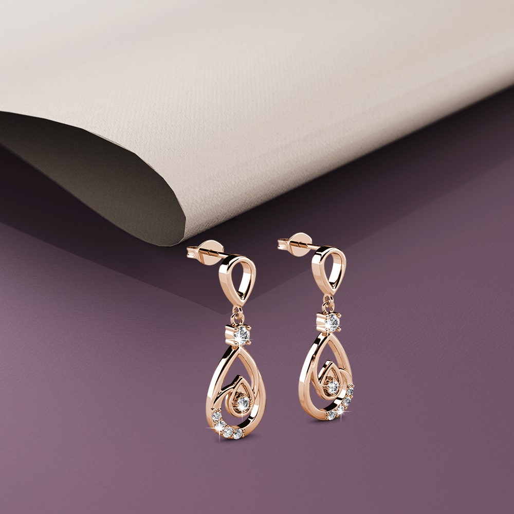 These beautiful earrings will take your wardrobe to the next level. The Periwinkle Teardrop Earrings can be perfectly worn with a cute summer dress or even a pair of casual white jeans and shirt. These earrings features a beautiful teardrop design which are adorned with exquisite SWAROVSKI® Crystals on a luxurious 18K Rose Gold setting.