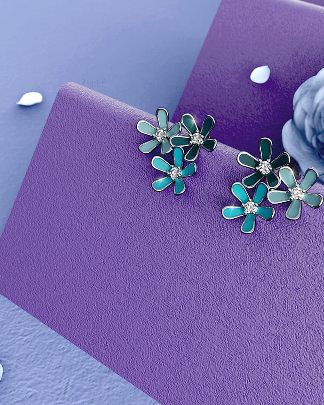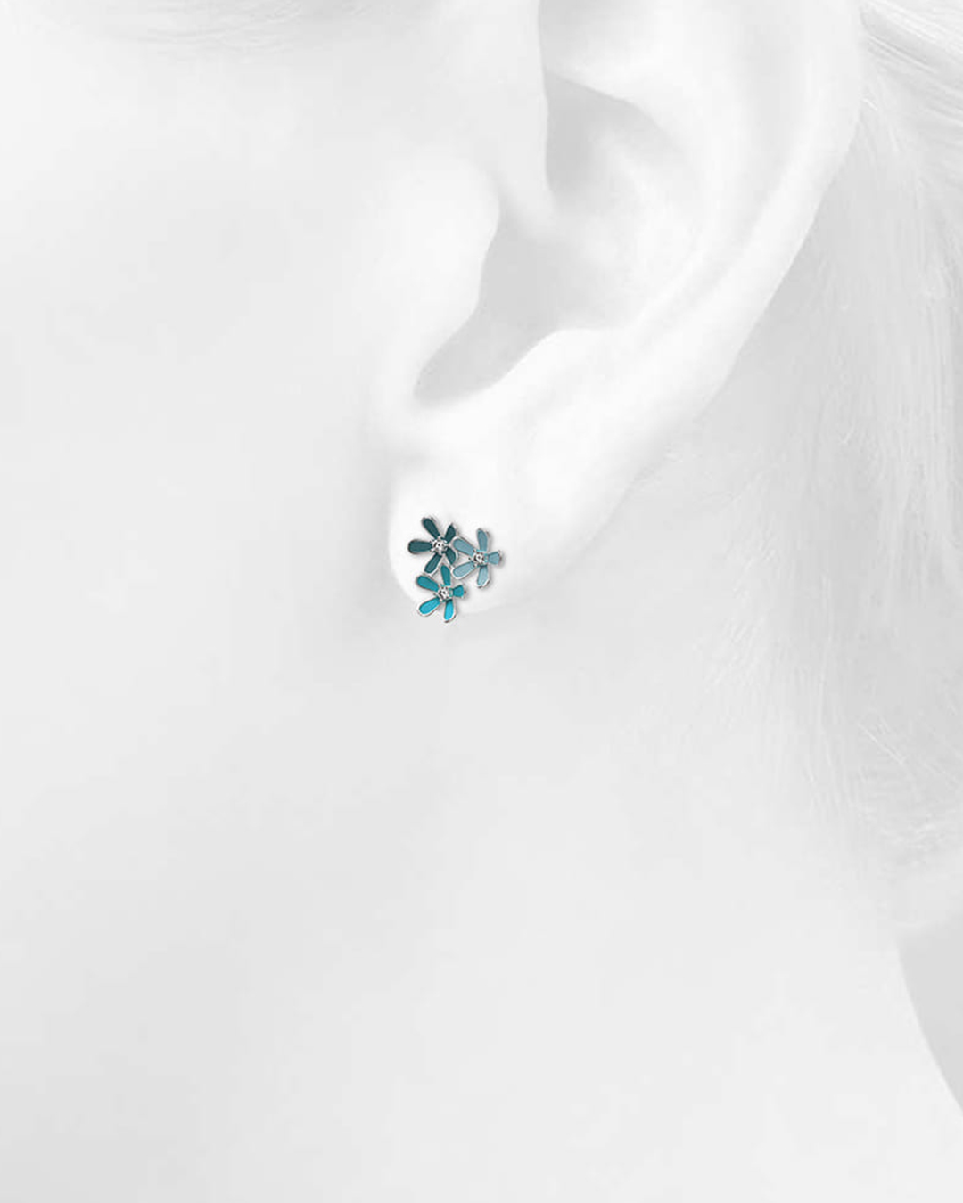 These Petalia Earrings are a dazzling reminder of the beauty in nature. A combination of petal and lite, illustrating light and delicate design. Adorned with SWAROVSKI® crystals, enamel on three delicate blue flowers, they make for an exquisite way to express your love for flora!