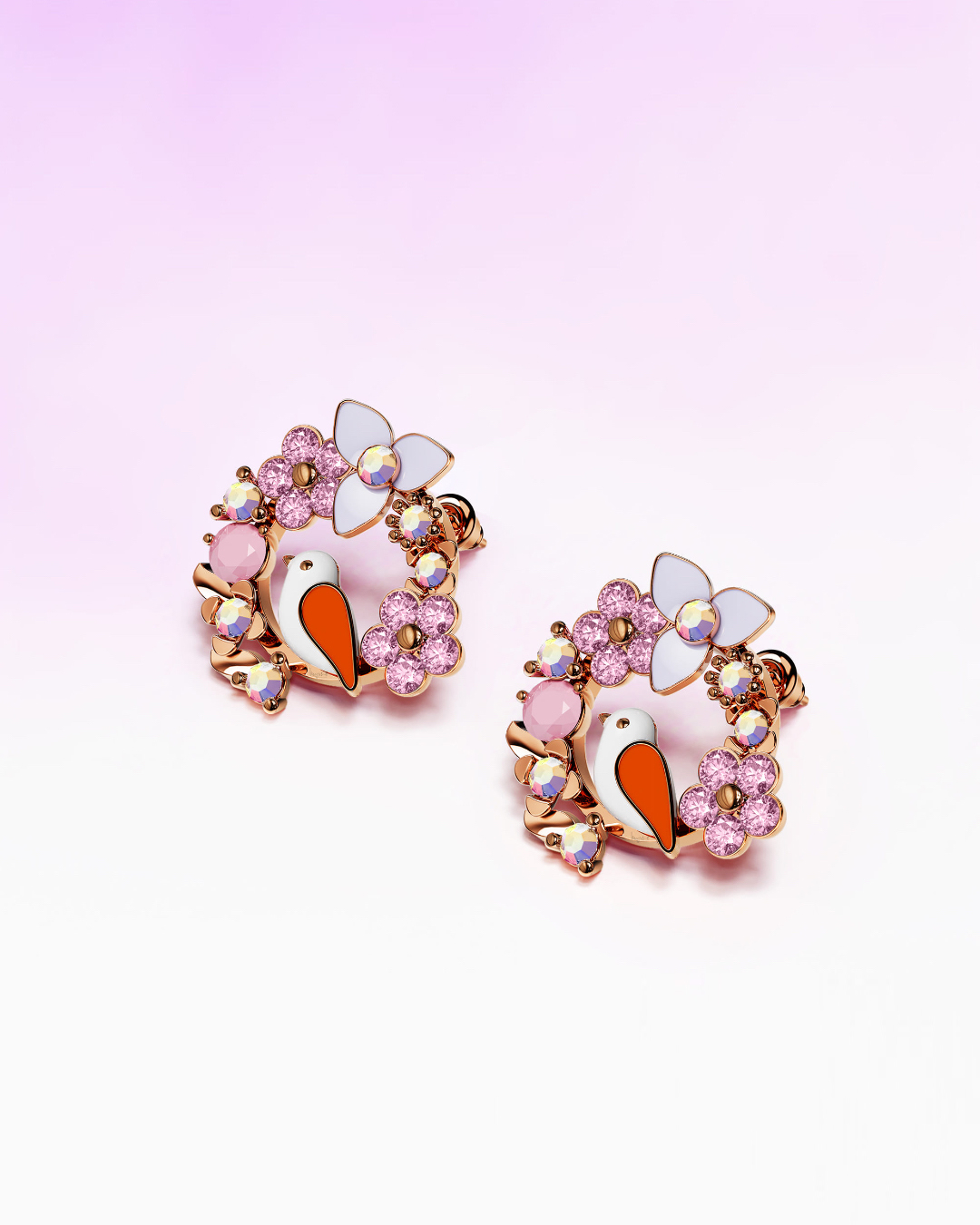 These Petite Floral With Bird Stud Earrings Embellished with Created Diamond are a must-have addition to your jewellery box. The fine 18K rose gold plated alloy ensures a lasting finish and the multicolour stones give this pair of earrings a playful look.
