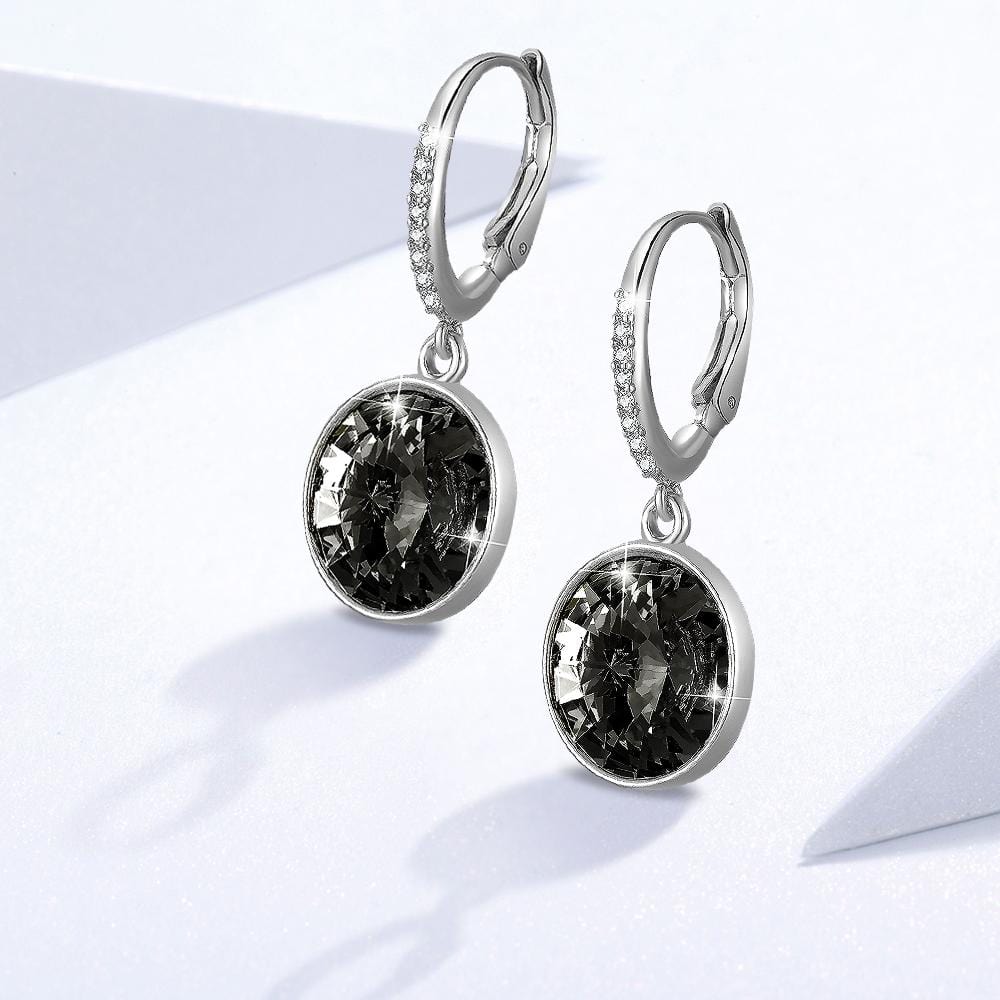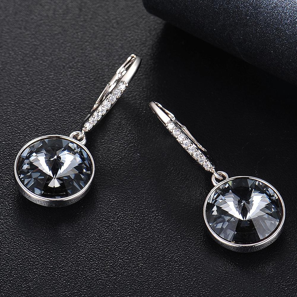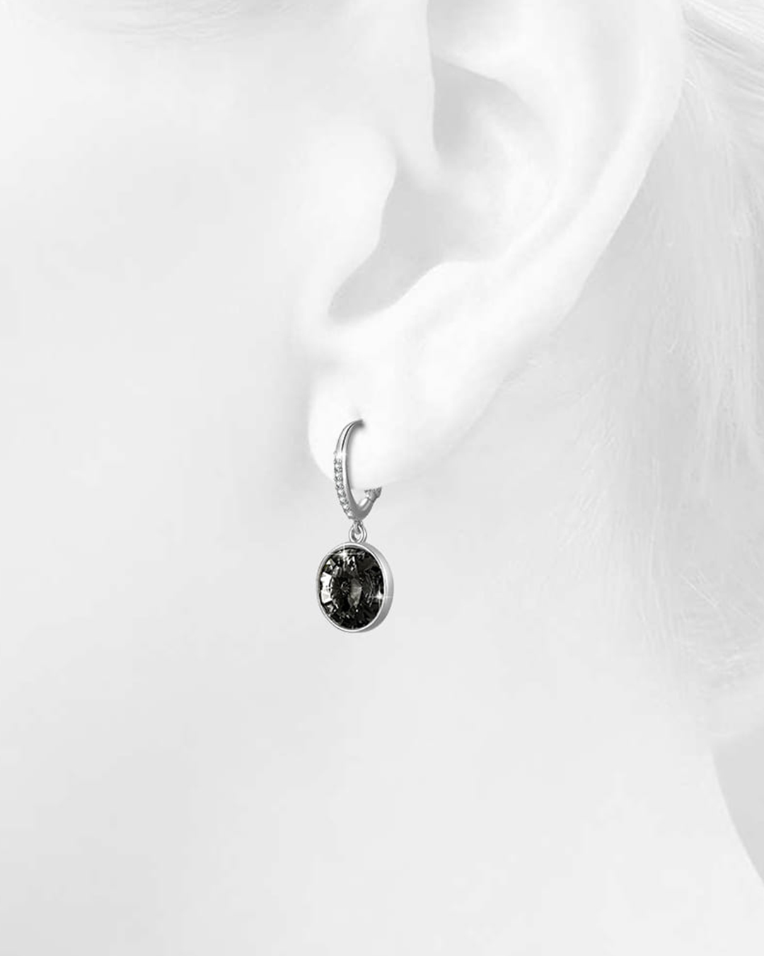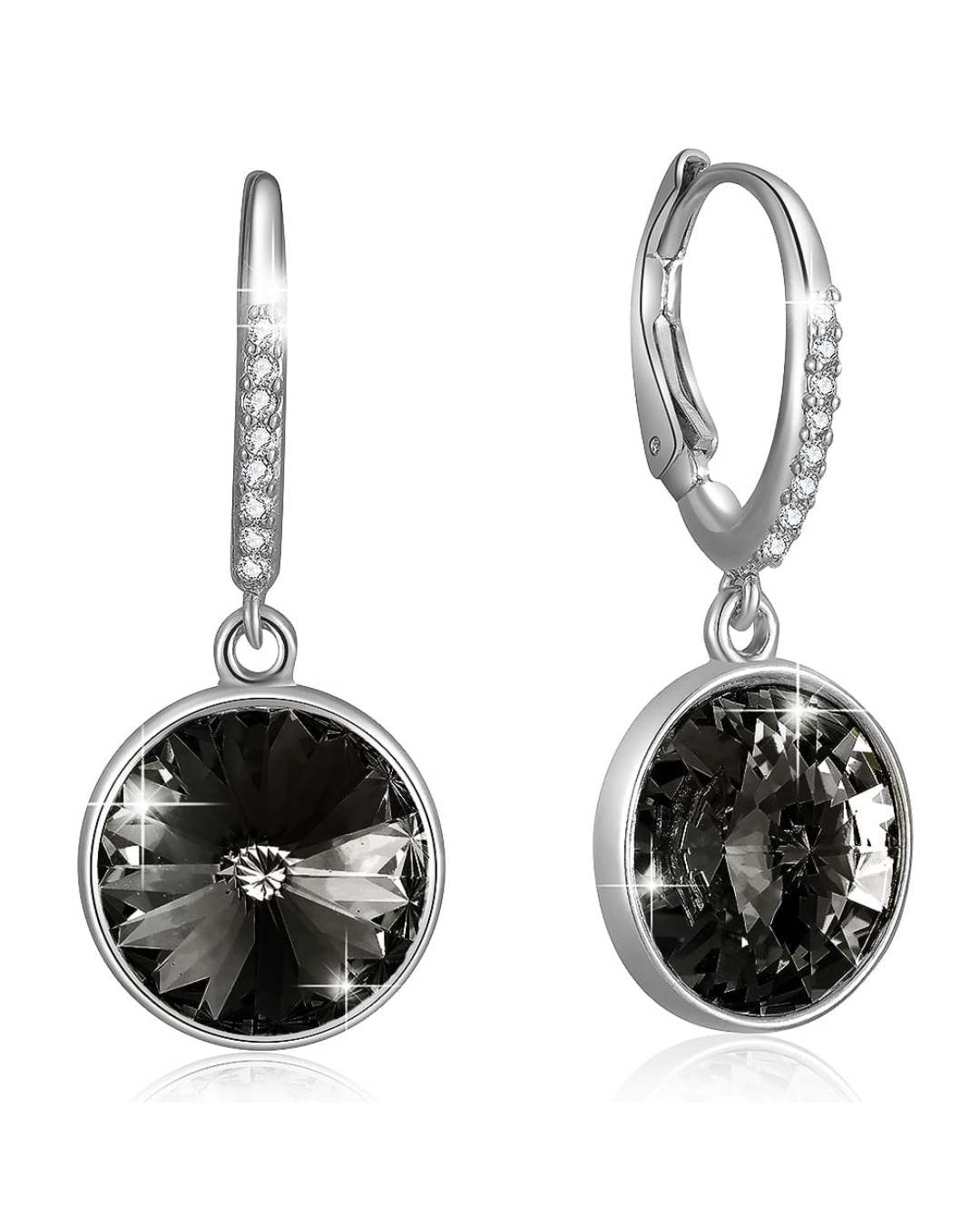 Absolutely stunning to wear, each of these lovely drop earrings boasts a brilliant bezel-set crystal, accentualed with eight small channel-set crystals, all made with SWAROVSKI® elements. Crafted of highly polished 18K White Gold plated alloy, this gorgeous wear is sure to add ecstatic glimmer and shine to your looks. These pretty earrings are made in Korea.