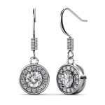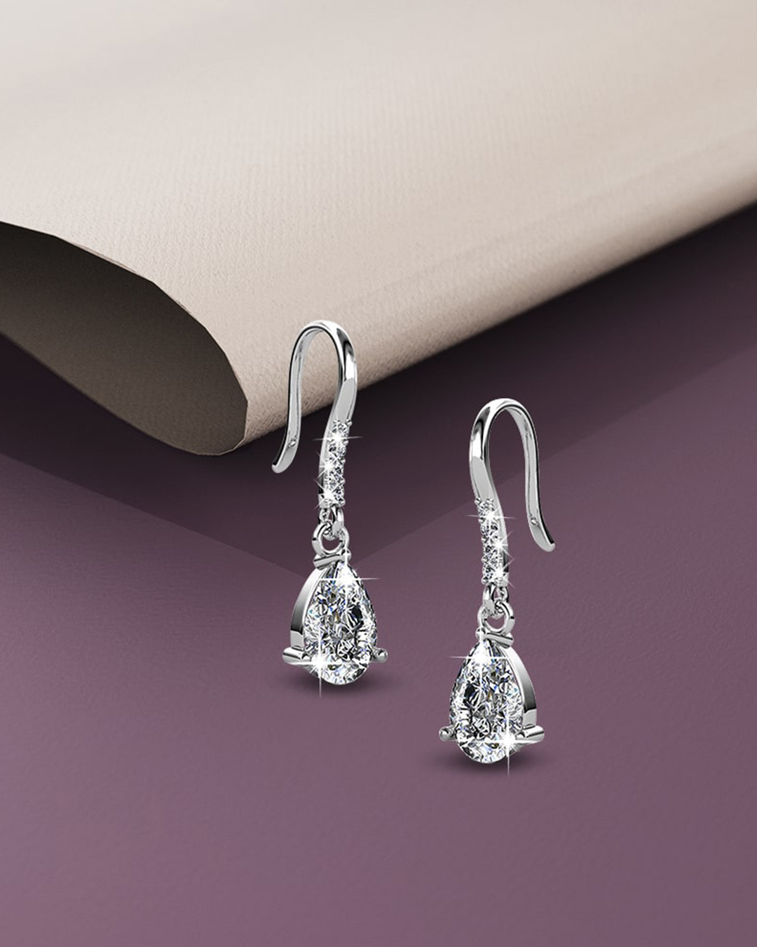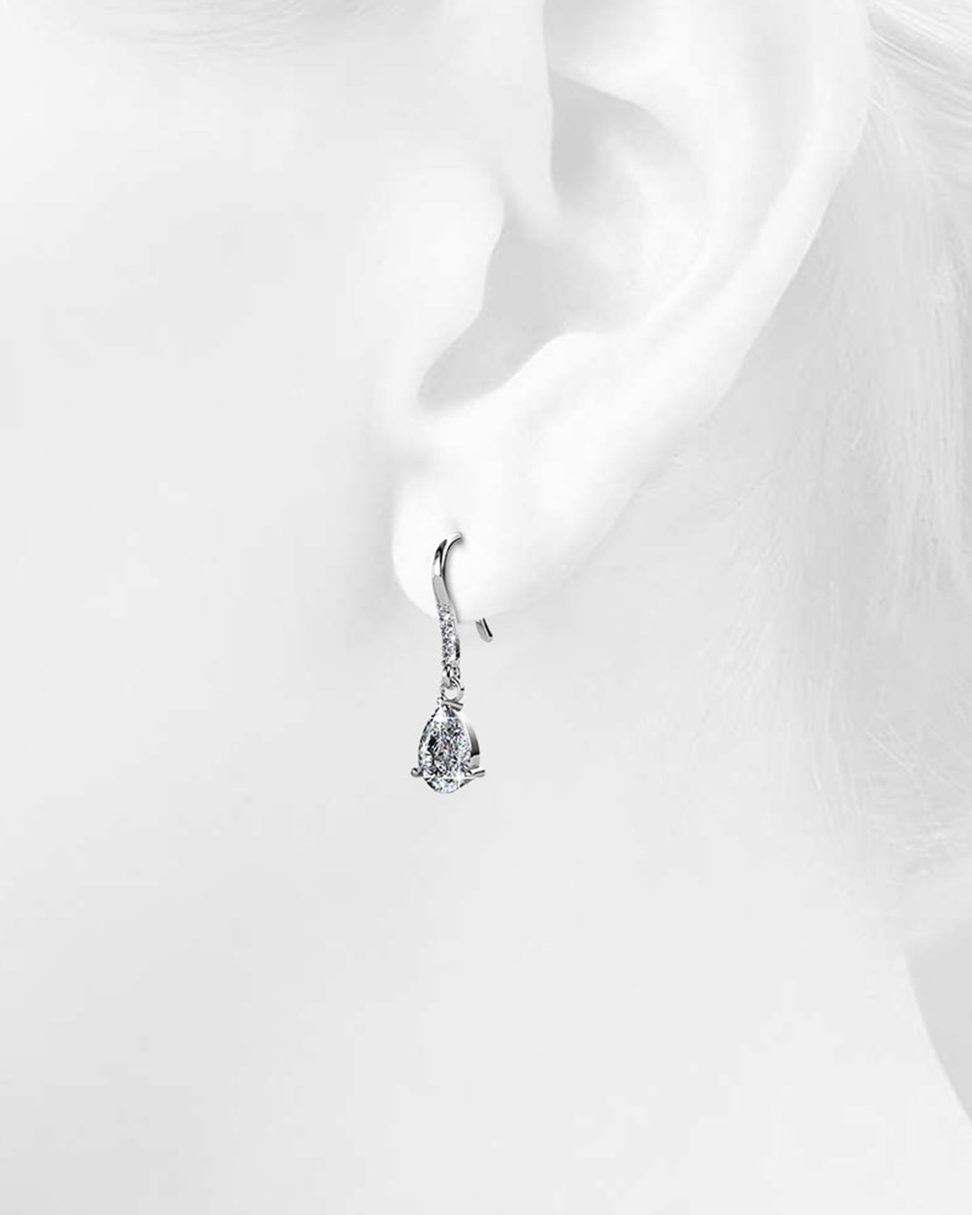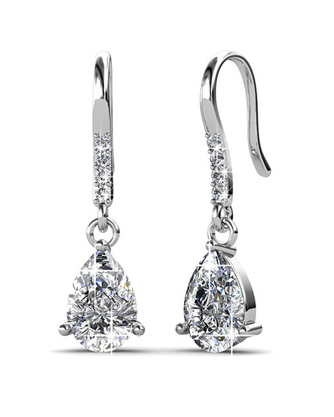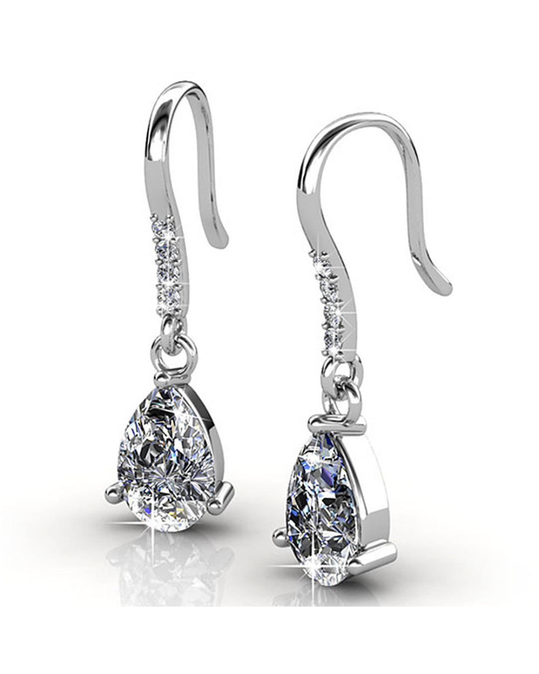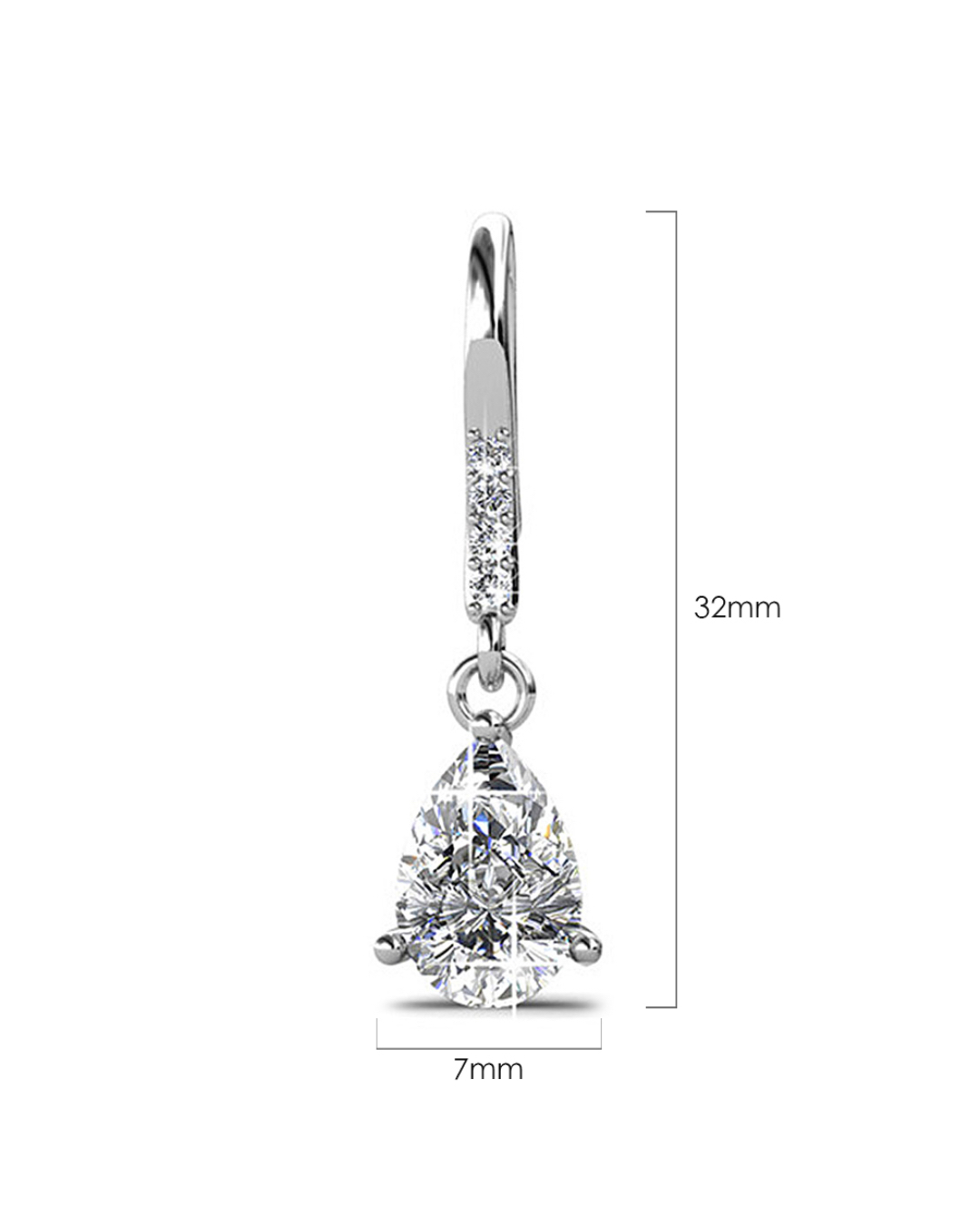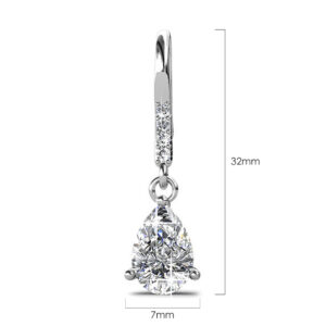 Be a head turner of the night with these eye-catching pair of earrings made of 18K White Gold plated alloy, featuring pear shape crystal accompanied with 4 round-cut crystals, all made with SWAROVSKI® elements. These earrings are secured with a hook clasps to complete the style.