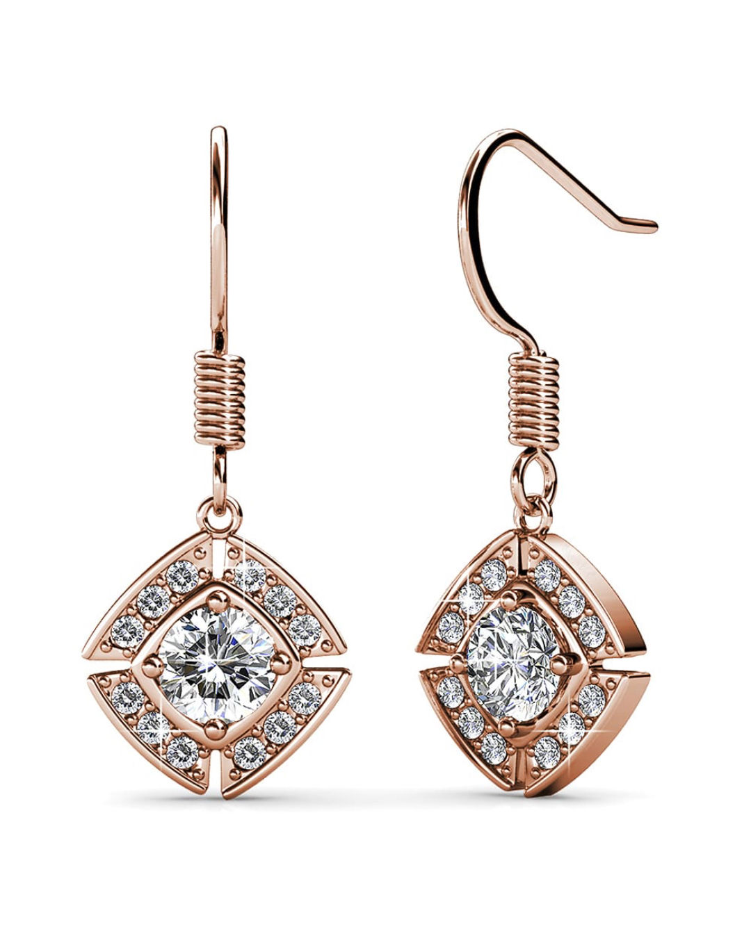 An enigmatic masterpiece can be yours! This dramatic and yet aesthetically elegant dangle earrings are plated with real 18K Rose Gold and features brilliantly dazzling SWAROVSKI® Crystals to make all eyes glancing at you! Also, available in matching pendant necklace.